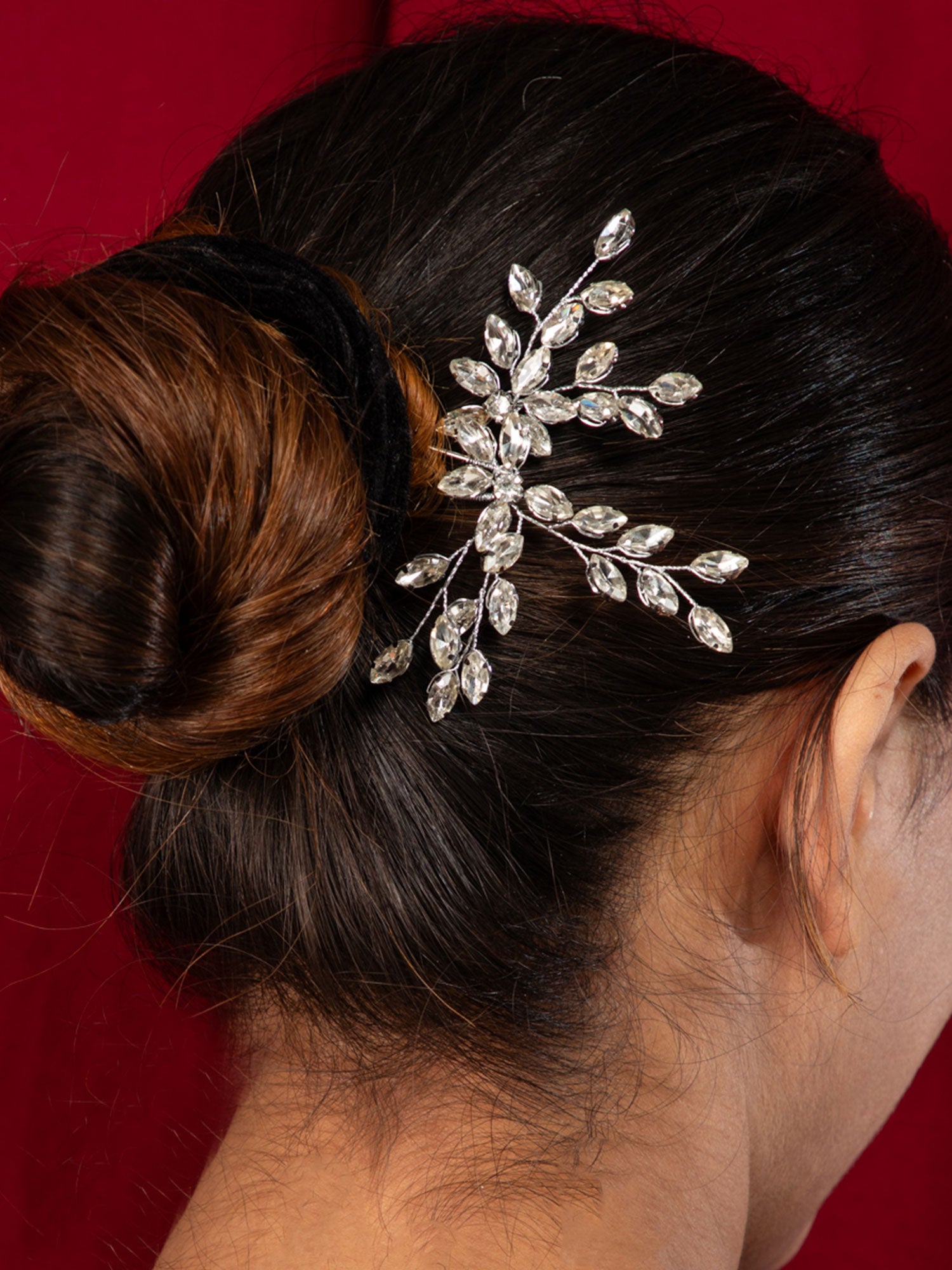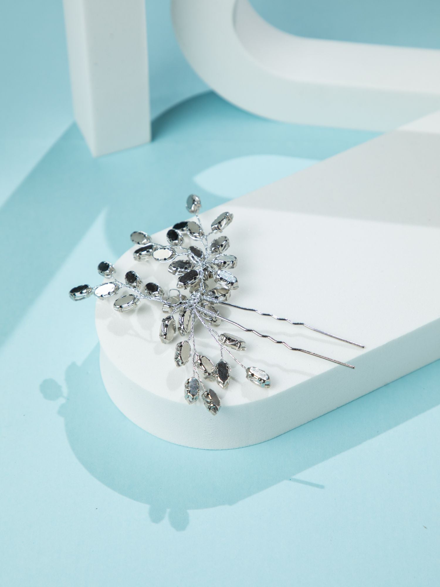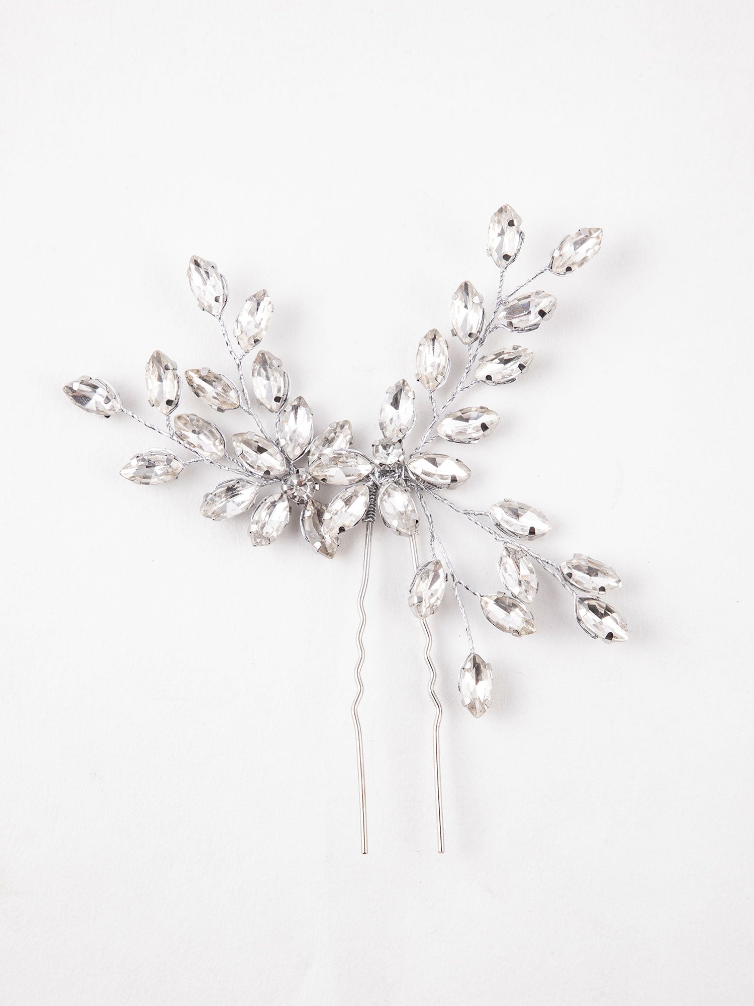 Rhodium Plated Flower Design Hairpin with Sparkling White Stones
