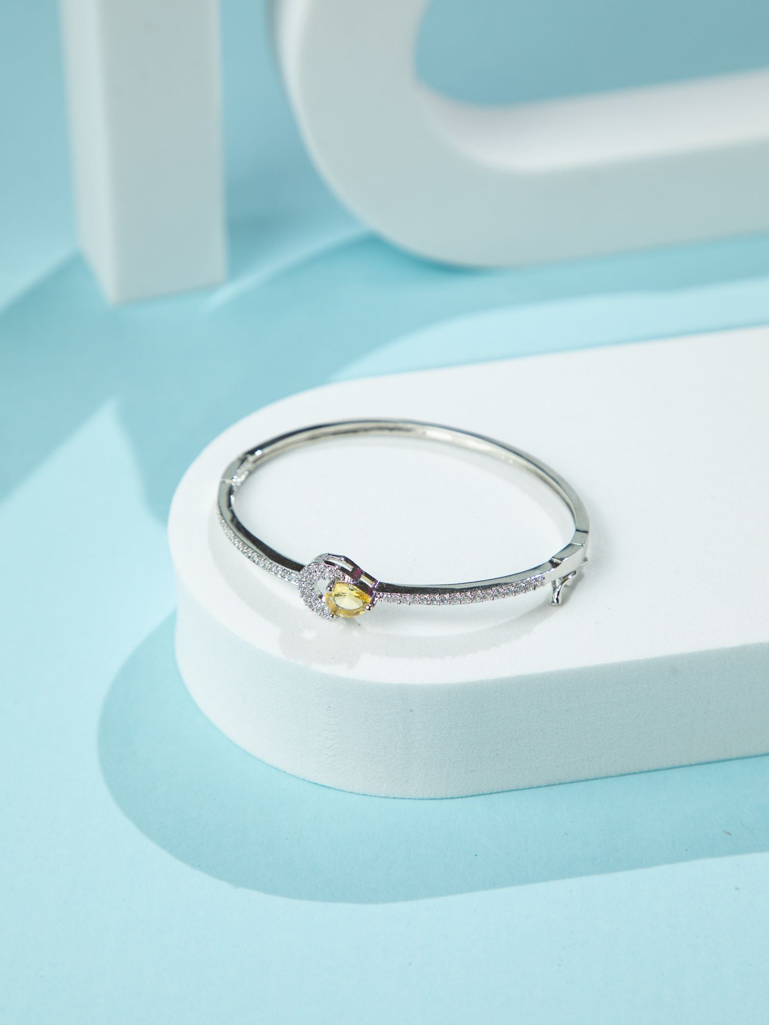 Rhodium Plated Silver American Diamond Bracelet with Yellow Stone