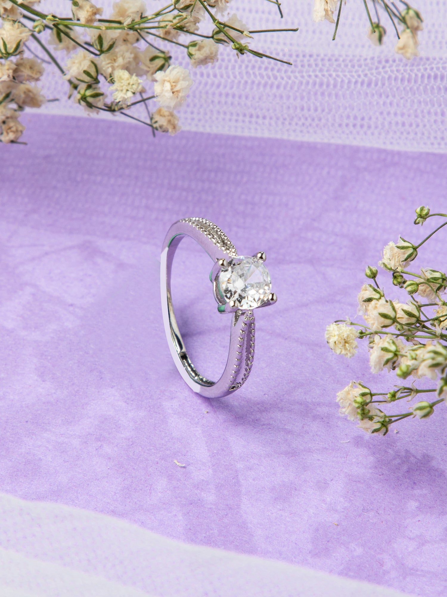 Pair with a sleek evening gown or ethnic wear to let the solitaire ring shine as the statement piece of your ensemble.