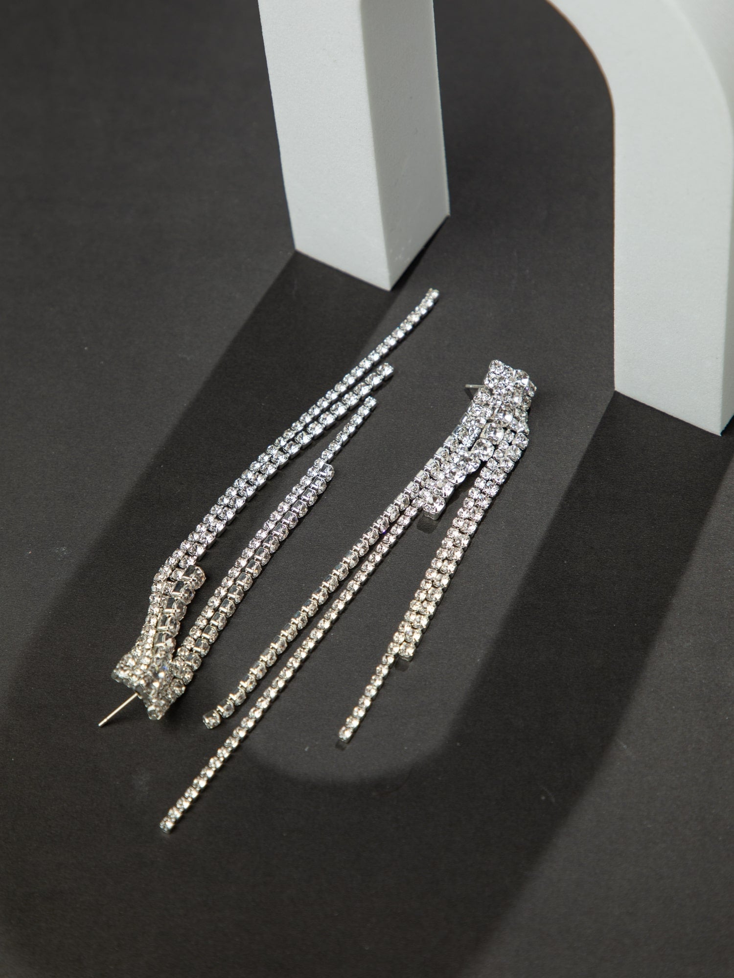 Rhodium Plated White American Diamond Waterfall Multilayer Earrings