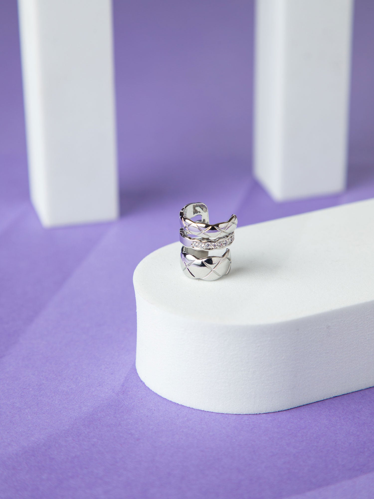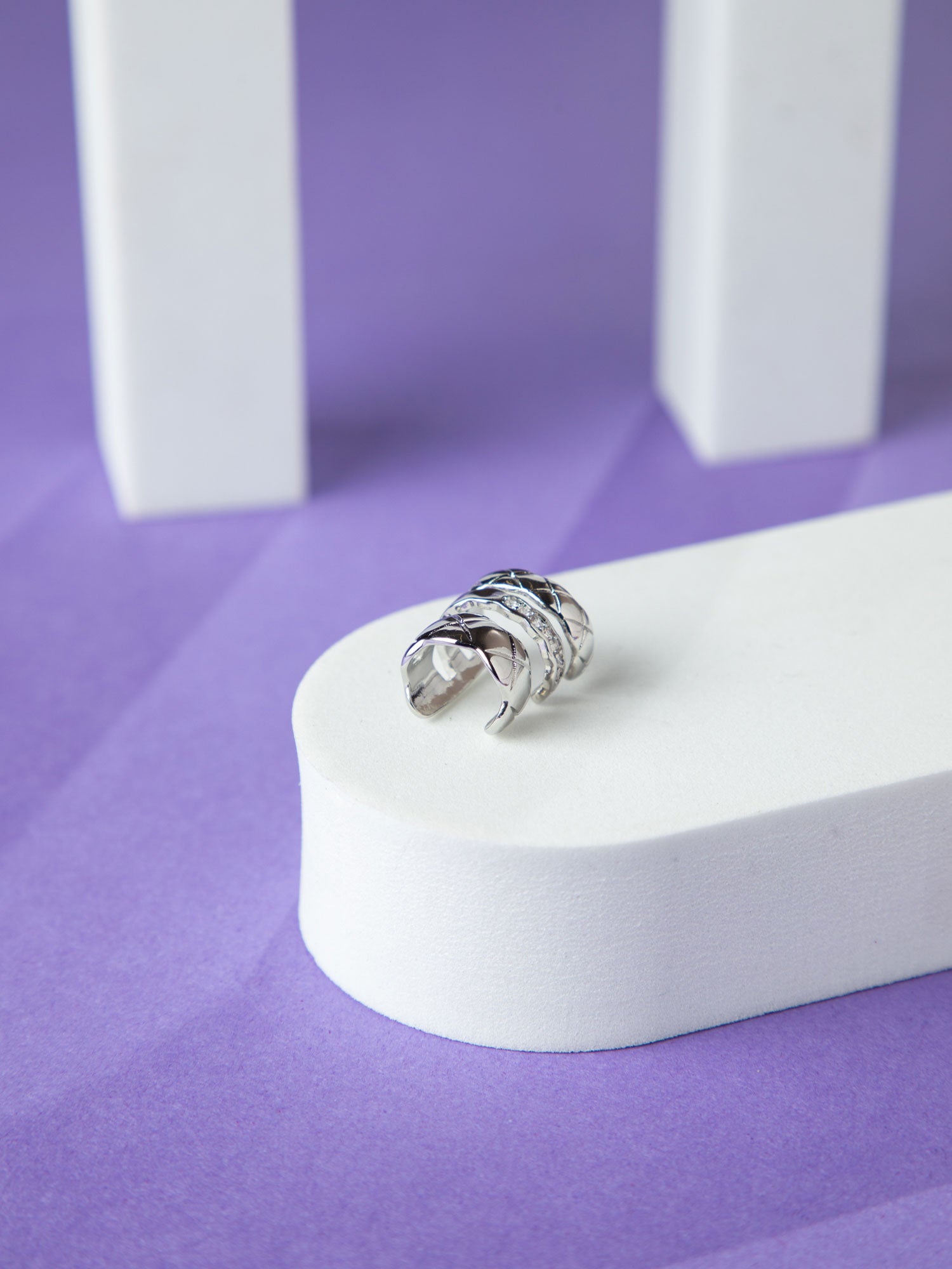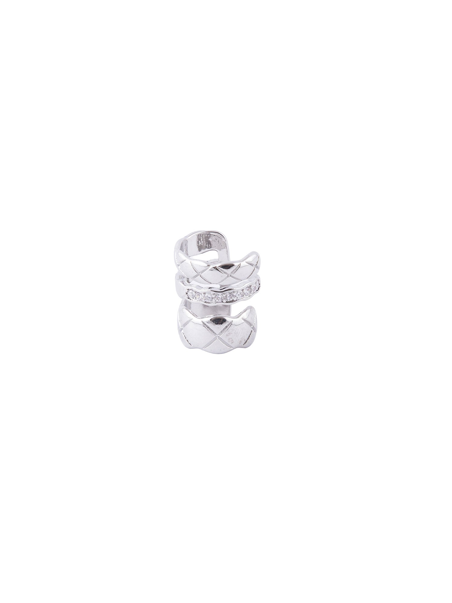 Rhodium Plated White CZ Stone Ear Cuff