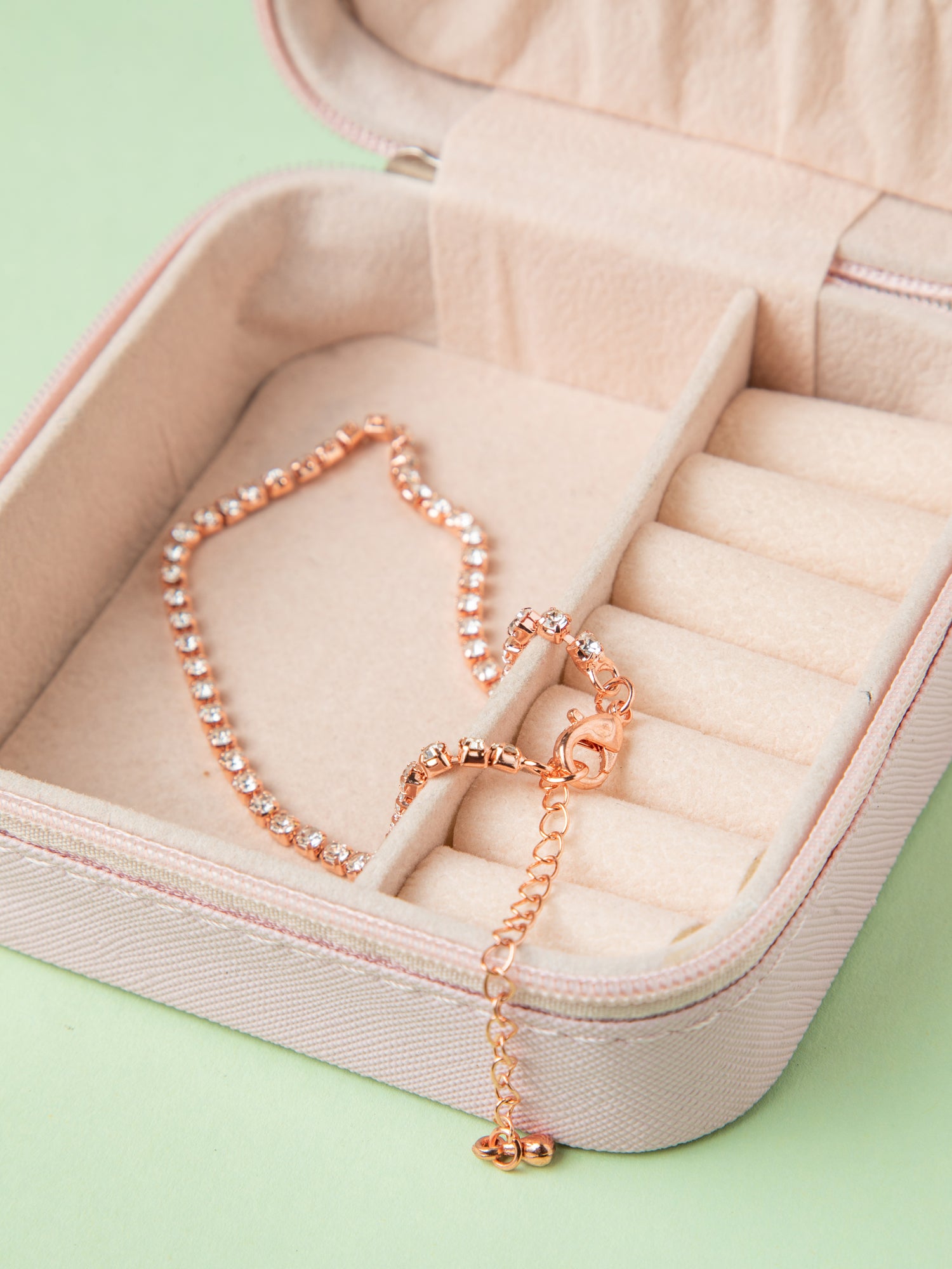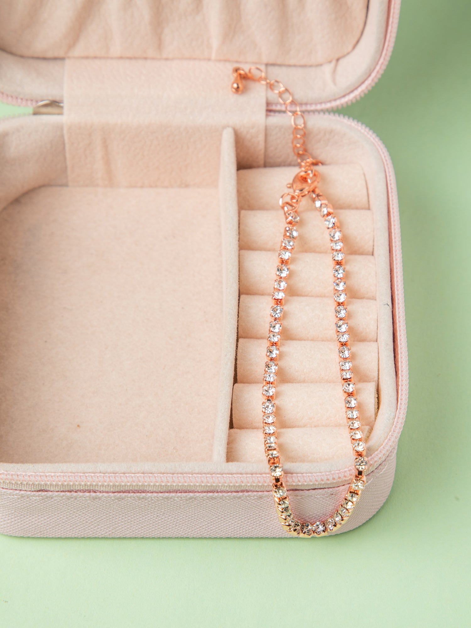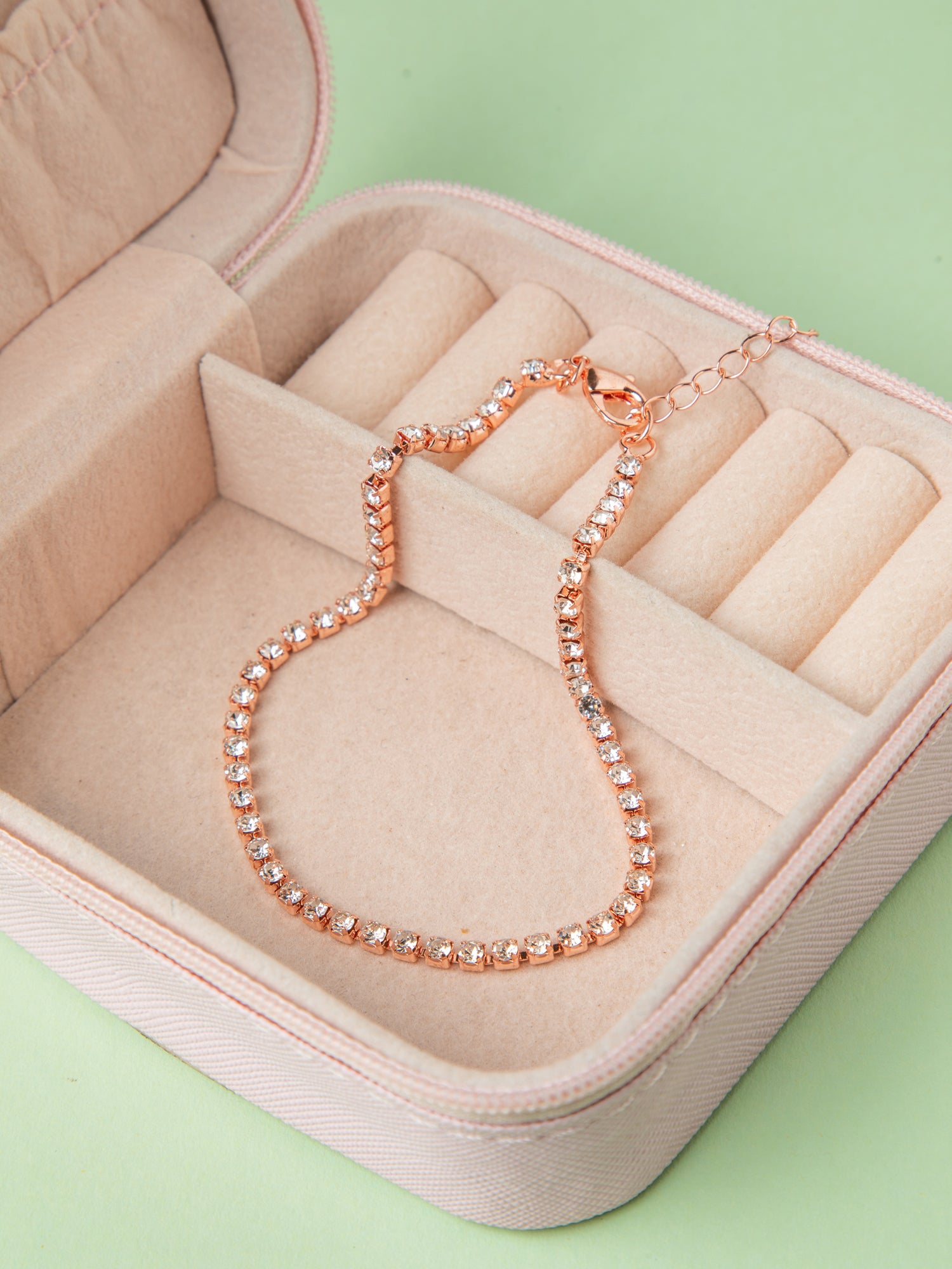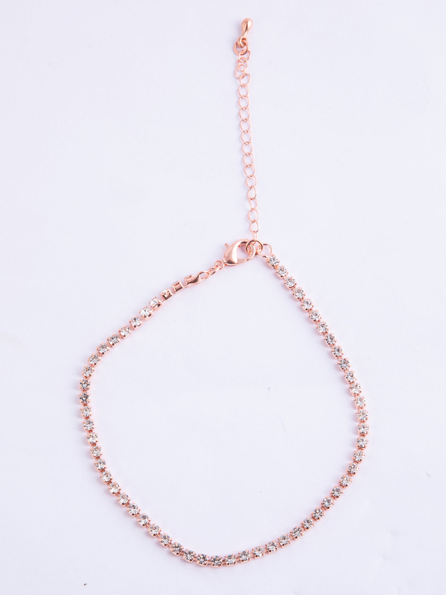 Add a touch of elegance with this rose gold plated bracelet, studded with sparkling white American diamonds. A timeless piece from the latest collection, perfect for festivals, functions, or parties.