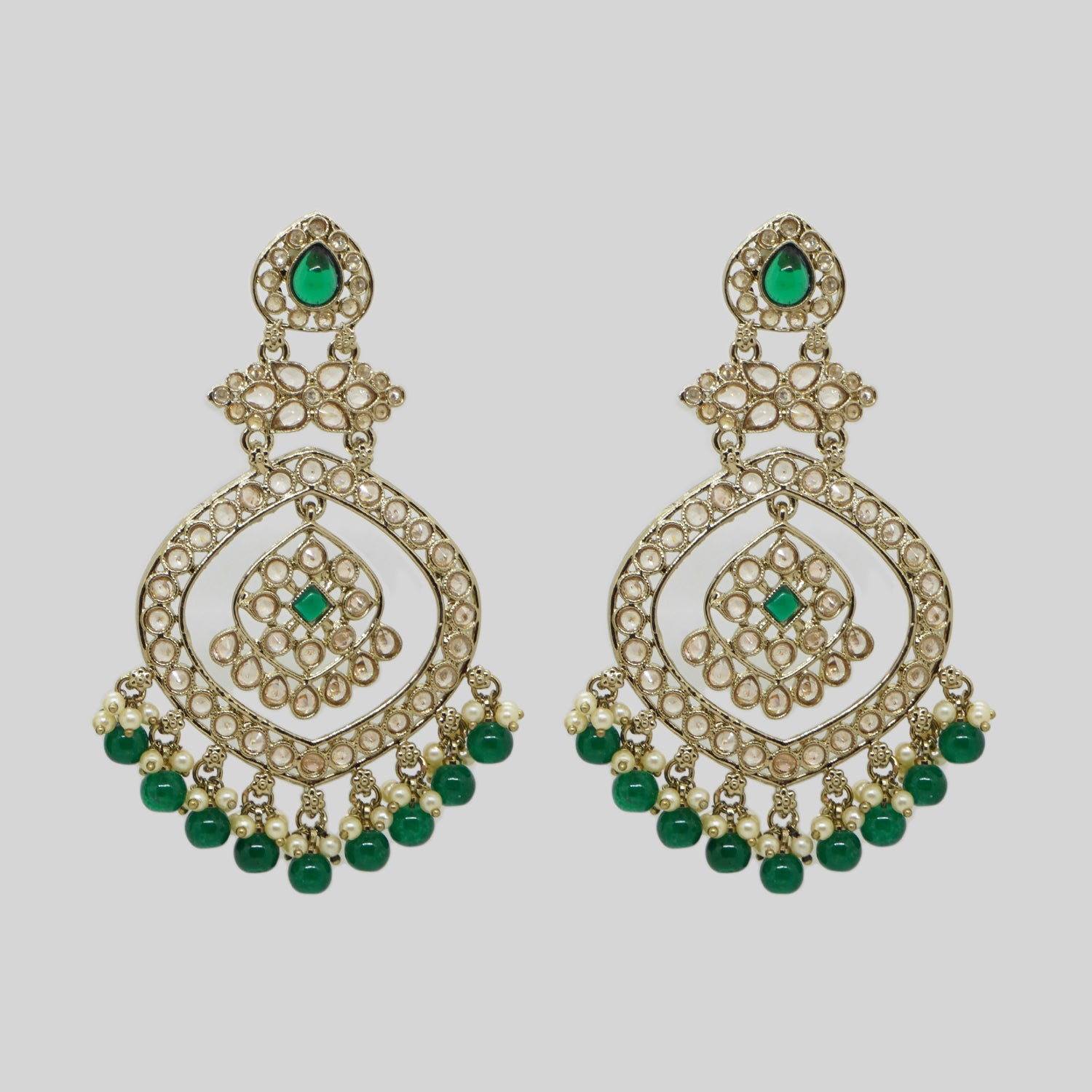 Green jewellery is the most subtle and versatile jewellery that can be styled with any colour outfit. Make your reception black saree look perfect and elegant with these earrings.