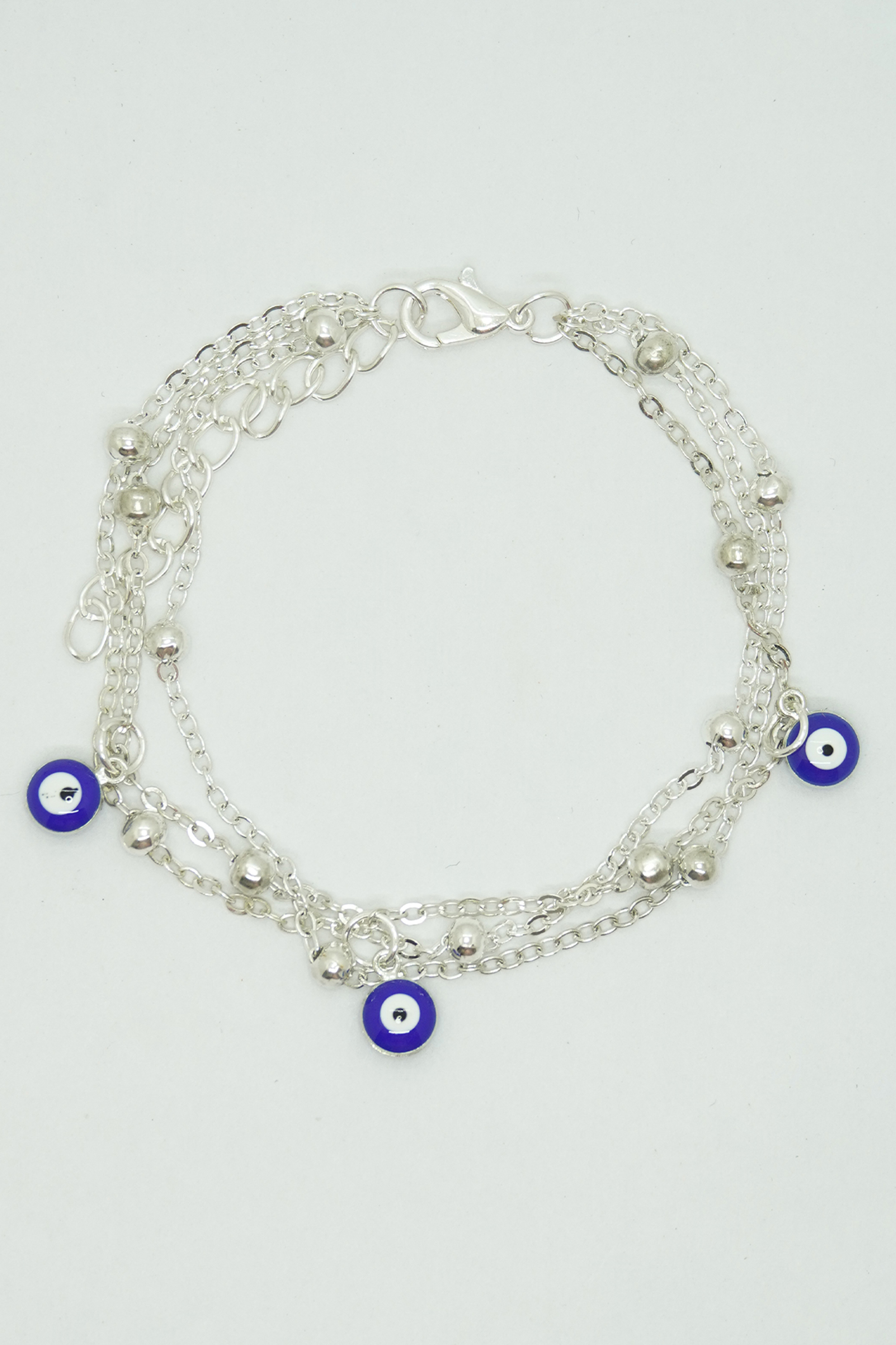 Beautiful blue colour evil eye anklet with silver plating. It is a layered silver anklet which looks very fancy and stylish. The evil eye symbol protect you and will get your good luck.