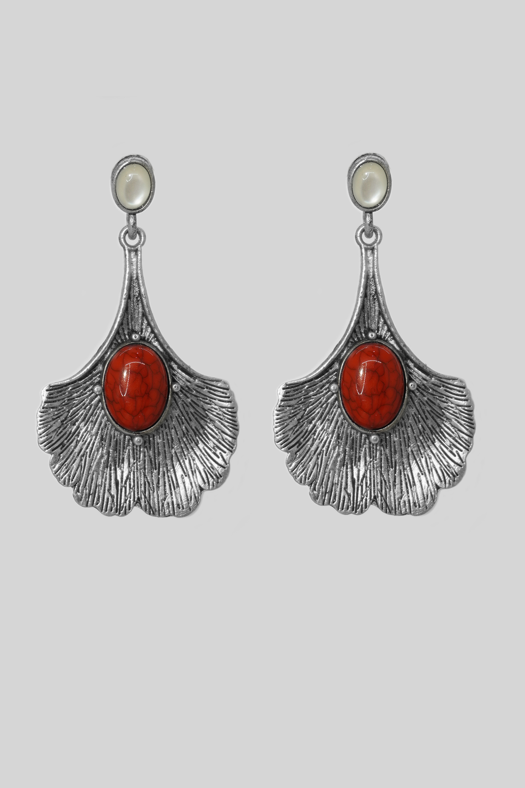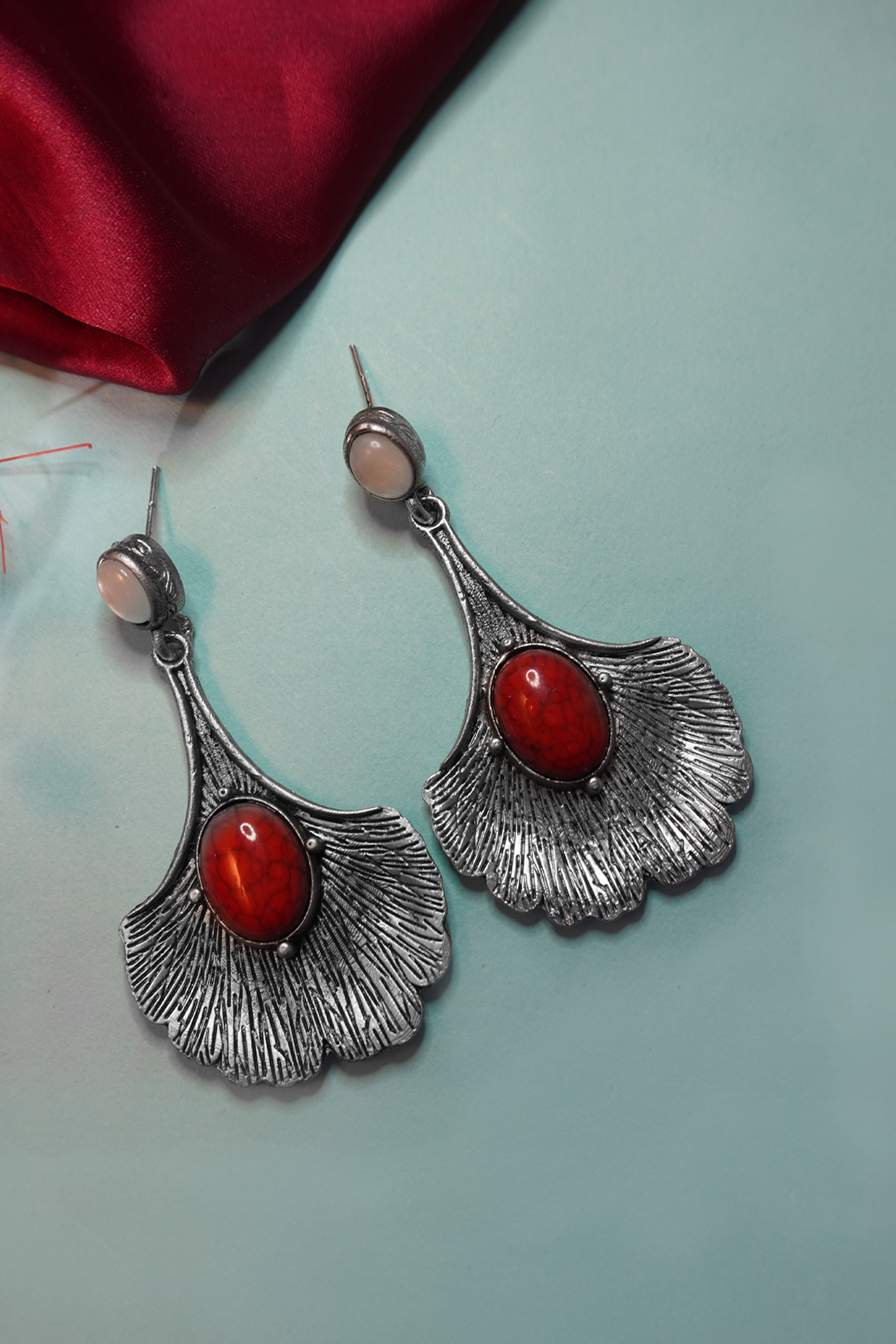 This is a beautiful piece of fancy oxidized long earrings. This stylish earring has a floral pattern with red and white stone embedded in it. The earring is made up of light quality brass which is skin friendly and anti tarnishing. The earring is very light-weight and can be worn with western as well as traditional outfits.