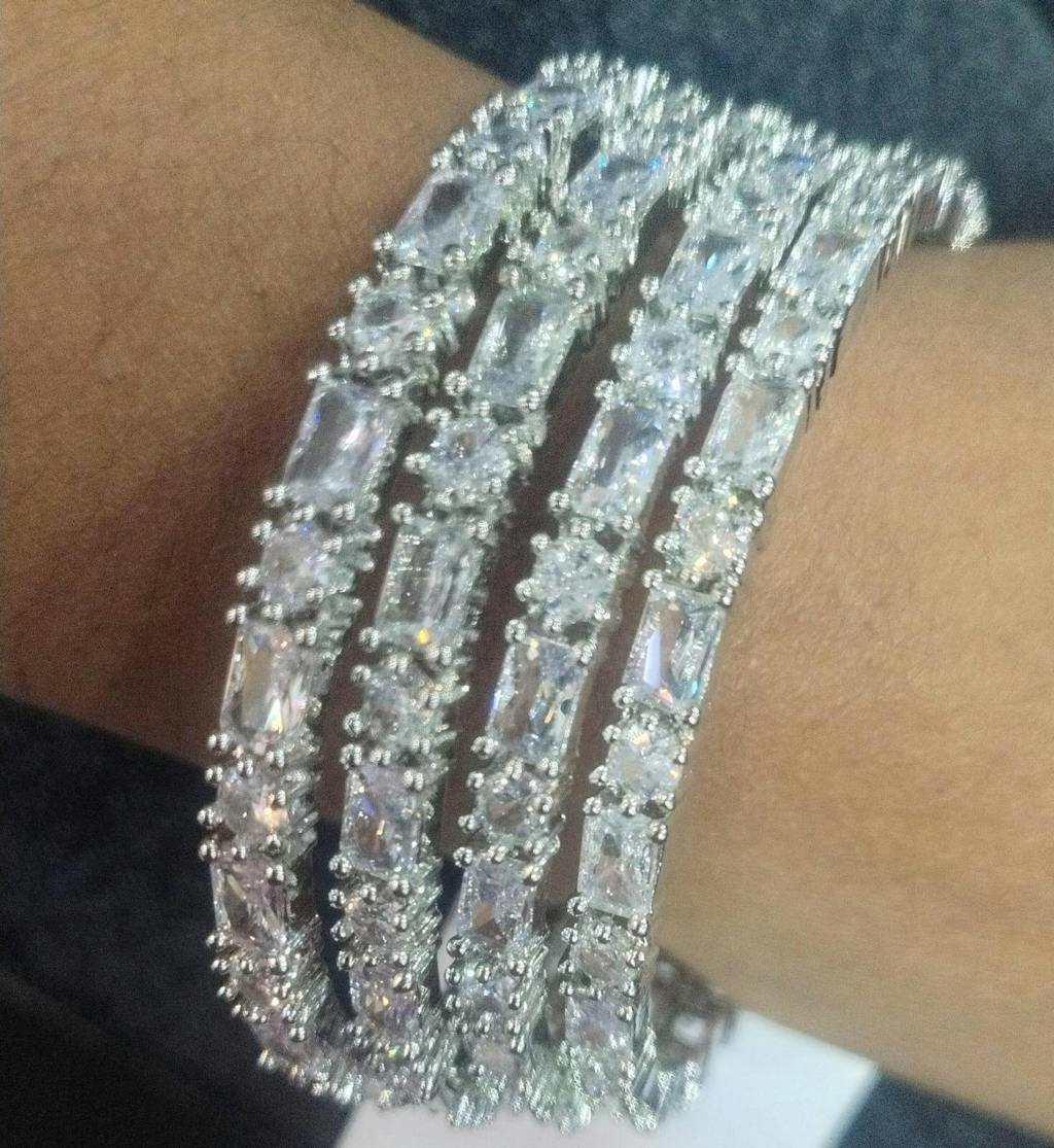 Silver Rhodium Plated American Diamond Bangle (Set of 4)