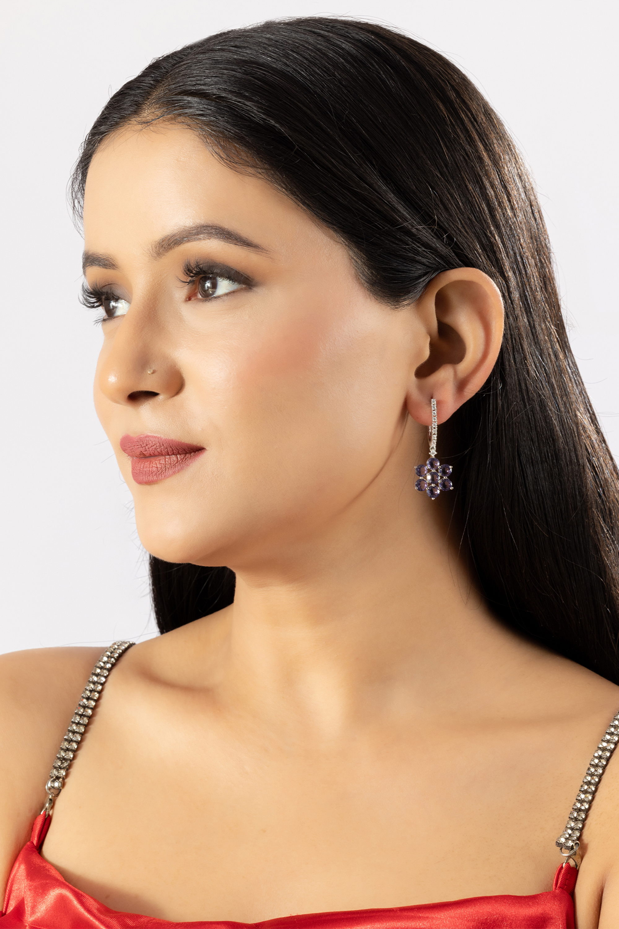 Silver-toned Purple Stone American Diamond Dangler Earring