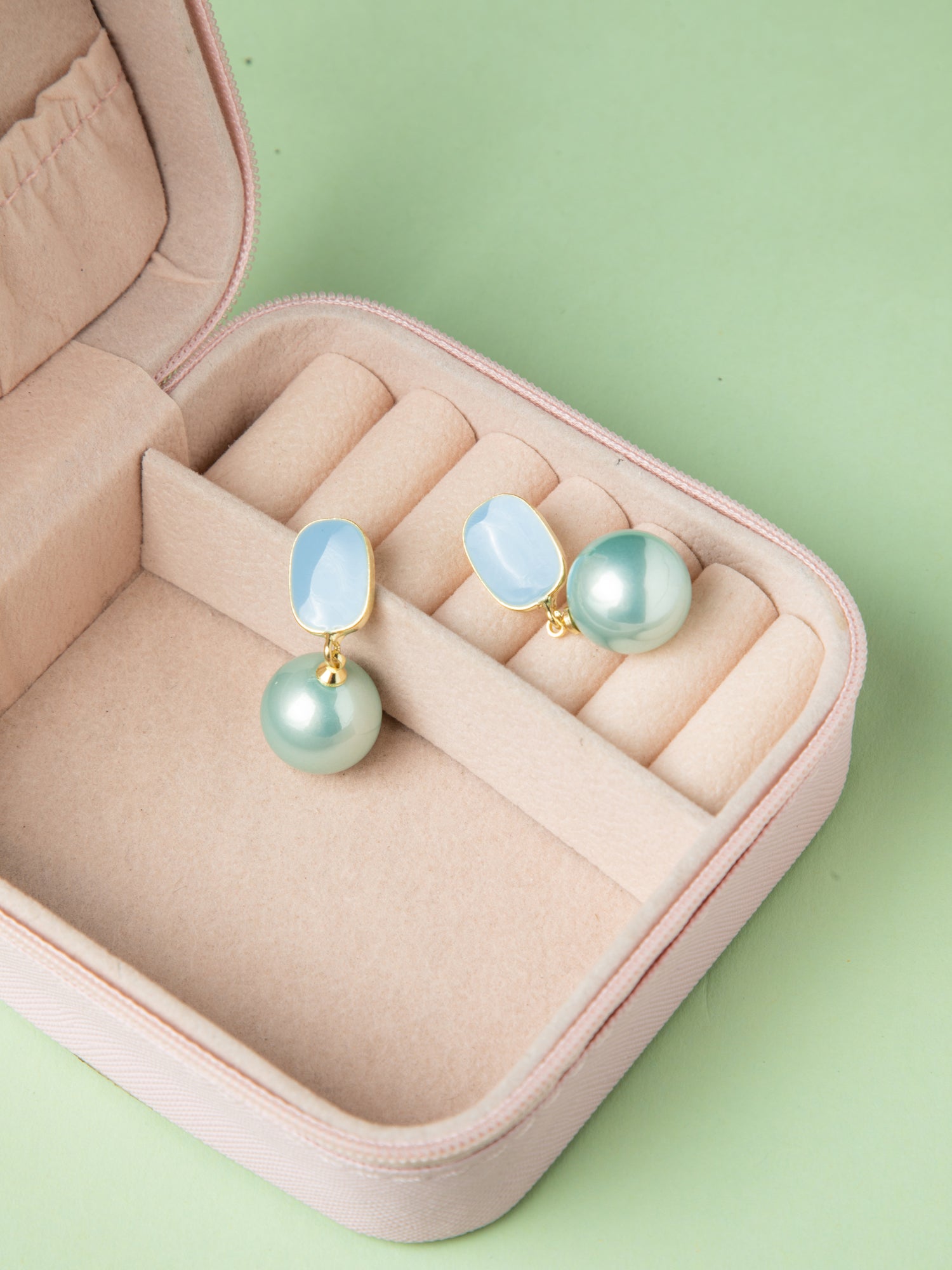 Pair with a blue or gold outfit to enhance the vibrant pearl and stone combination.
