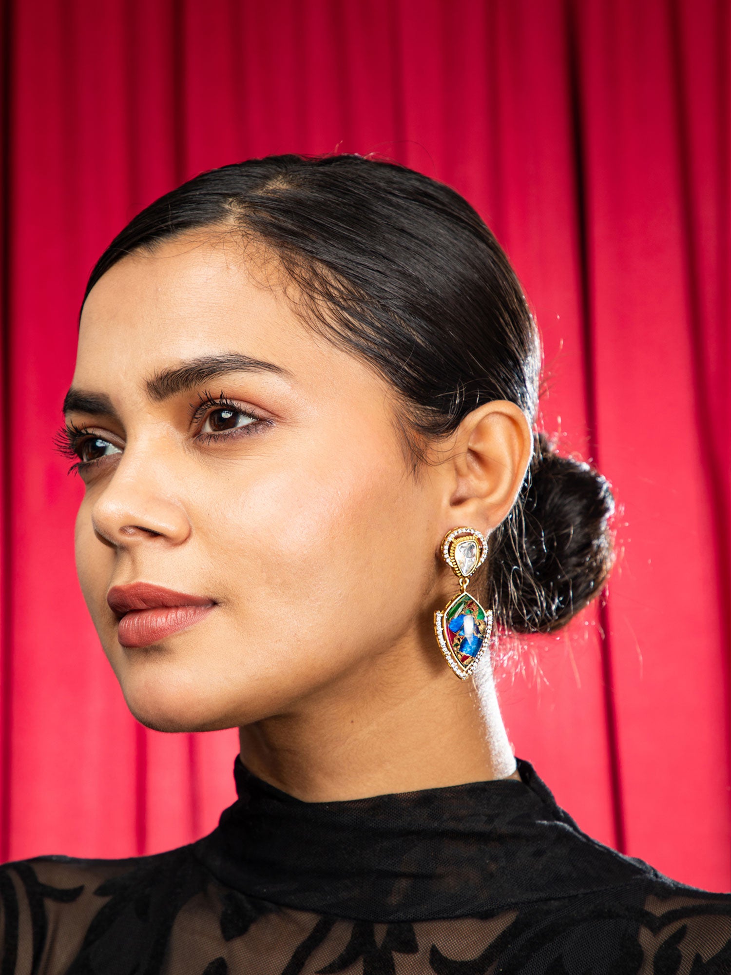 Vibrant Royale Multicolor White CZ Kundan Earrings