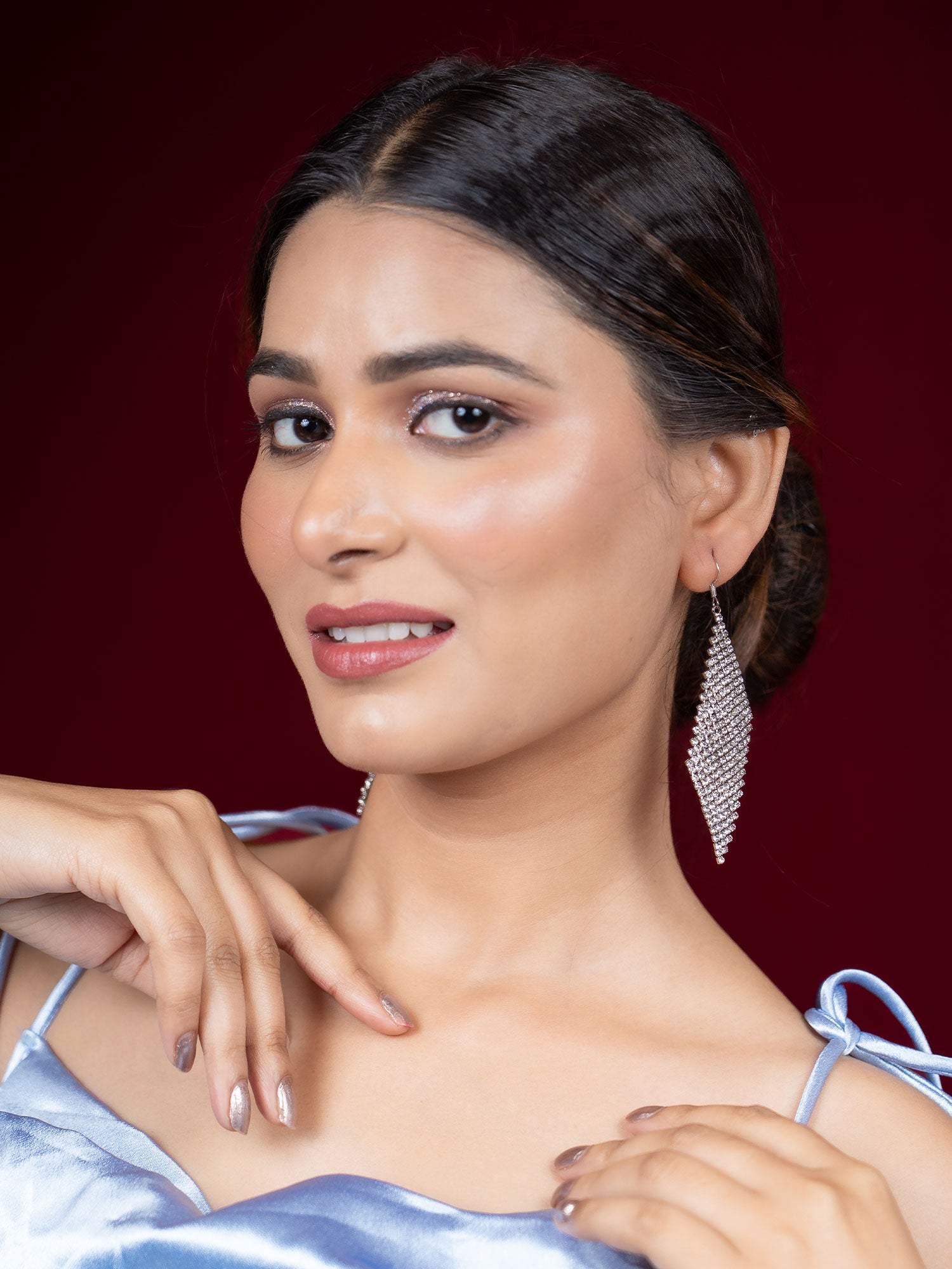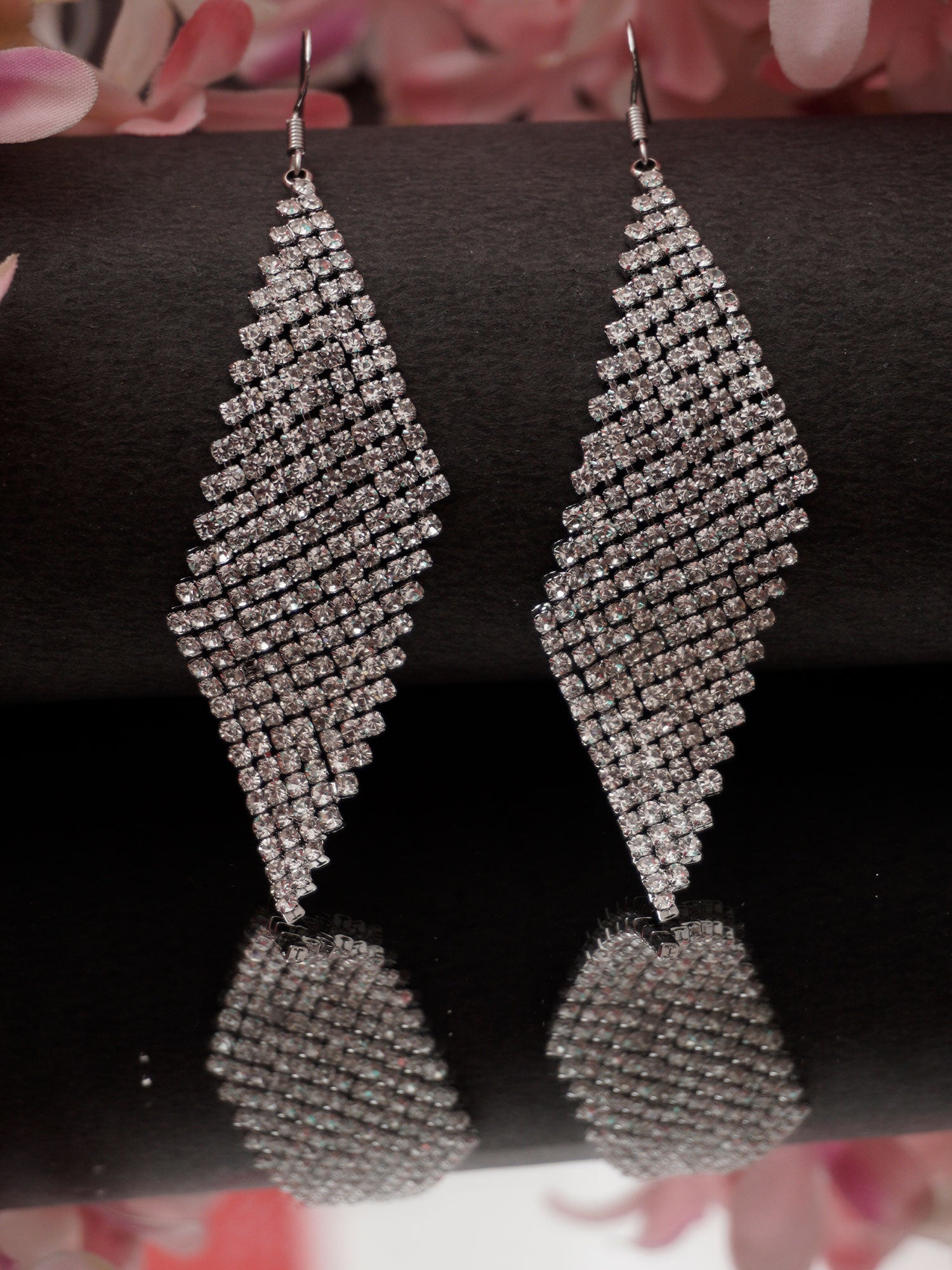 Elevate your elegance with these long rhinestone earrings, crafted for a touch of vintage charm. Designed to dazzle, their intricate detailing and shimmering rhinestones bring an air of sophistication to any look. The fancy, elongated design gracefully enhances your silhouette, making them perfect for evening wear, weddings, or special occasions. Whether paired with a classic gown or a chic saree, these vintage-style earrings add a radiant finishing touch to your ensemble.