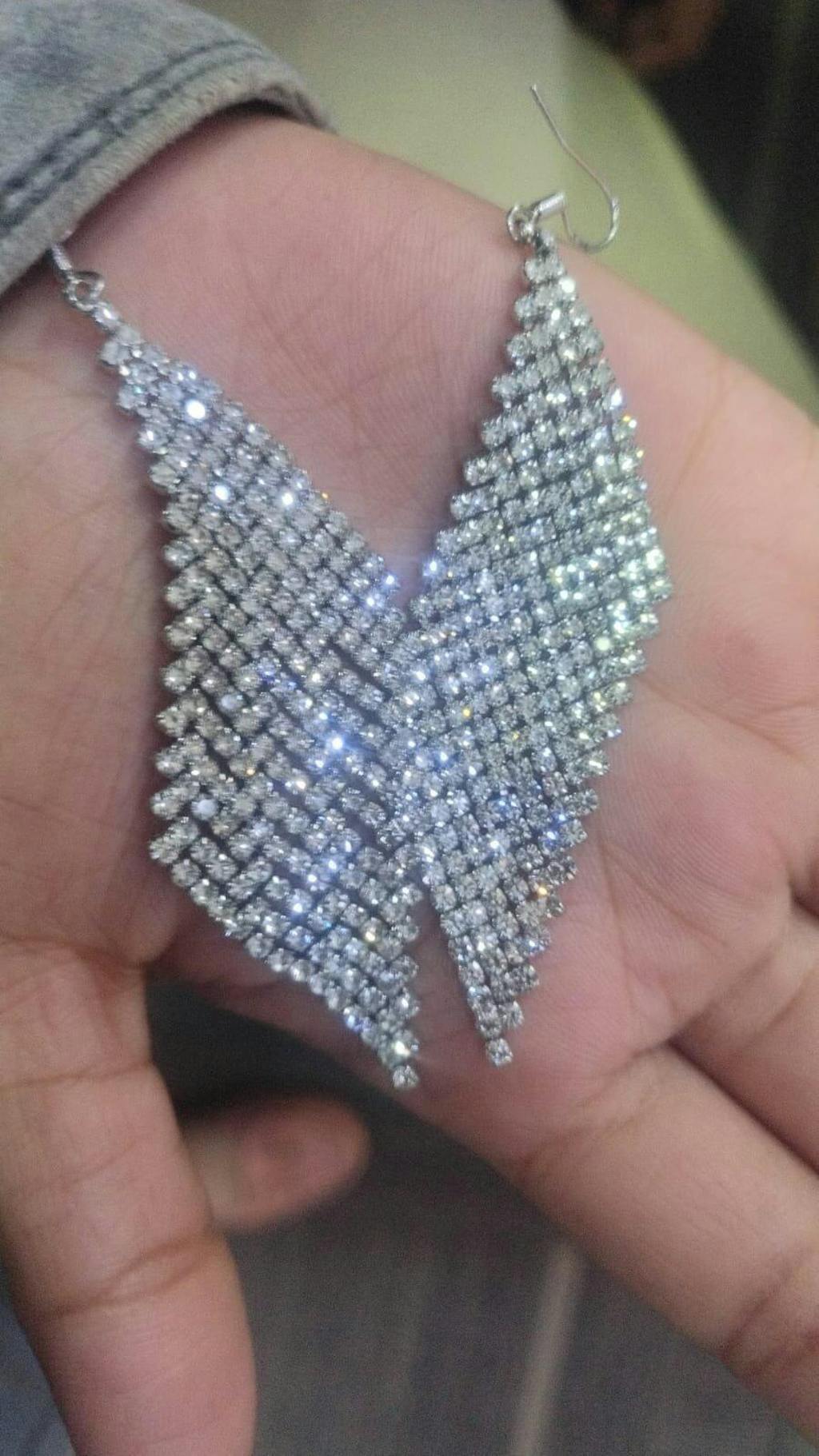 Vintage Silver Long Rhinestone White AD Earrings