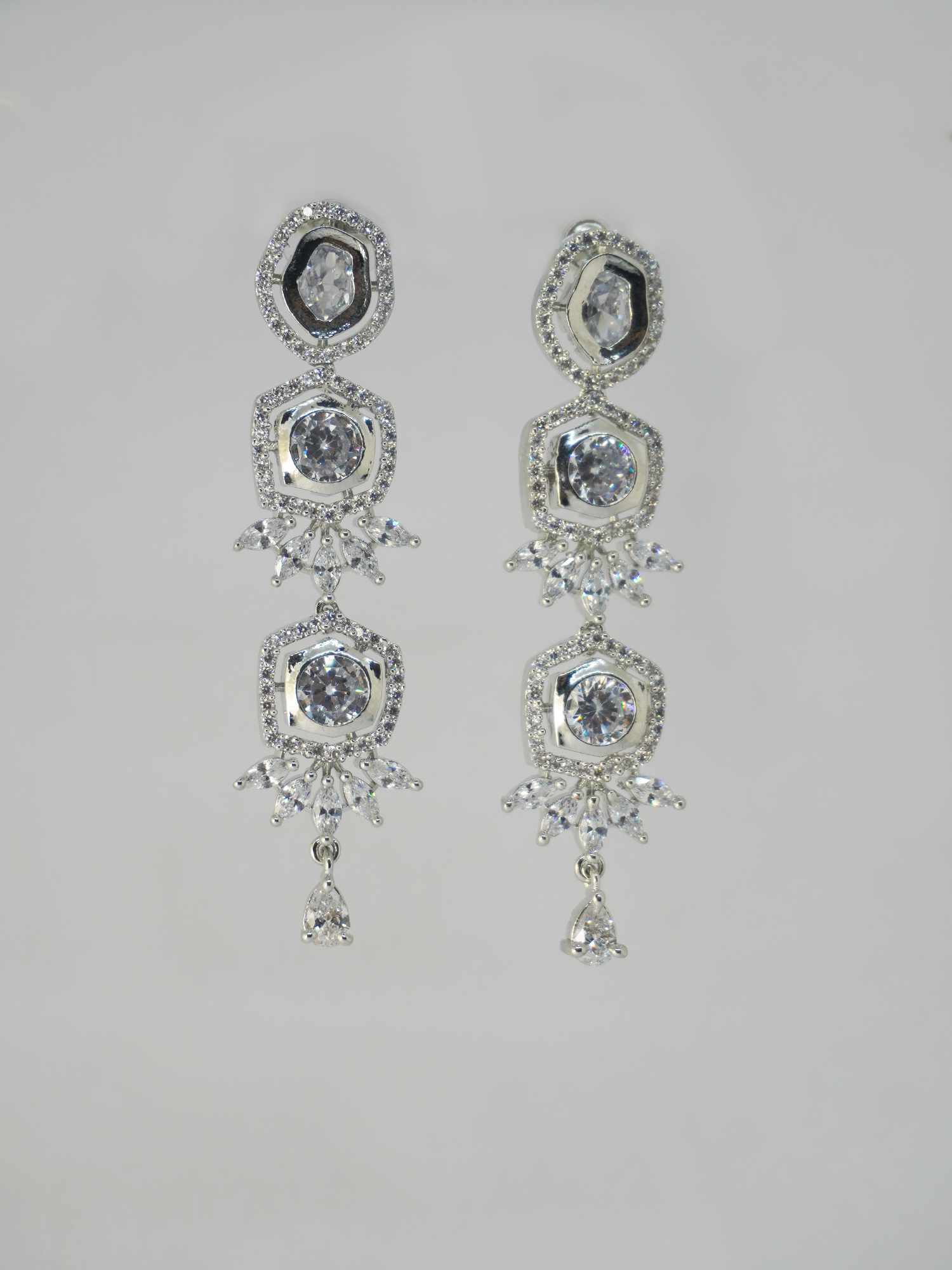 Introducing our chic and sophisticated necklace set, featuring a stunning White American Diamond and Big White Stone Necklace paired with beautiful earrings in an attractive new design. The necklace boasts a captivating arrangement of White CZ Stones, exuding elegance and glamour. Enhanced with rhodium plating, this latest design exquisitely complements any ensemble, adding a touch of modern sophistication to your look. Elevate your style with this timeless necklace set, perfect for any occasion where you want to make a statement with your accessories.
