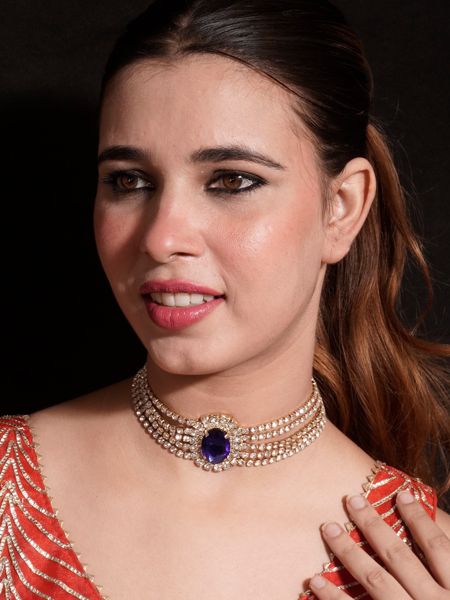 Make a bold statement with Niscka's multi-layer blue choker necklace, designed to captivate with its blend of elegance and modern charm. This exquisite piece features shimmering zircon accents and sparkling rhinestones, perfectly arranged across multiple layers for added depth and dimension. The vibrant blue tones enhance its versatility, making it suitable for both casual and formal occasions. Lightweight and comfortable, this choker necklace effortlessly elevates your style with a touch of brilliance.