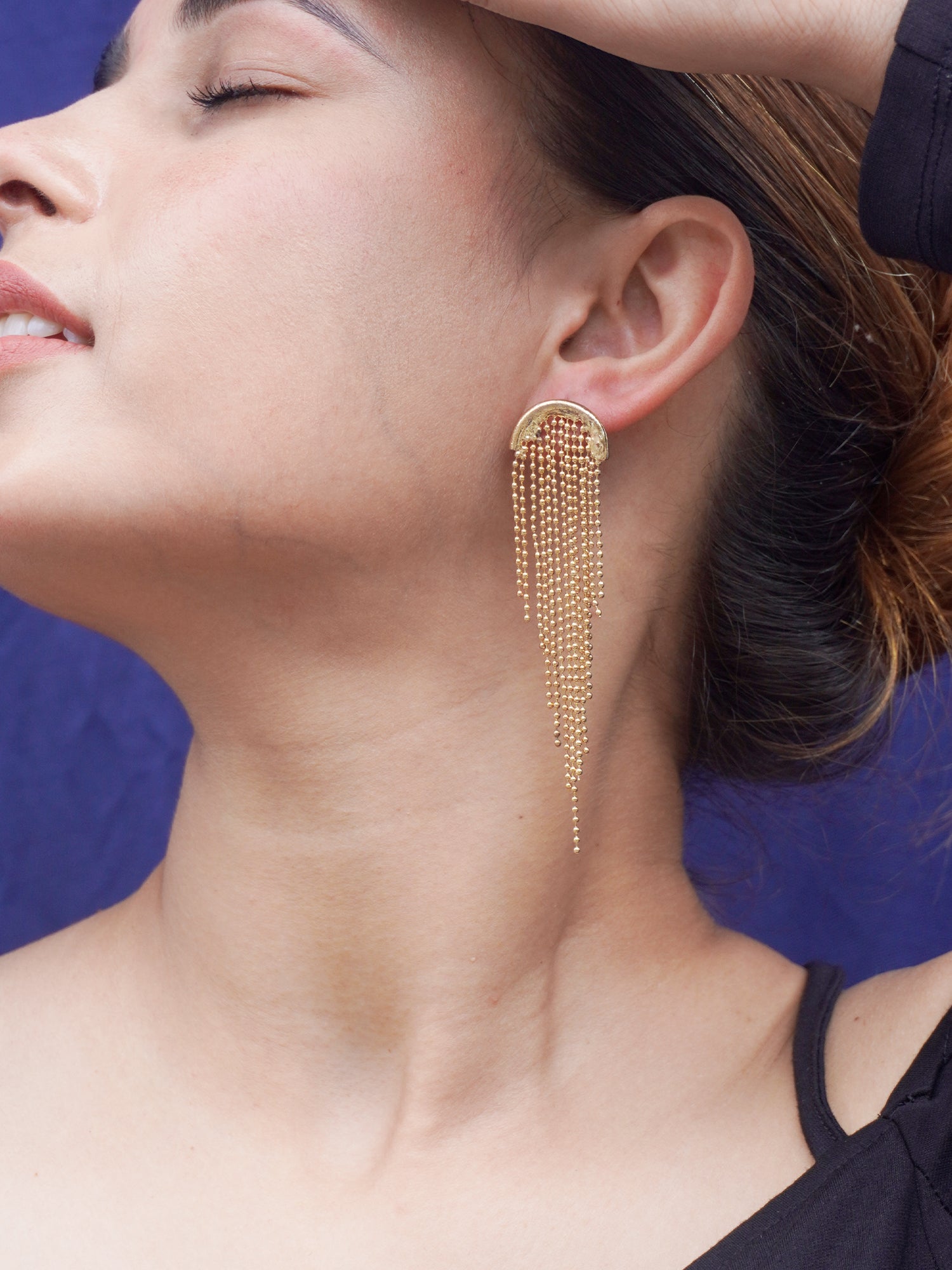 Showcase Niscka's Gold Plated Fashion Chain Earrings by pairing them with a sleek, modern outfit that highlights their contemporary design. Opt for a simple, solid-colored top or dress to let the earrings shine. Consider a hairstyle that keeps the focus on your ears, such as a chic updo or a sleek ponytail.