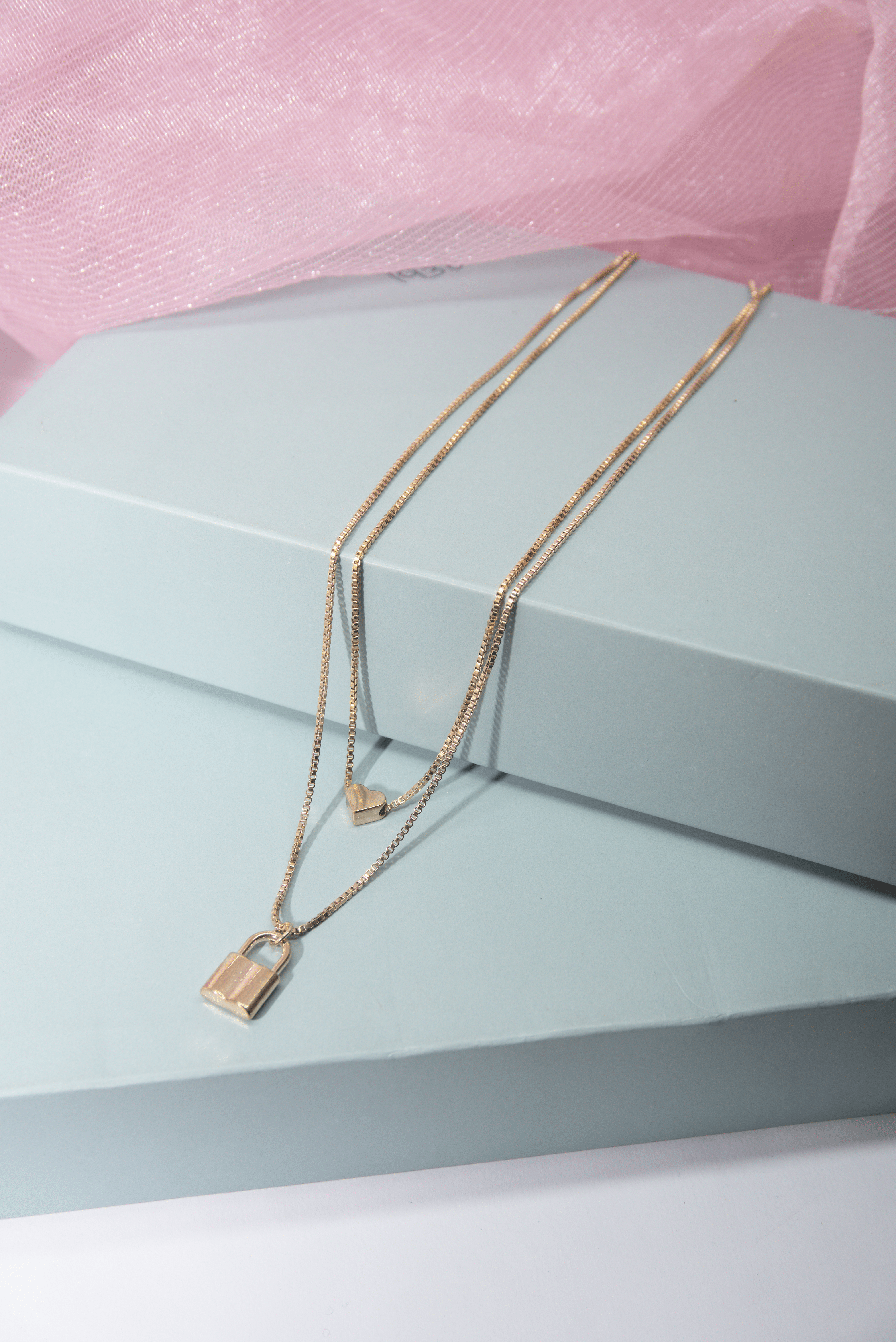 "Introducing Niscka's Demi-Fine Heart and Lock Double Layer Chain Pendant, a stylish accessory that combines a unique design with modern elegance. This eye-catching pendant features a heart and lock motif, set on a double layer chain for added depth and dimension. The intricate heart and lock design symbolizes both love and security, making it a meaningful piece perfect for any occasion. The double layer chain enhances the pendant’s visibility and adds sophistication, ensuring it stands out with every movement."