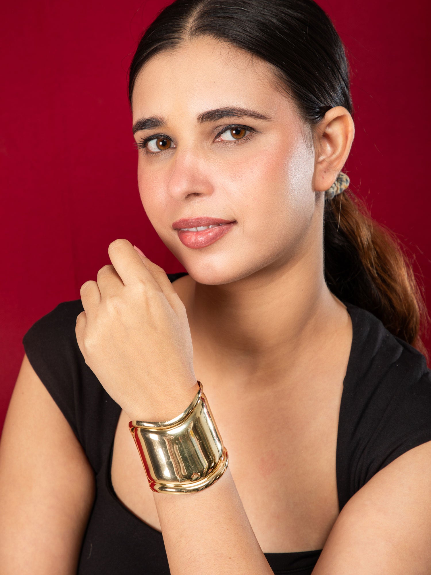 24K Gold Plated Broad Wavy Bracelet Kada