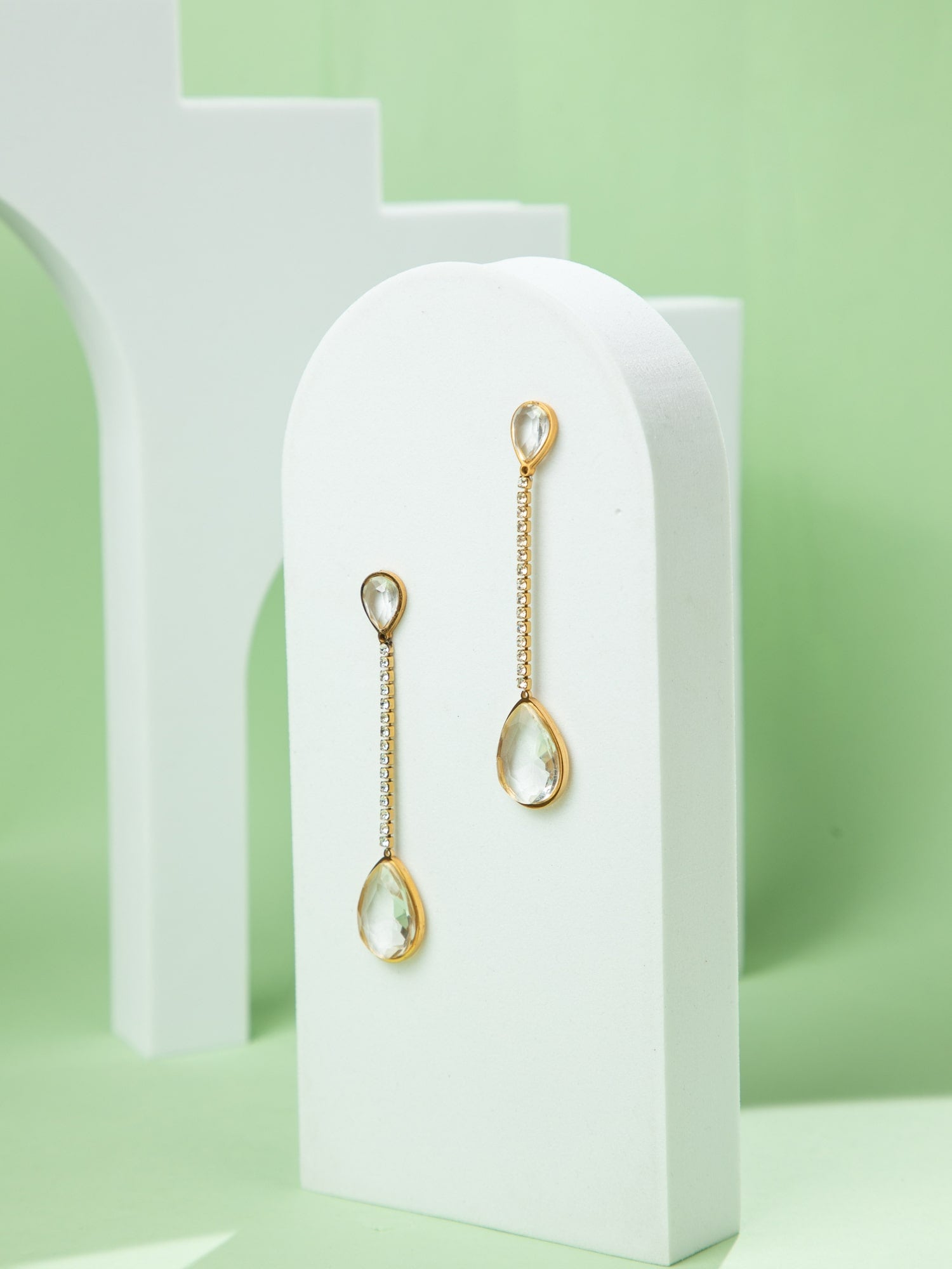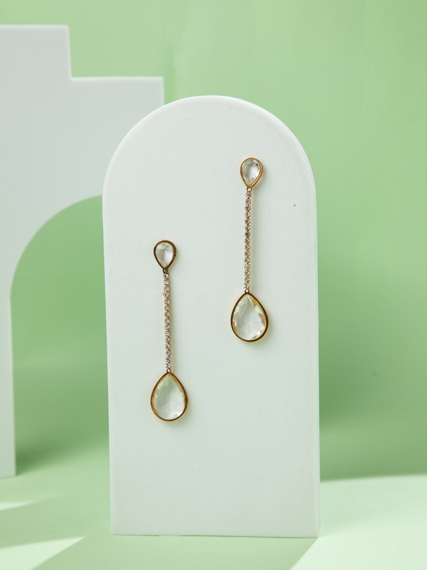 24K Gold Plated Dangler Earrings with White AD and Water Drop Stones