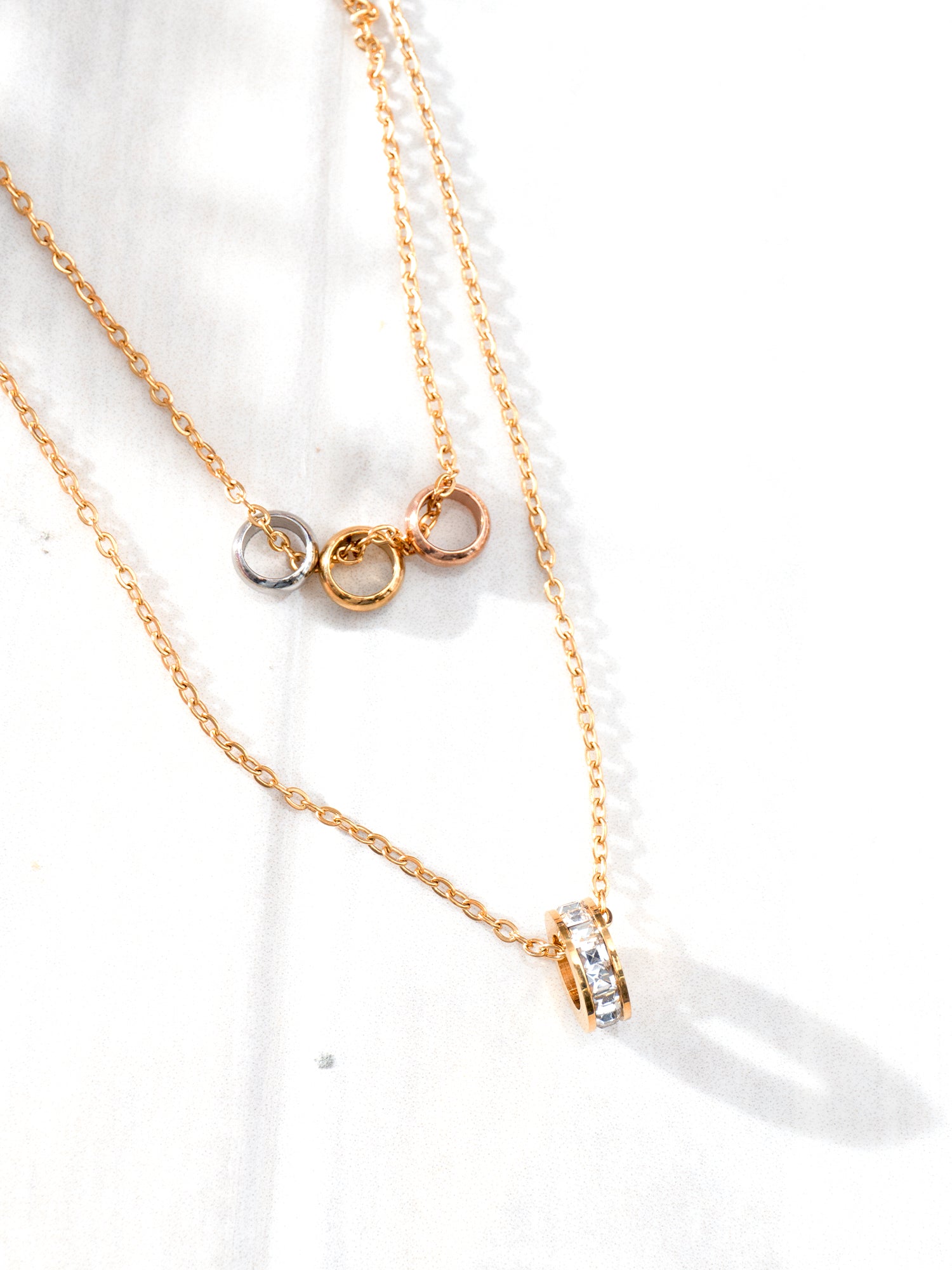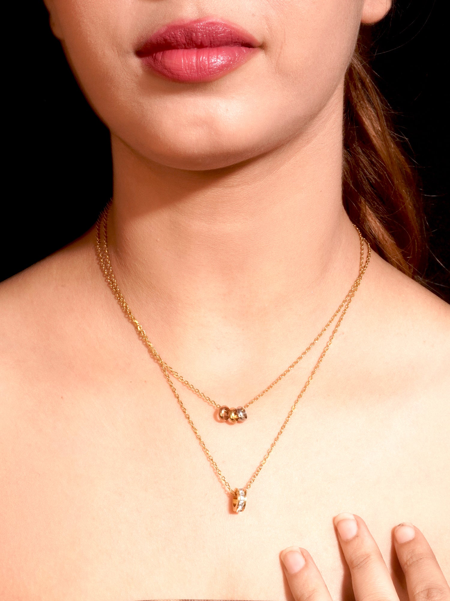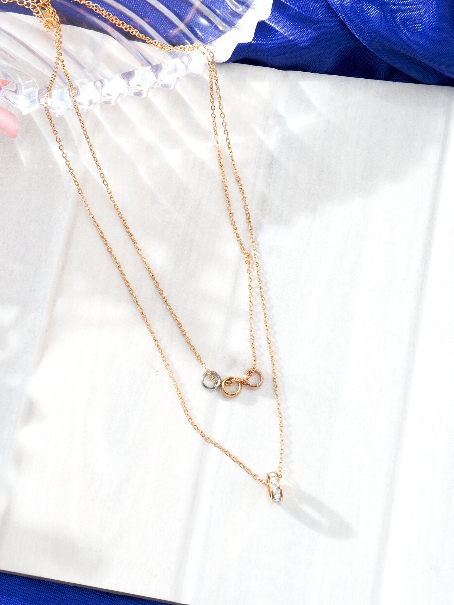 Discover the perfect blend of elegance and modern design with Niscka's stunning double-layer pendant. Featuring a unique combination of gold, rose gold, and silver circular designs, this pendant captures attention with its eye-catching versatility. The delicate zircon circular ring at the end adds a touch of sparkle, enhancing the pendant's overall allure. Crafted with a gold-plated finish, it ensures durability and a luxurious shine. Ideal for layering or wearing solo, this pendant effortlessly elevates any outfit—from casual ensembles to sophisticated evening wear. Embrace your individual style with this exquisite piece that embodies contemporary charm and timeless elegance.