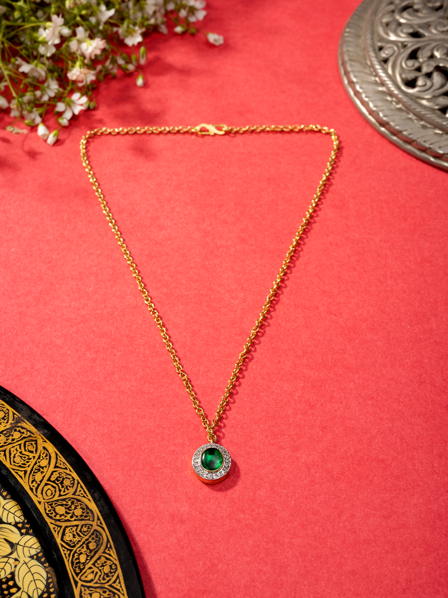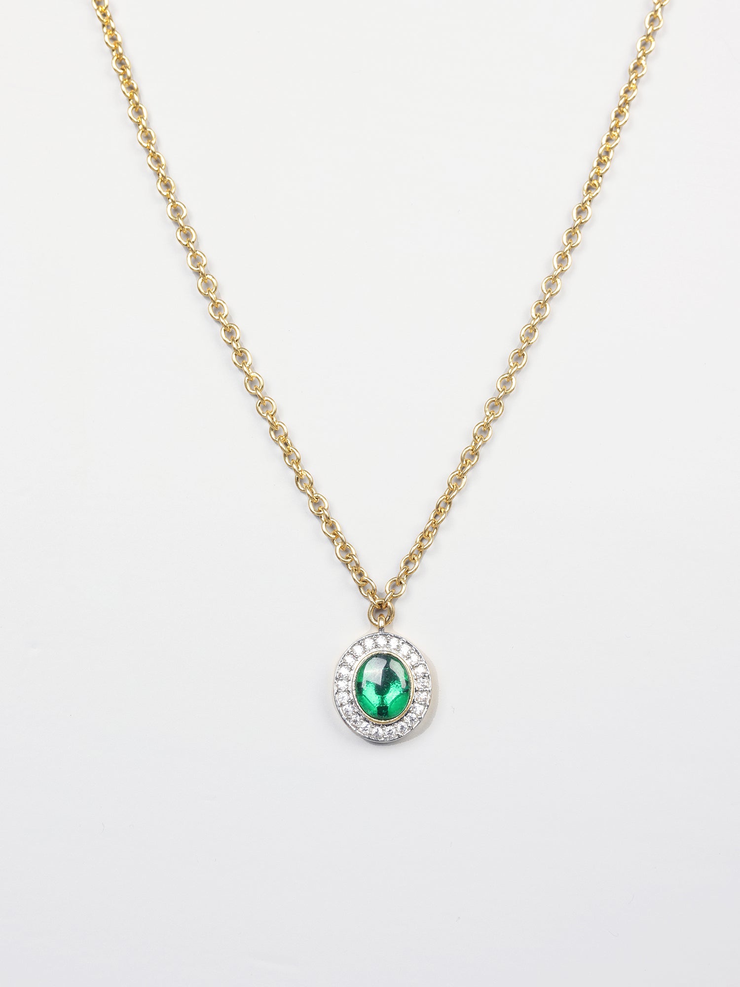 Experience the allure of our 24K Gold Plated Emerald and AAA+ Grade White CZ Stone Necklace. Each piece is meticulously crafted by local artisans, showcasing a contemporary design that seamlessly blends elegance and sophistication. Whether for daily wear or special occasions, this artfully made necklace exudes timeless charm and beauty. Elevate your ensemble with the enchanting allure of green emerald and shimmering white CZ stones, adding a touch of luxury to any outfit.