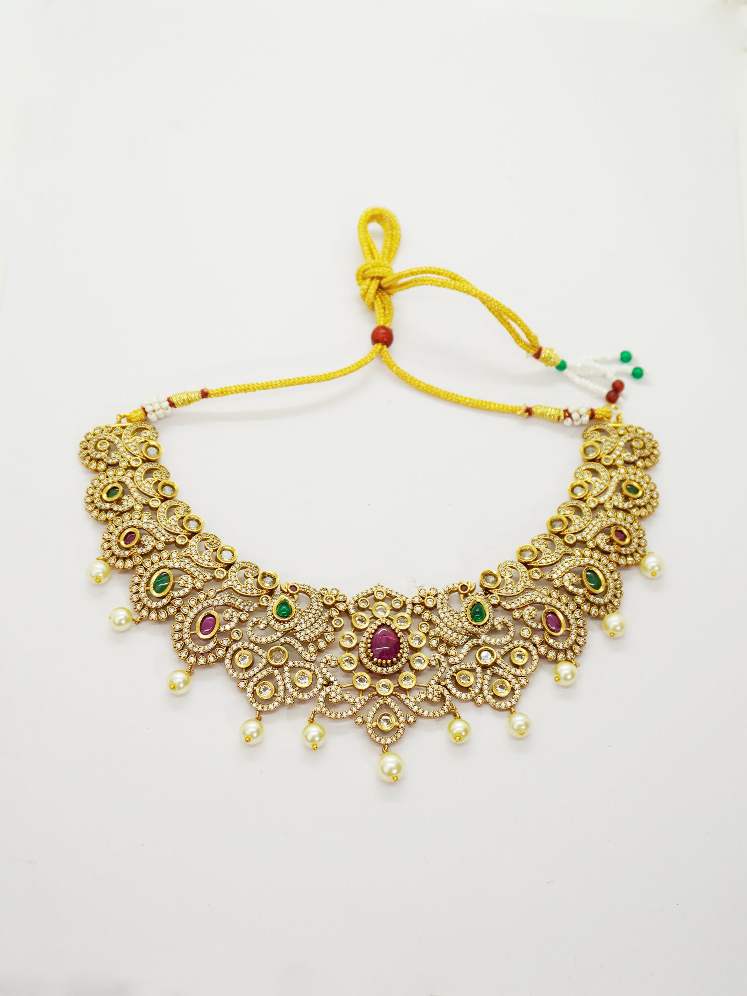 Perfect for weddings, festive occasions, or special celebrations, this set will complement your traditional attire, such as sarees, lehengas, or anarkalis. The intricate design and vibrant colors make it a perfect statement piece that will add a regal touch to any ensemble.