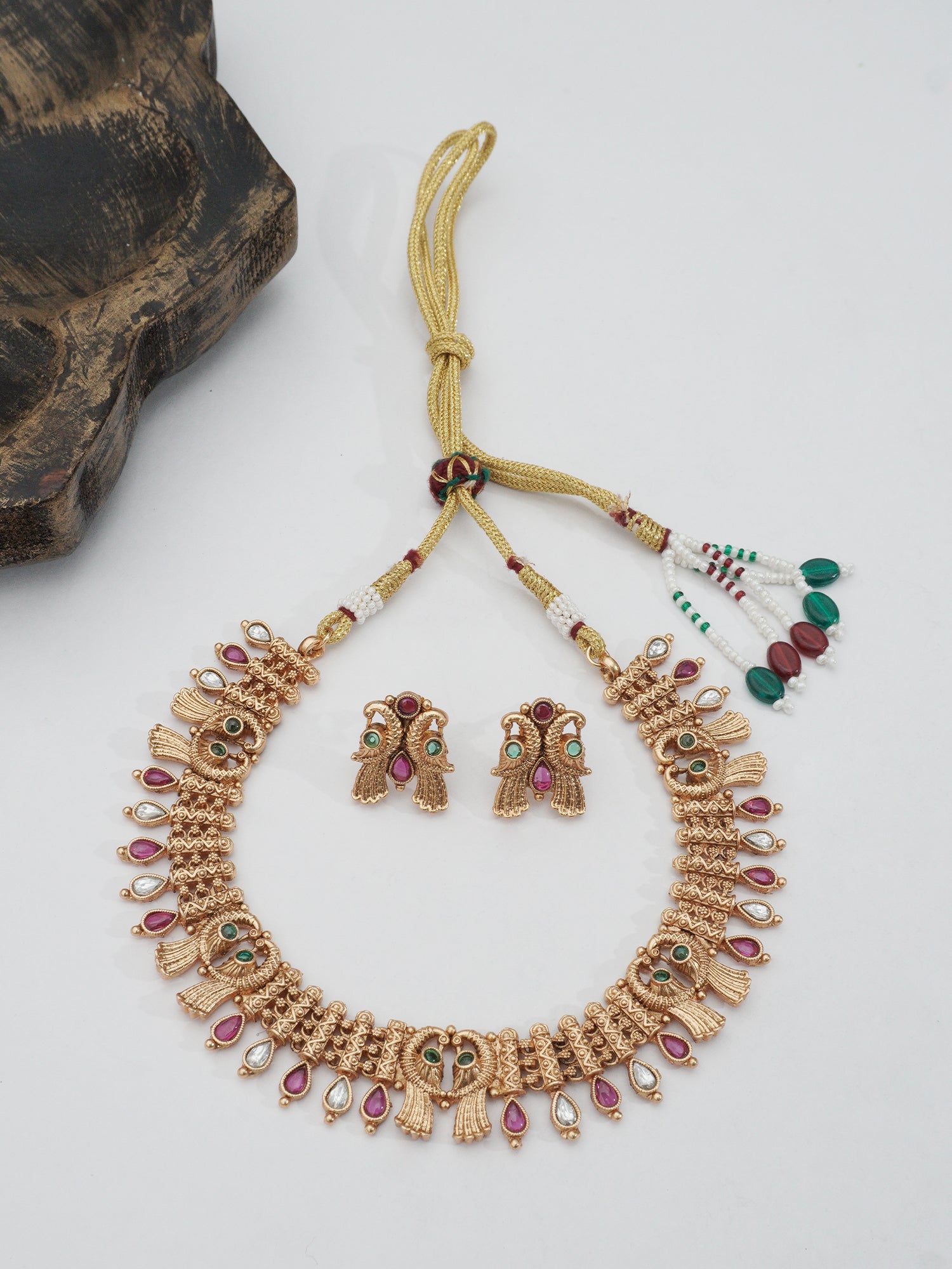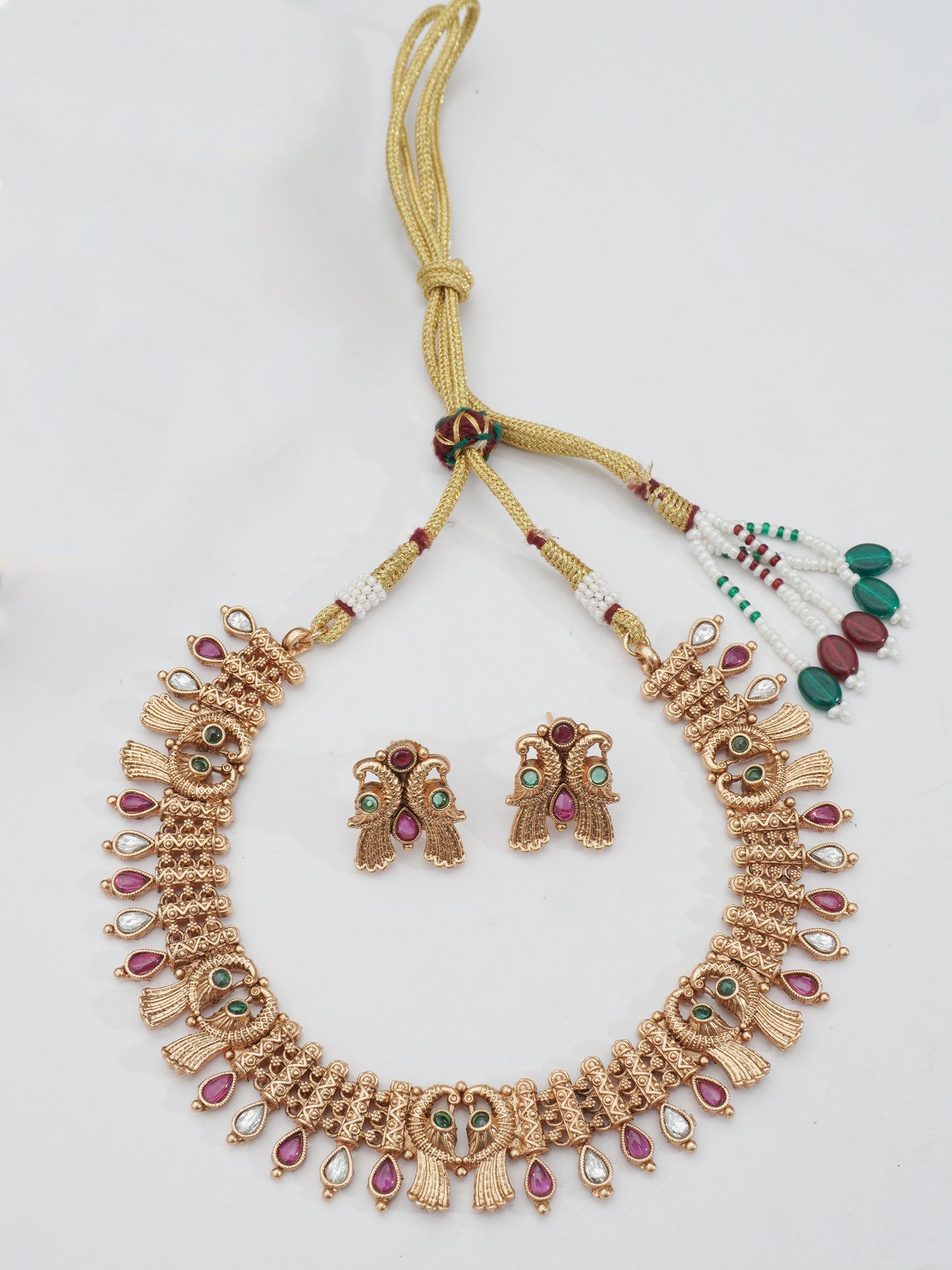24k Gold Plated Kundan Pink and Emerald Choker Jewelry Set