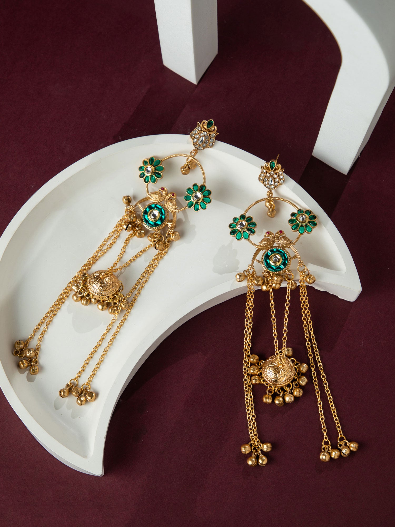 24K Gold Plated Long Kashmiri Peacock Earrings