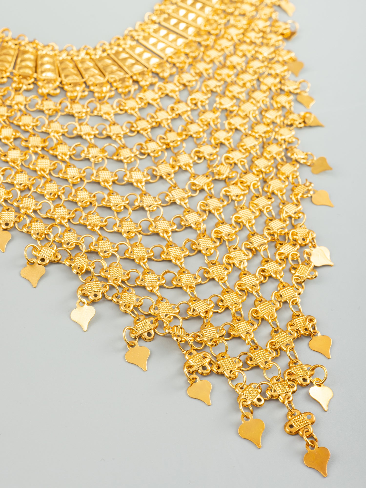 Step into the world of opulence with our 24K Gold Plated Long Necklace, a stunning blend of traditional craftsmanship and contemporary elegance. Perfect for both party and festival wear, this captivating piece is intricately designed by local artisans. The fascinating allure, appealing charm, and graceful aesthetics make it an attractive accessory that adds a touch of sophistication to any occasion. Embrace the artistry of our talented karigars and make a style statement with this exquisite, handcrafted masterpiece. Elevate your style effortlessly with the 24K Gold Plated Long Necklace. Whether it's a festive celebration or a party, let this traditional yet contemporary piece, meticulously crafted by local artisans, be the focal point. Its captivating allure and grace make every moment extraordinary.