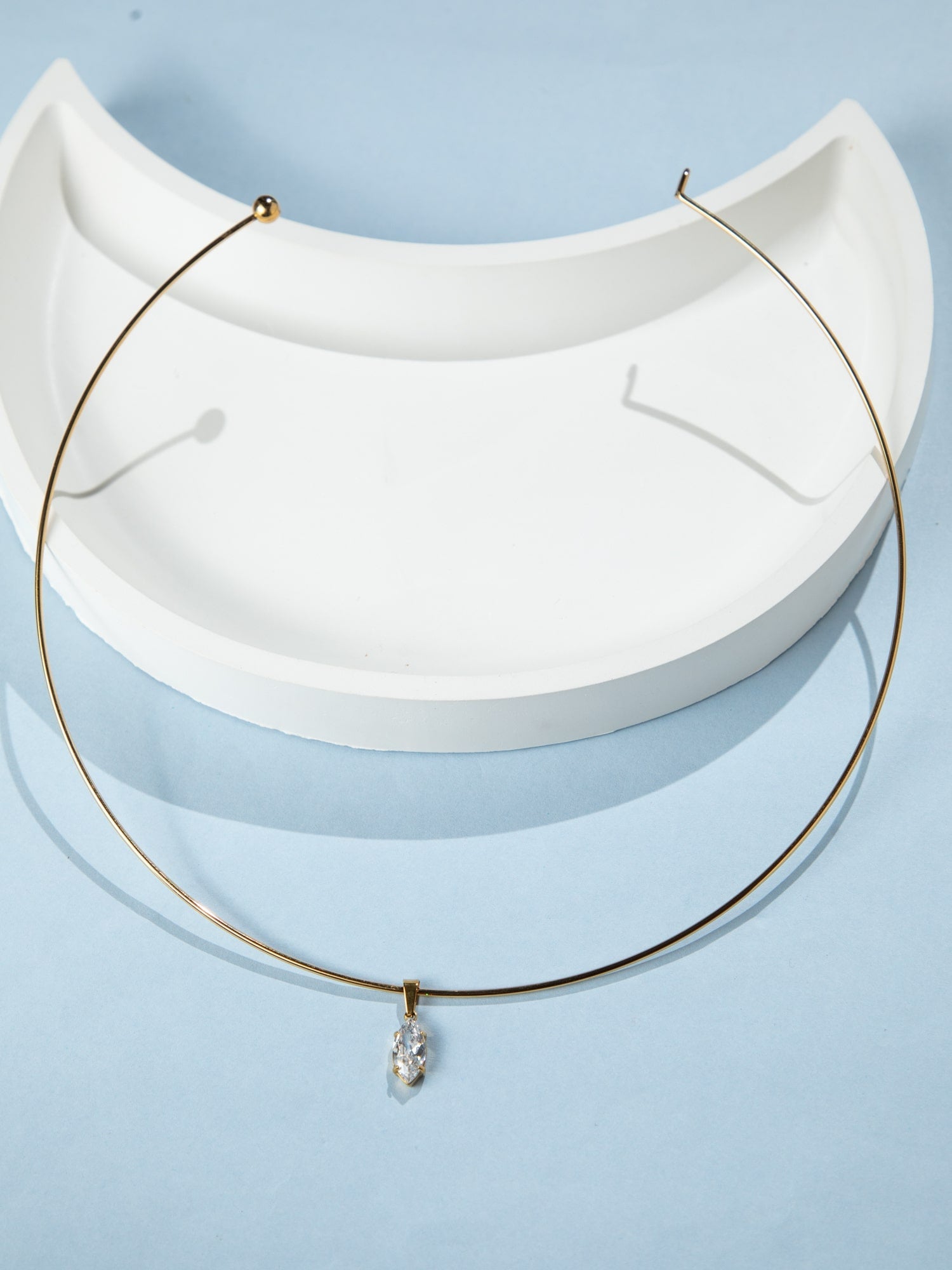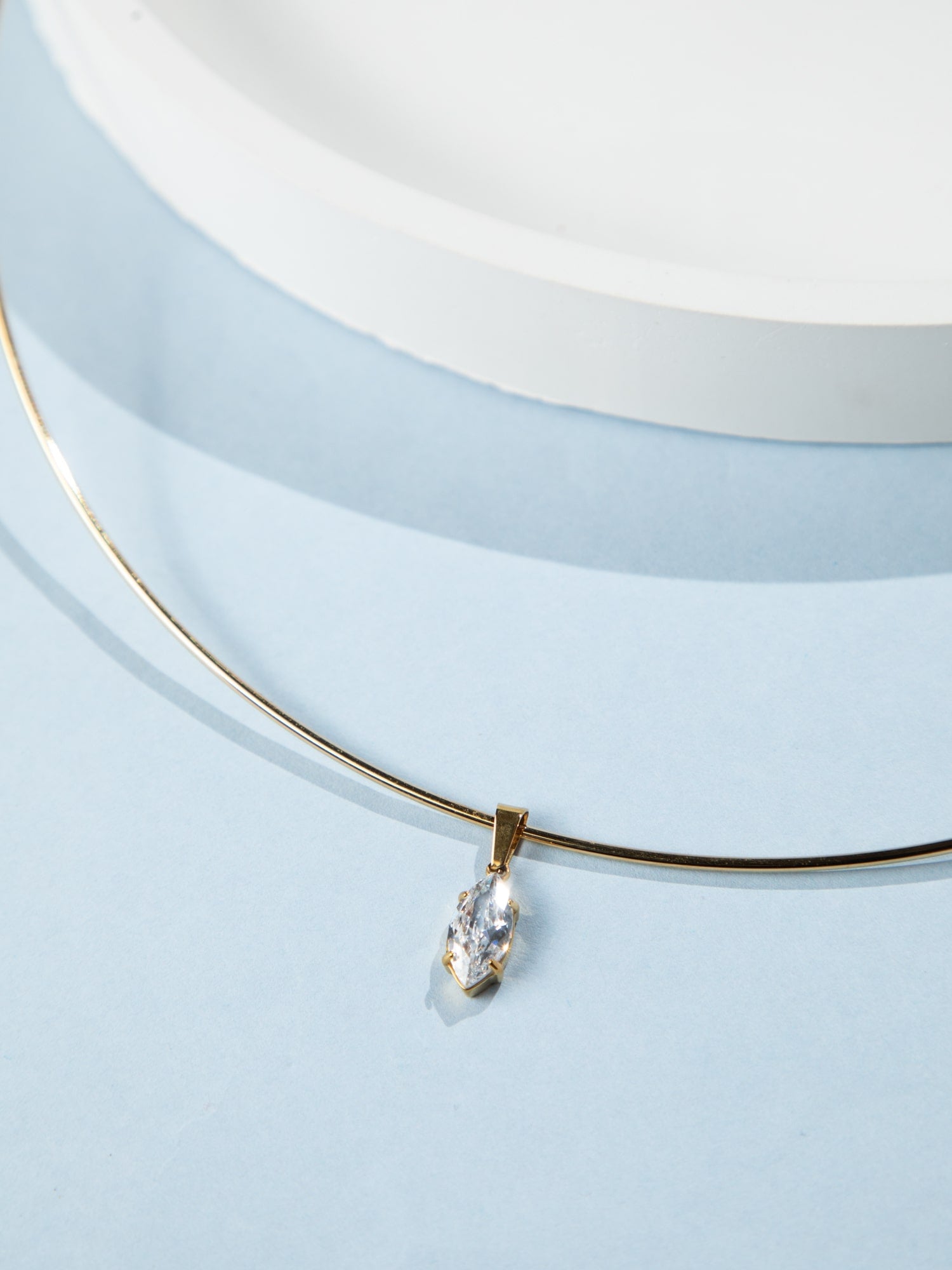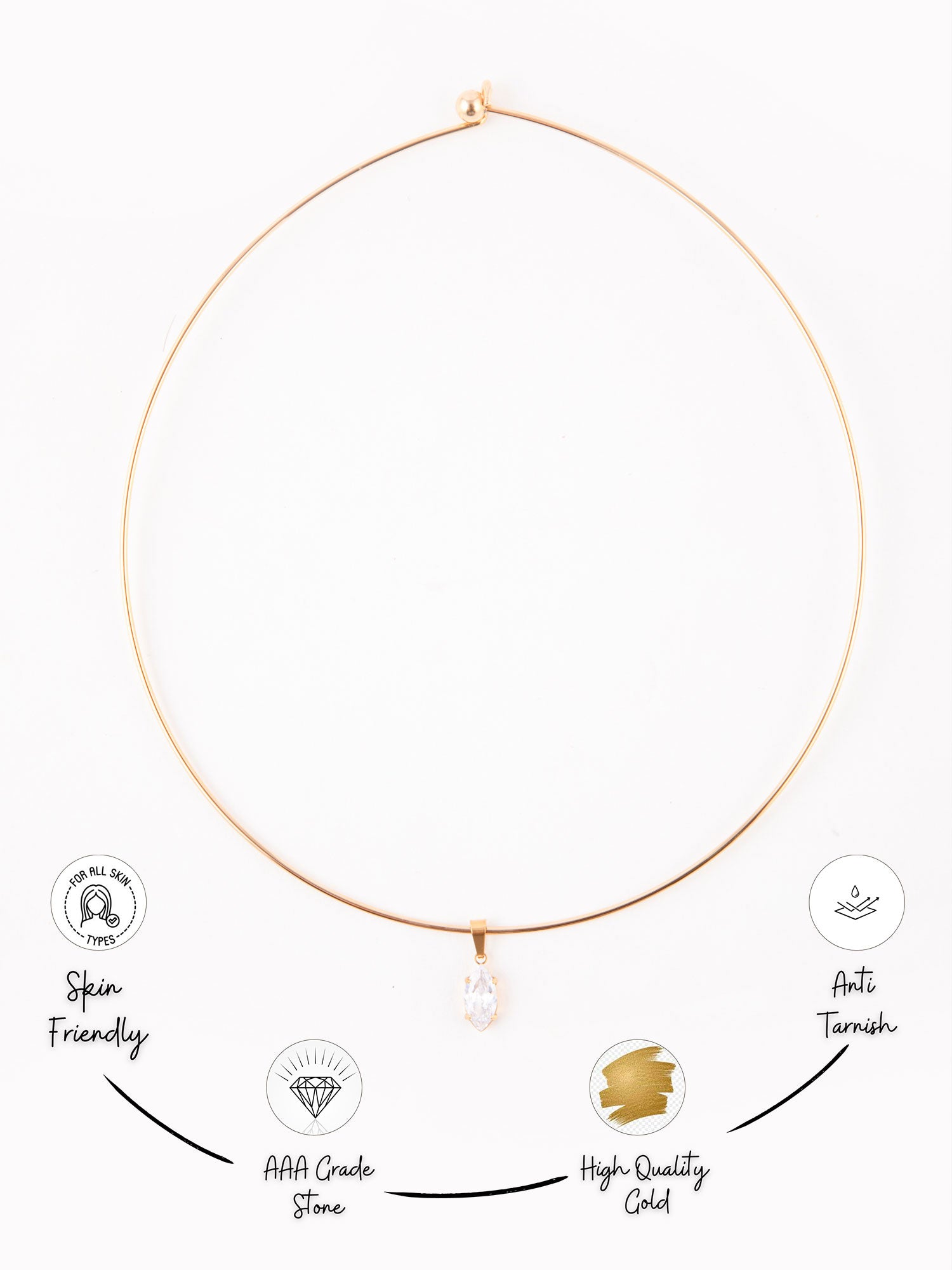 24K Gold Plated Minimalist Necklace with White American Diamond Pendant