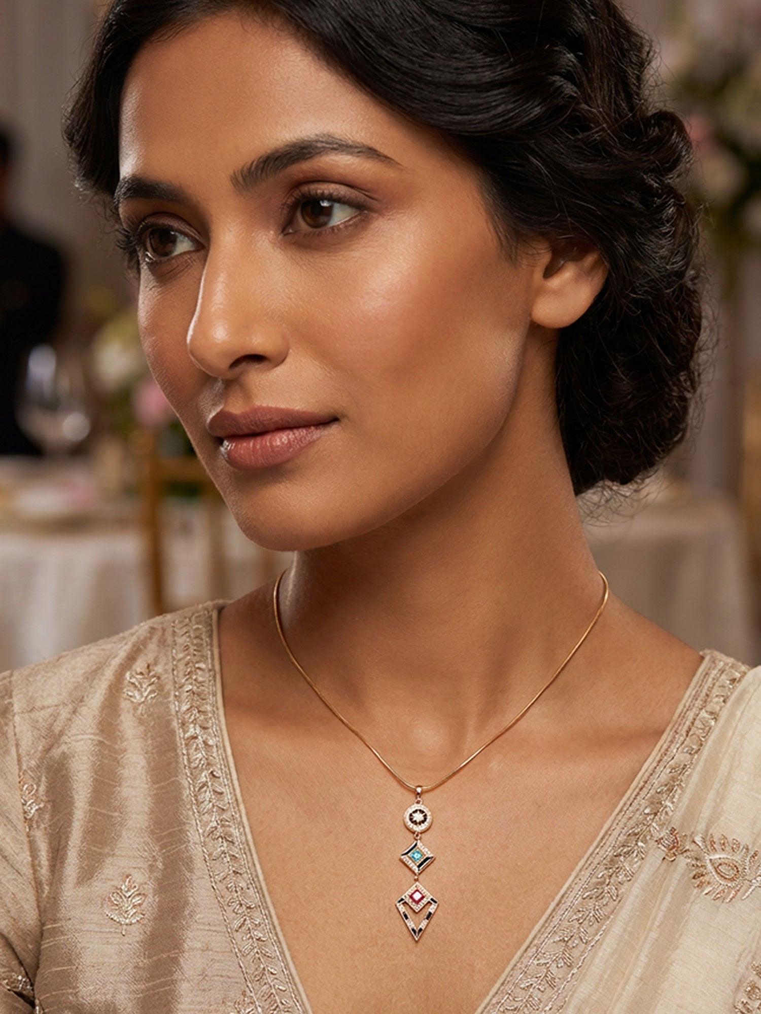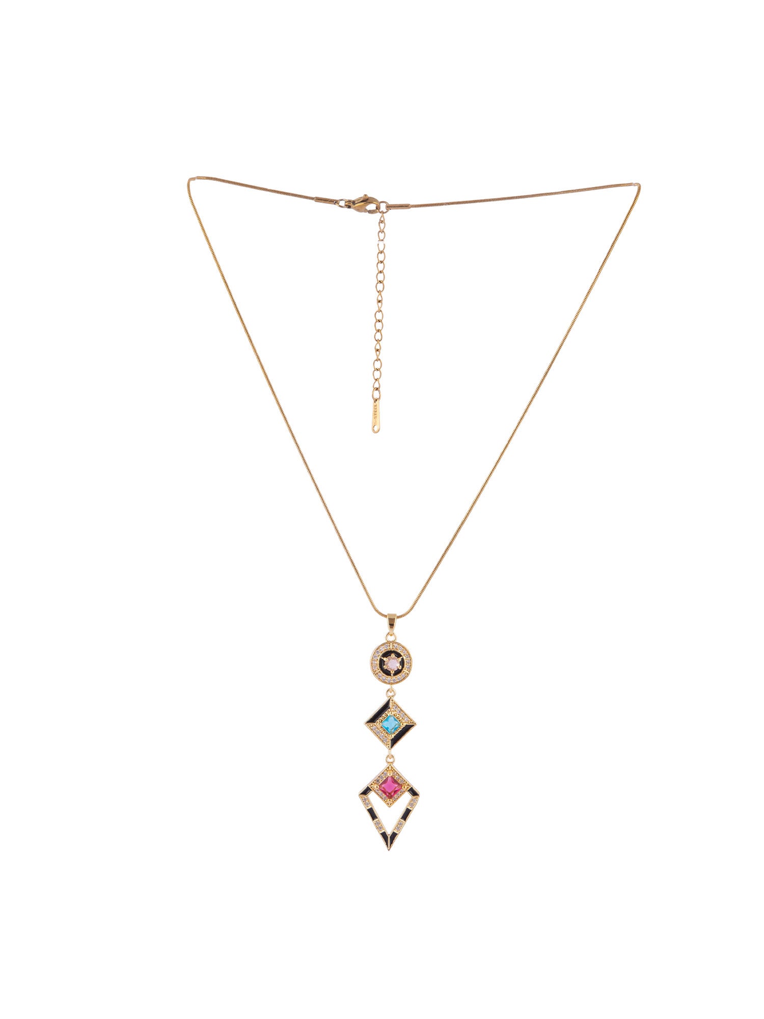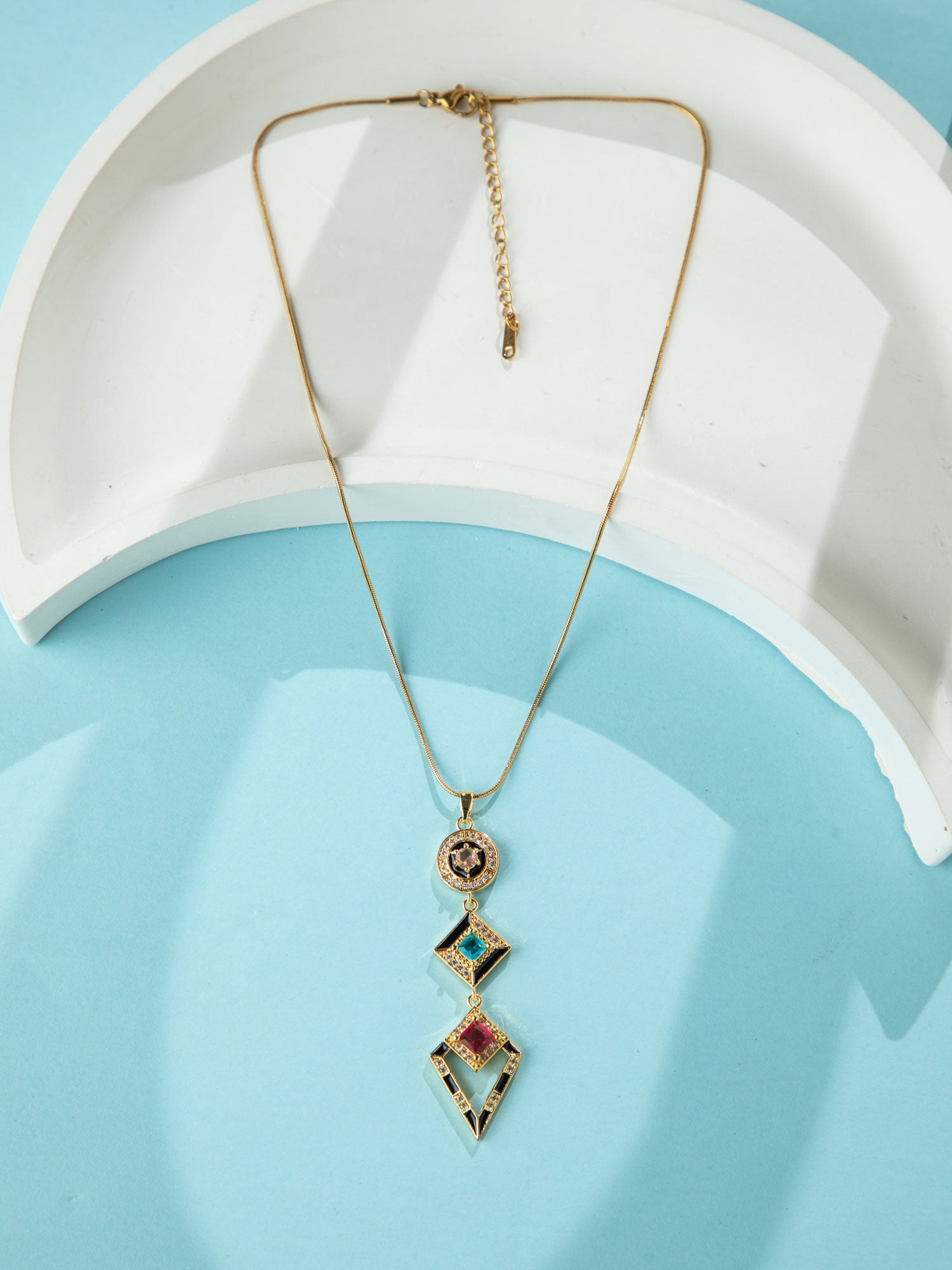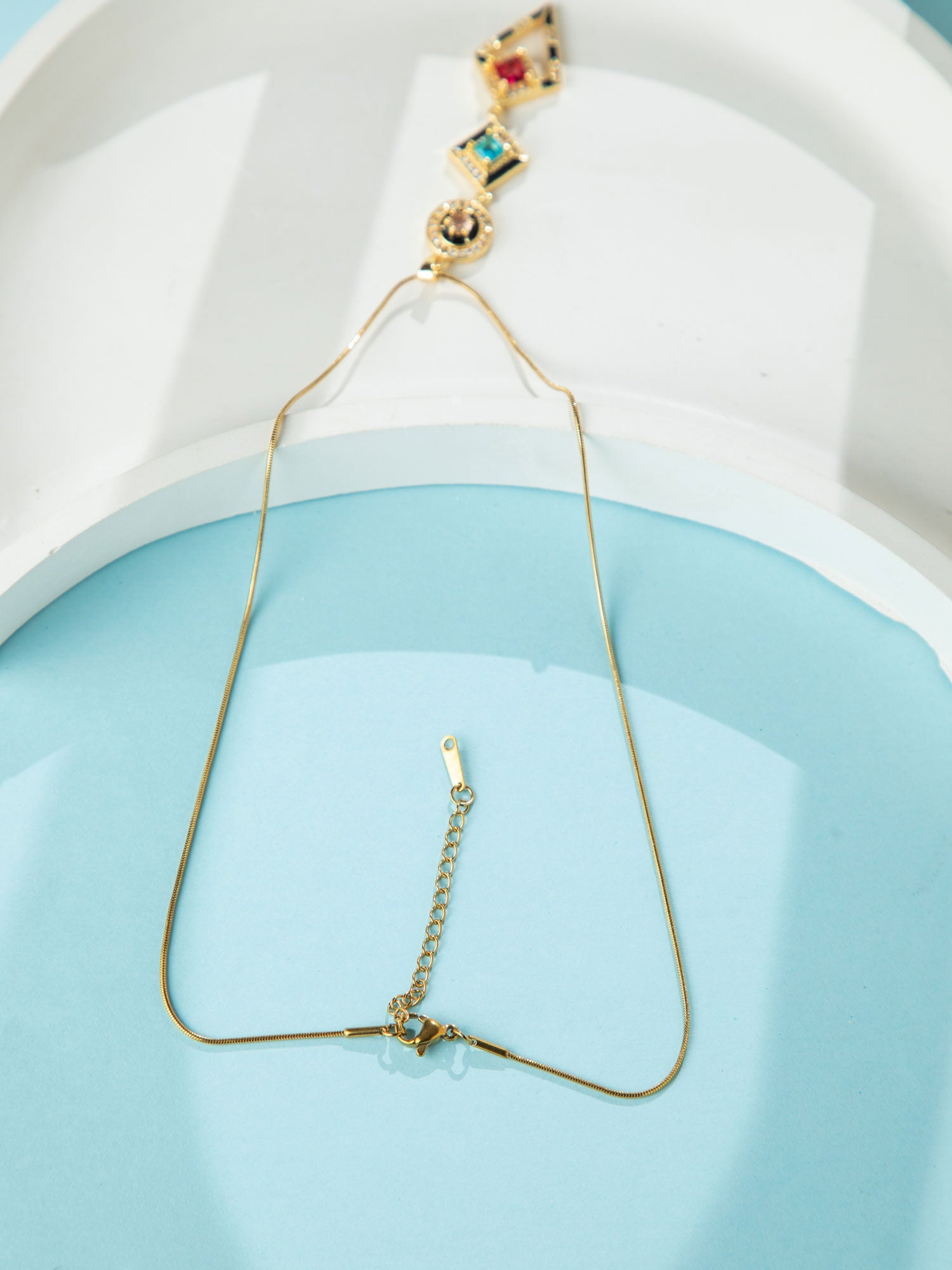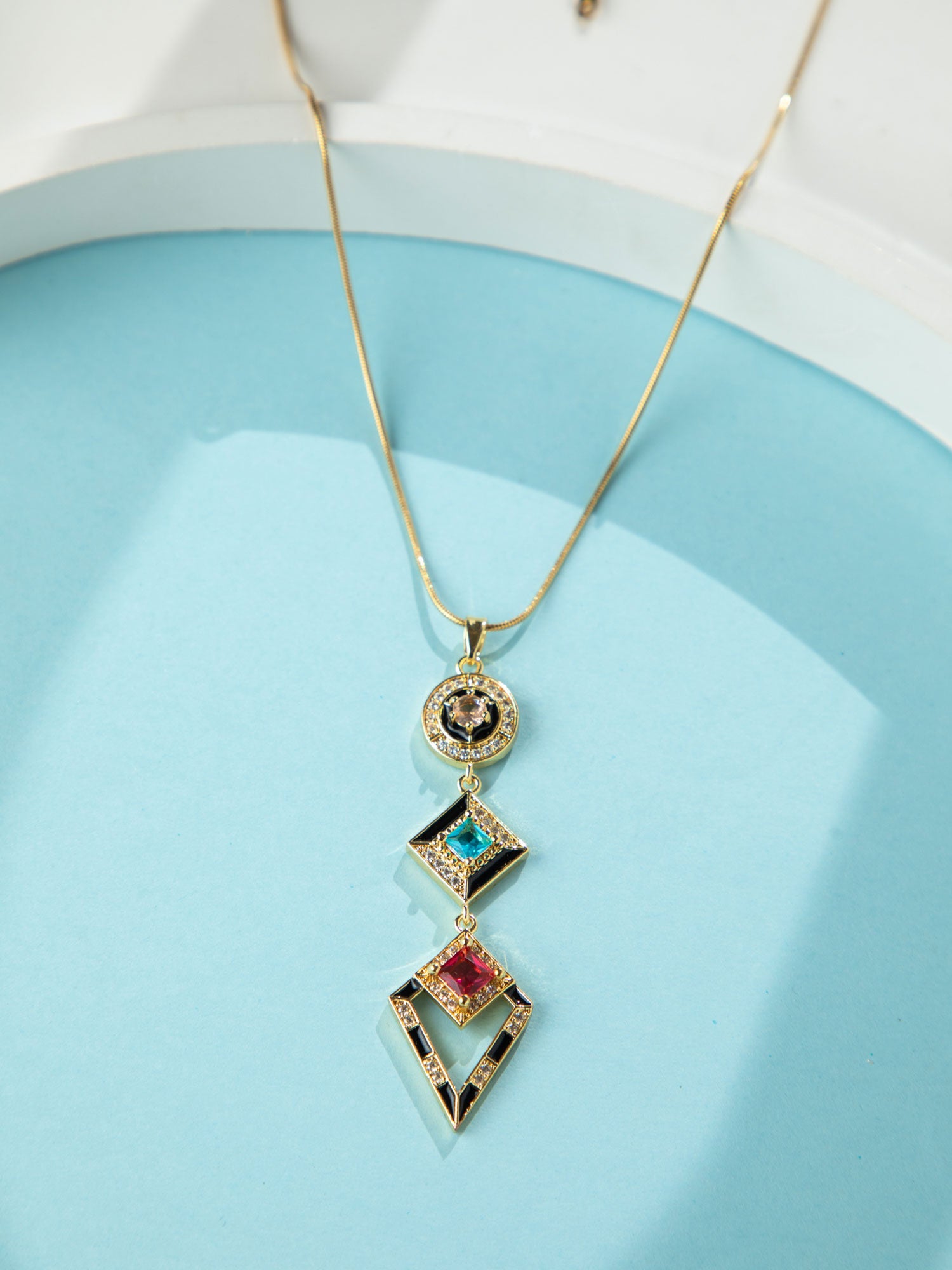 24K Gold Plated Pendant Chain with White, Red and Blue Stones