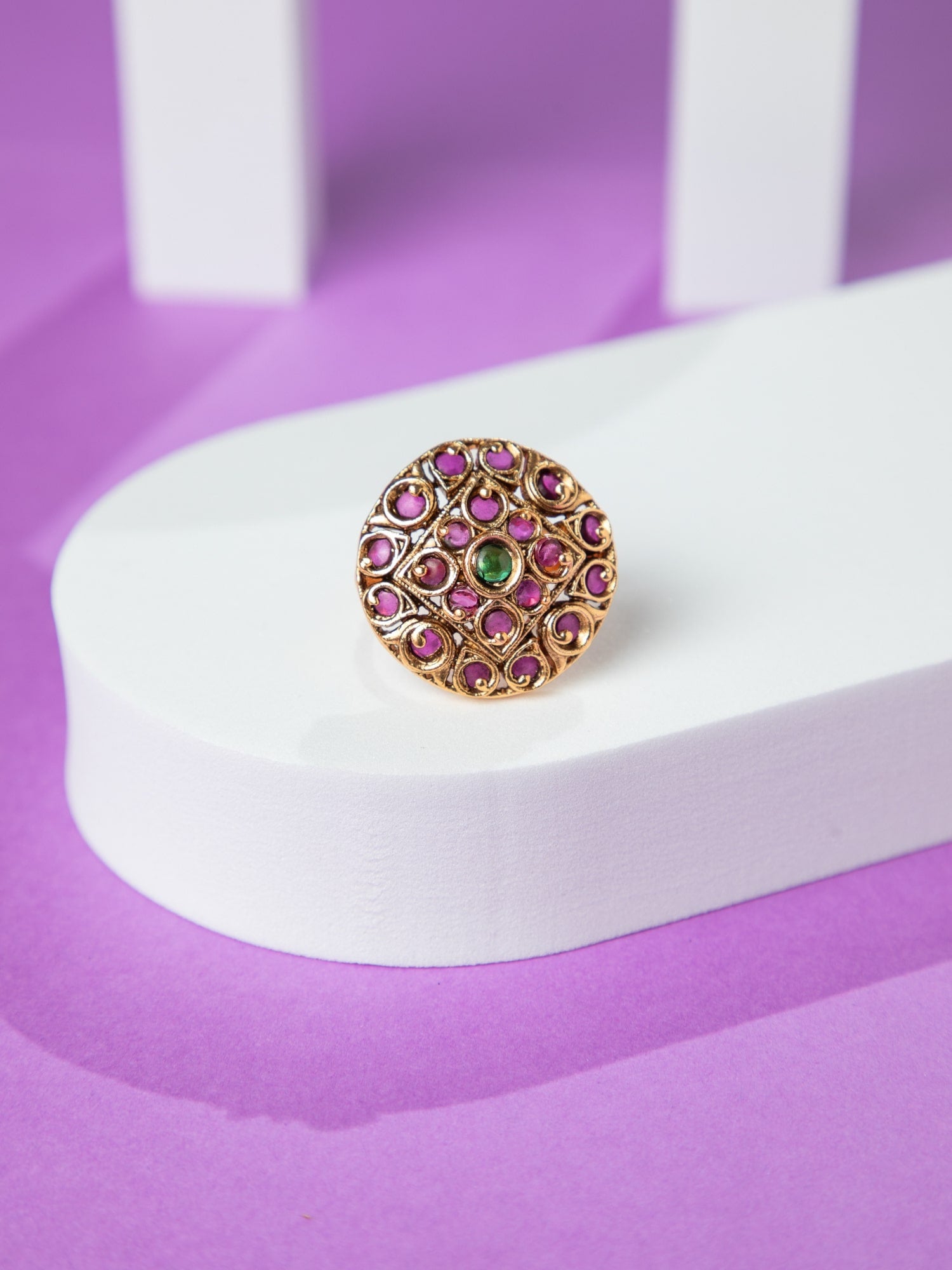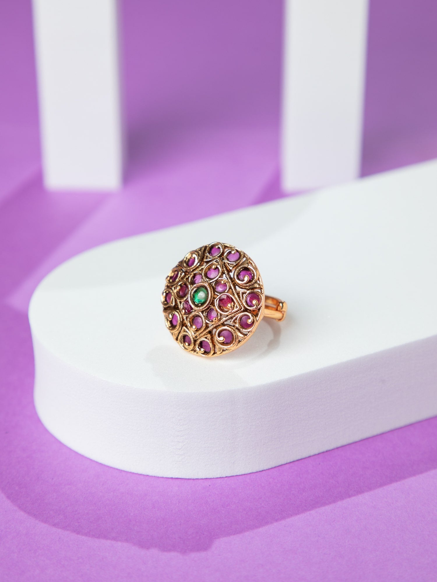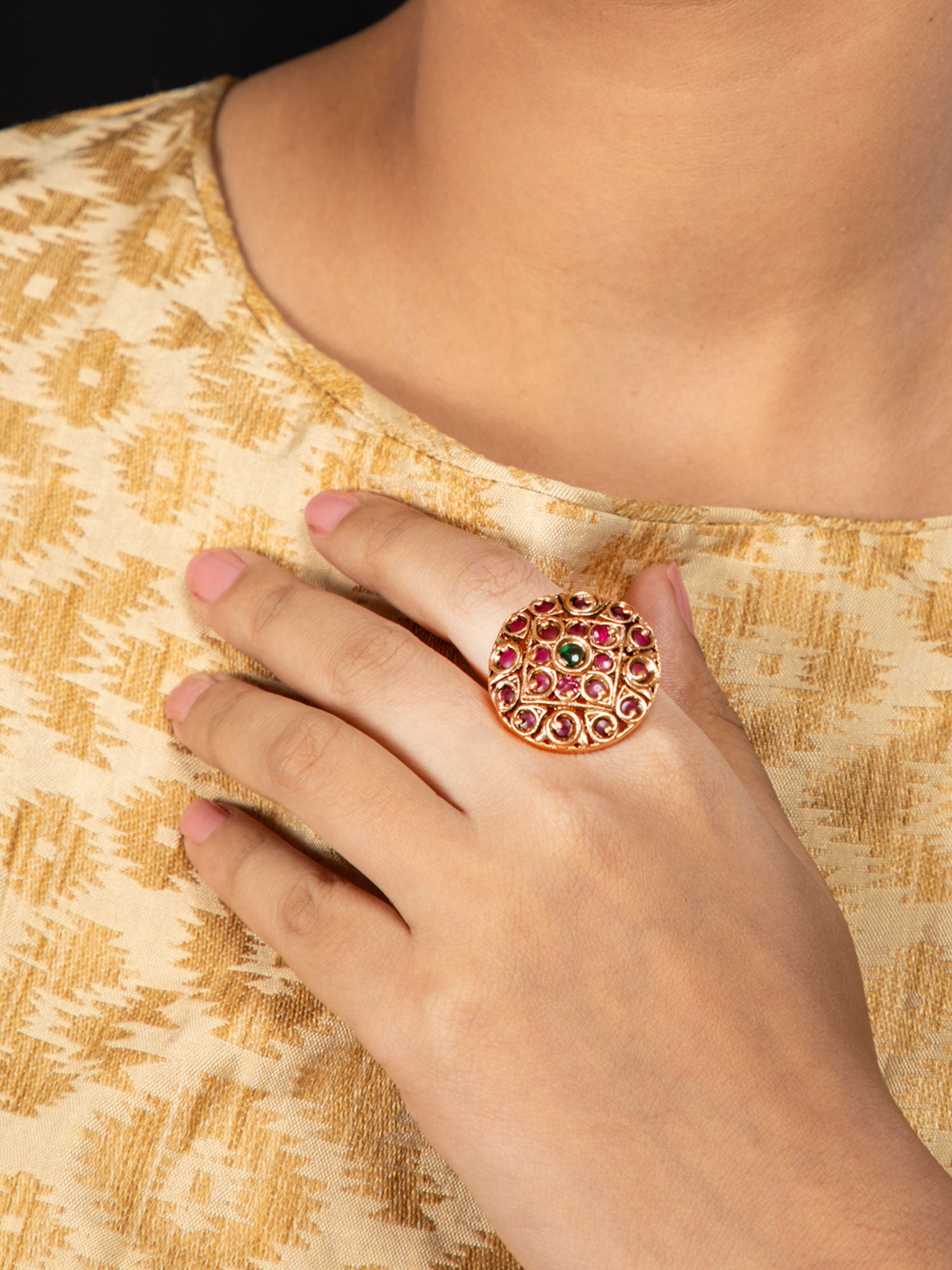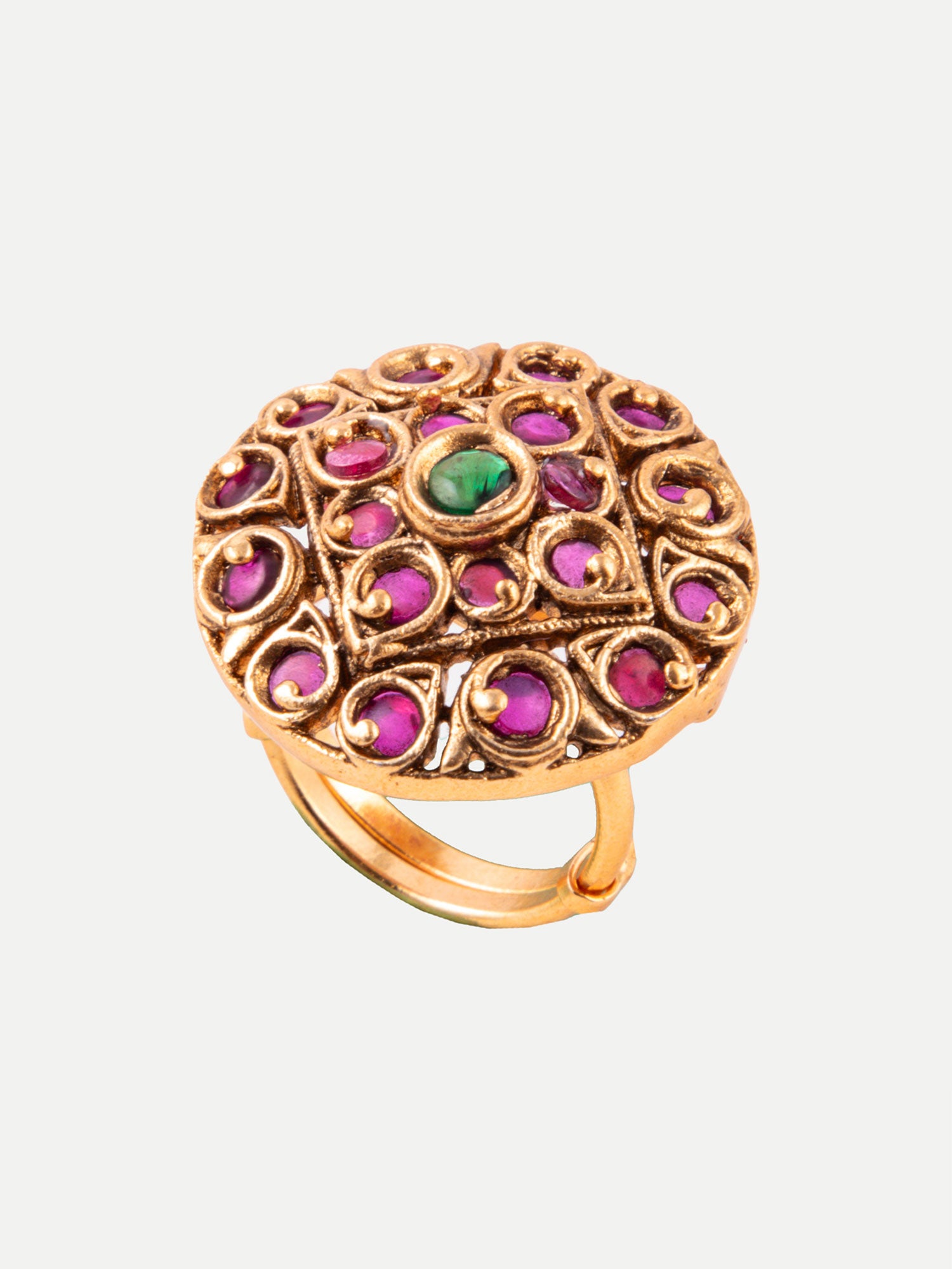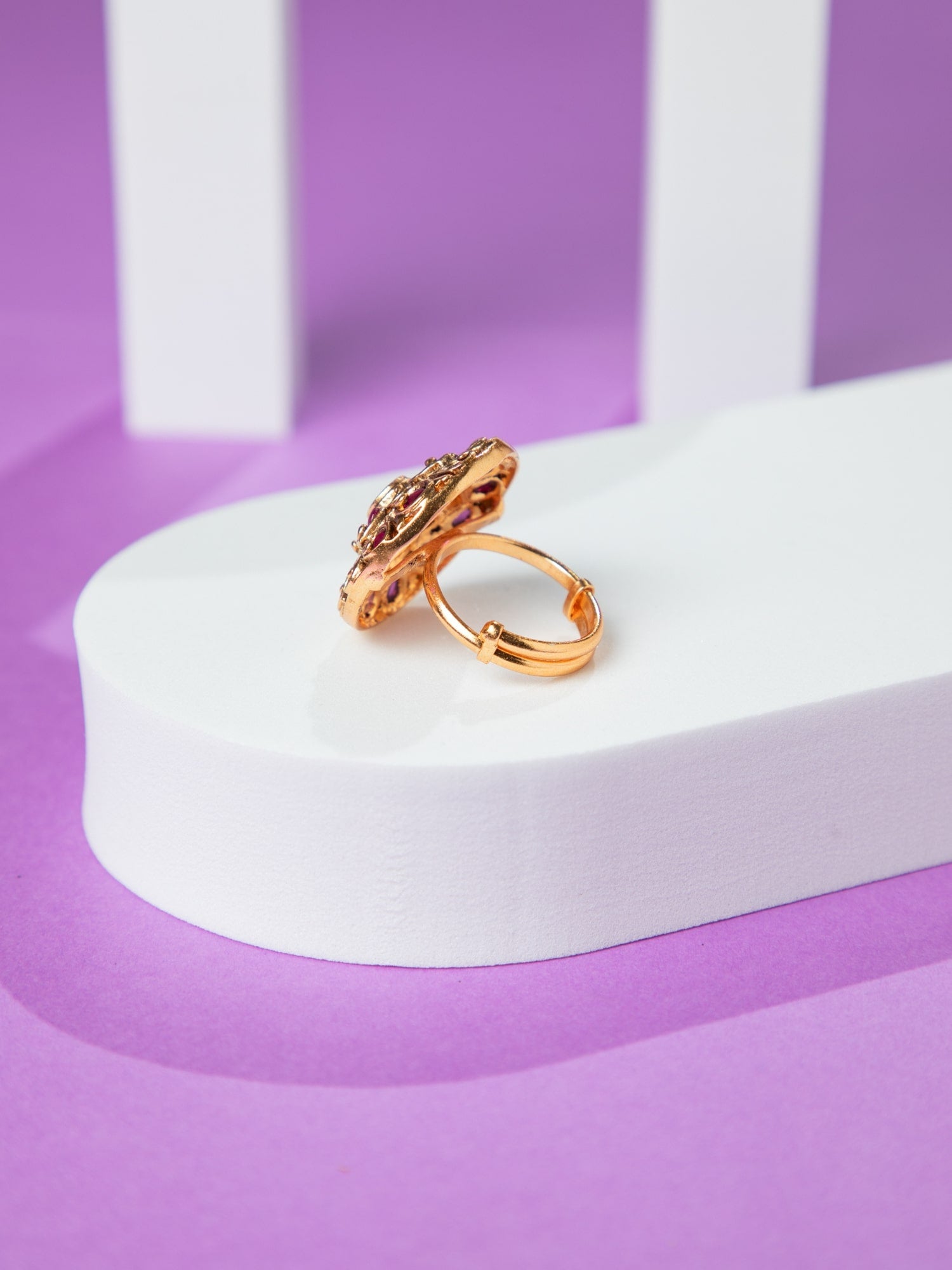 24K Gold Plated Pink and Green Emerald Cocktail Ring