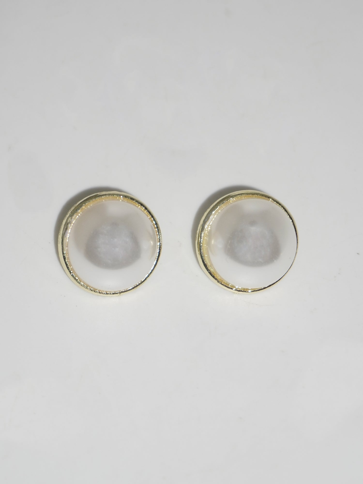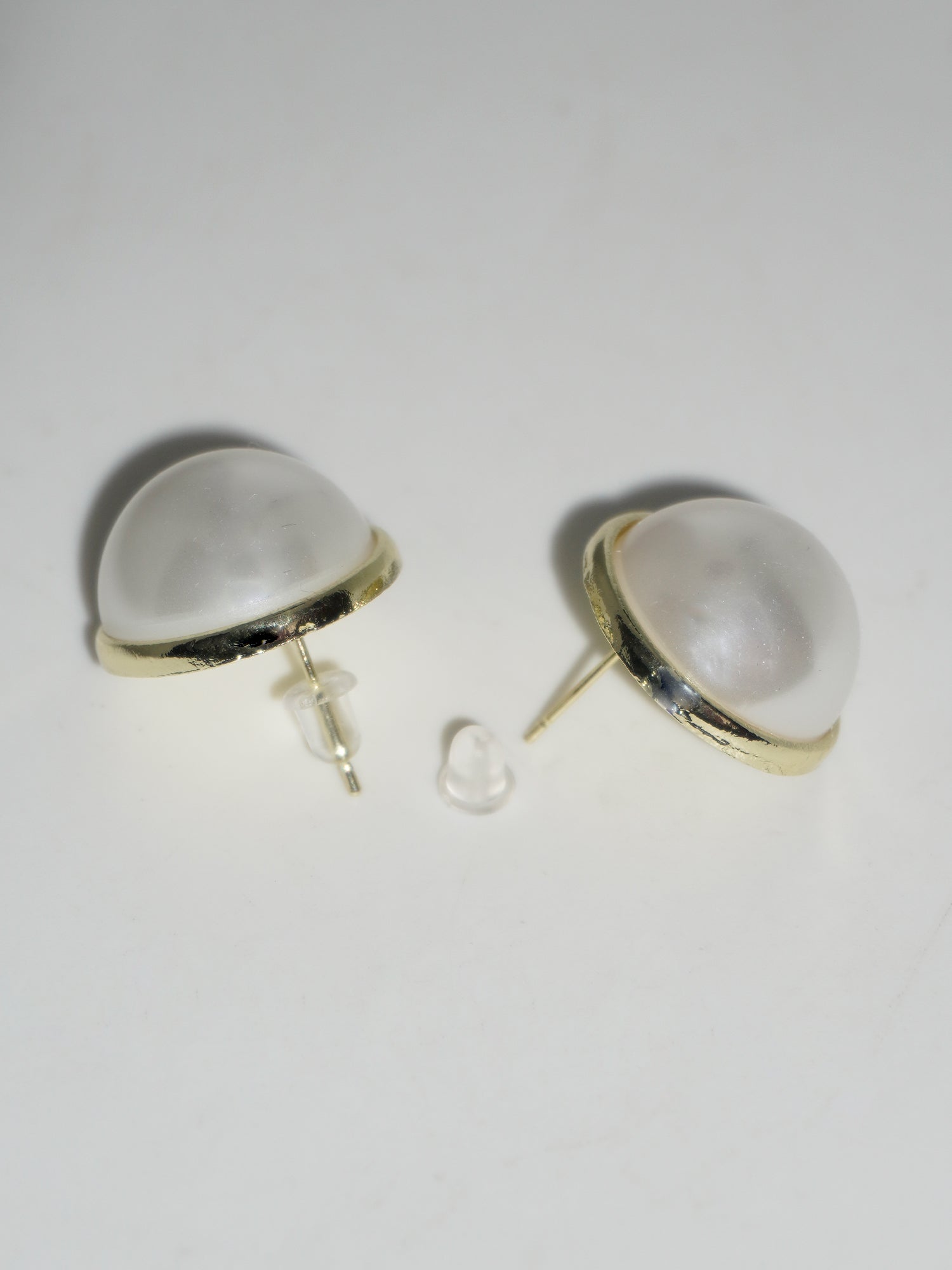Elegant 24K gold-plated white round stud earrings featuring a beautiful large white faux pearl. Handcrafted by local artisans, this modern, must-have design adds a sophisticated touch to any party, festive, or function wear, making it a stunning statement piece.