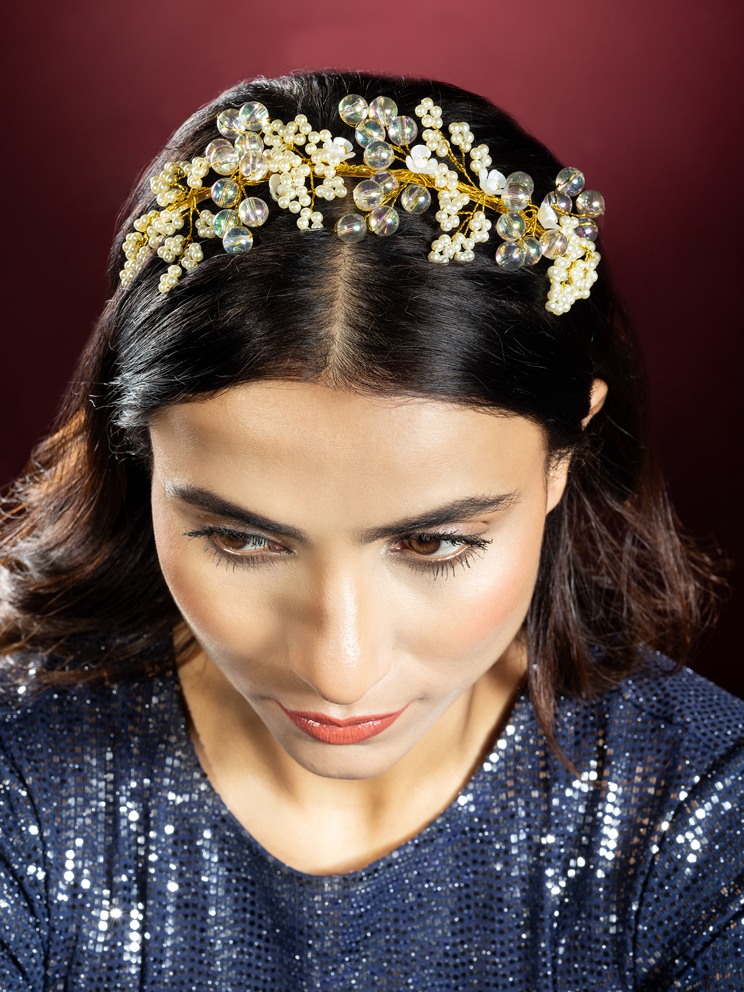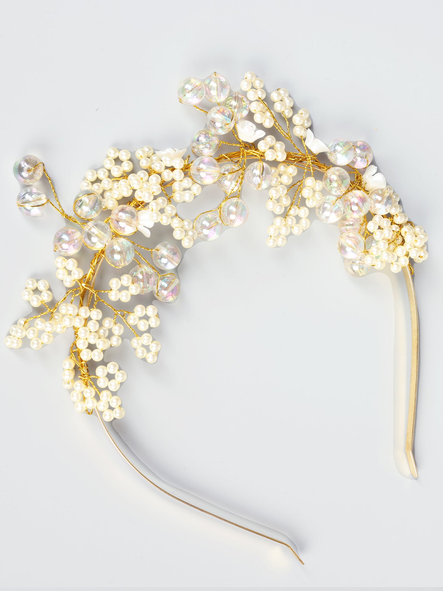 Pair this White Floral Design Pearl Hair Band with a flowing maxi dress for a bohemian-inspired look. Add loose waves to your hair for a romantic touch, completing the ensemble with delicate pearl earrings.