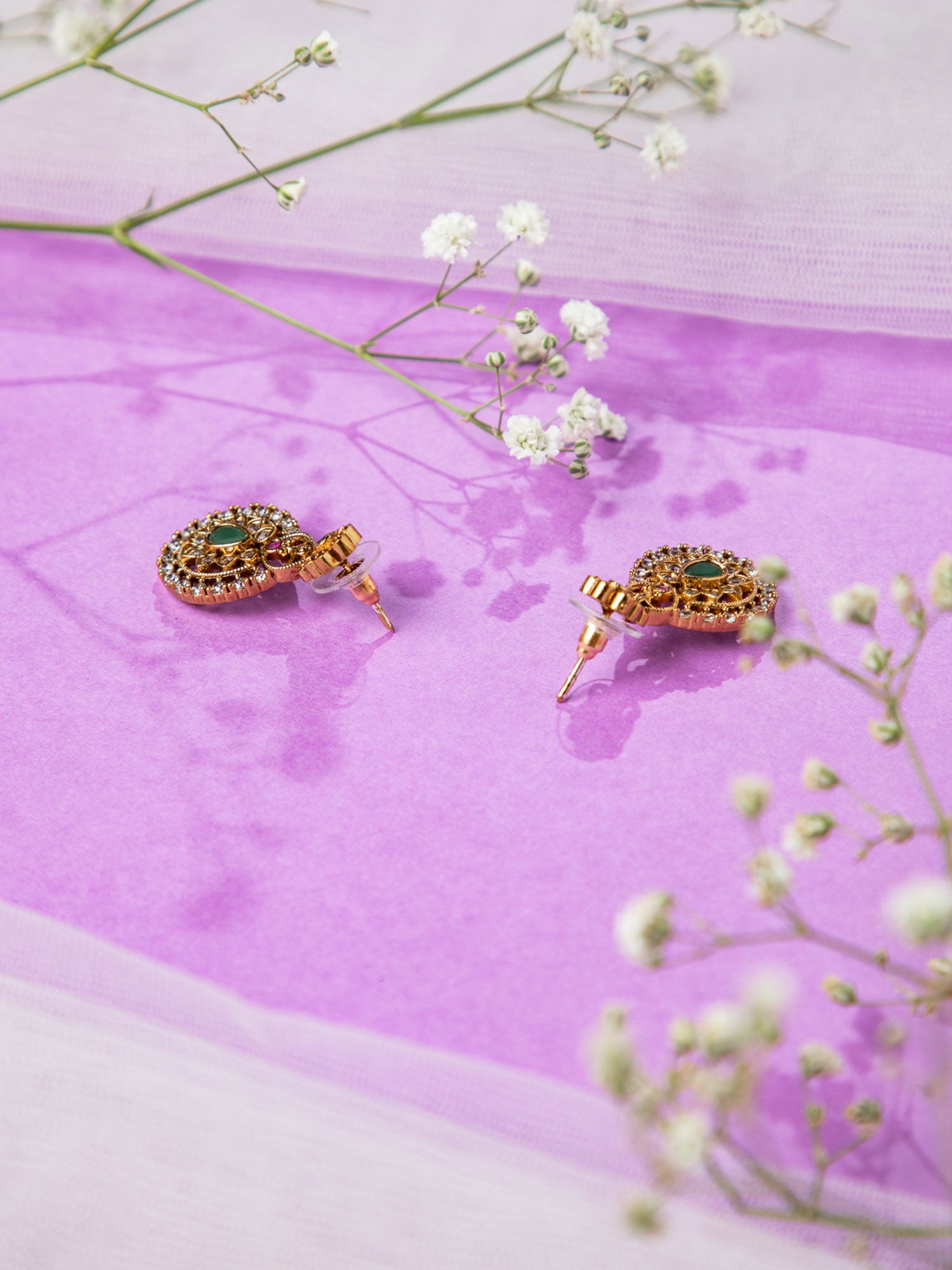 Pair with a royal blue or deep green outfit to complement the rich hues of the stones, creating an elegant and regal look.
