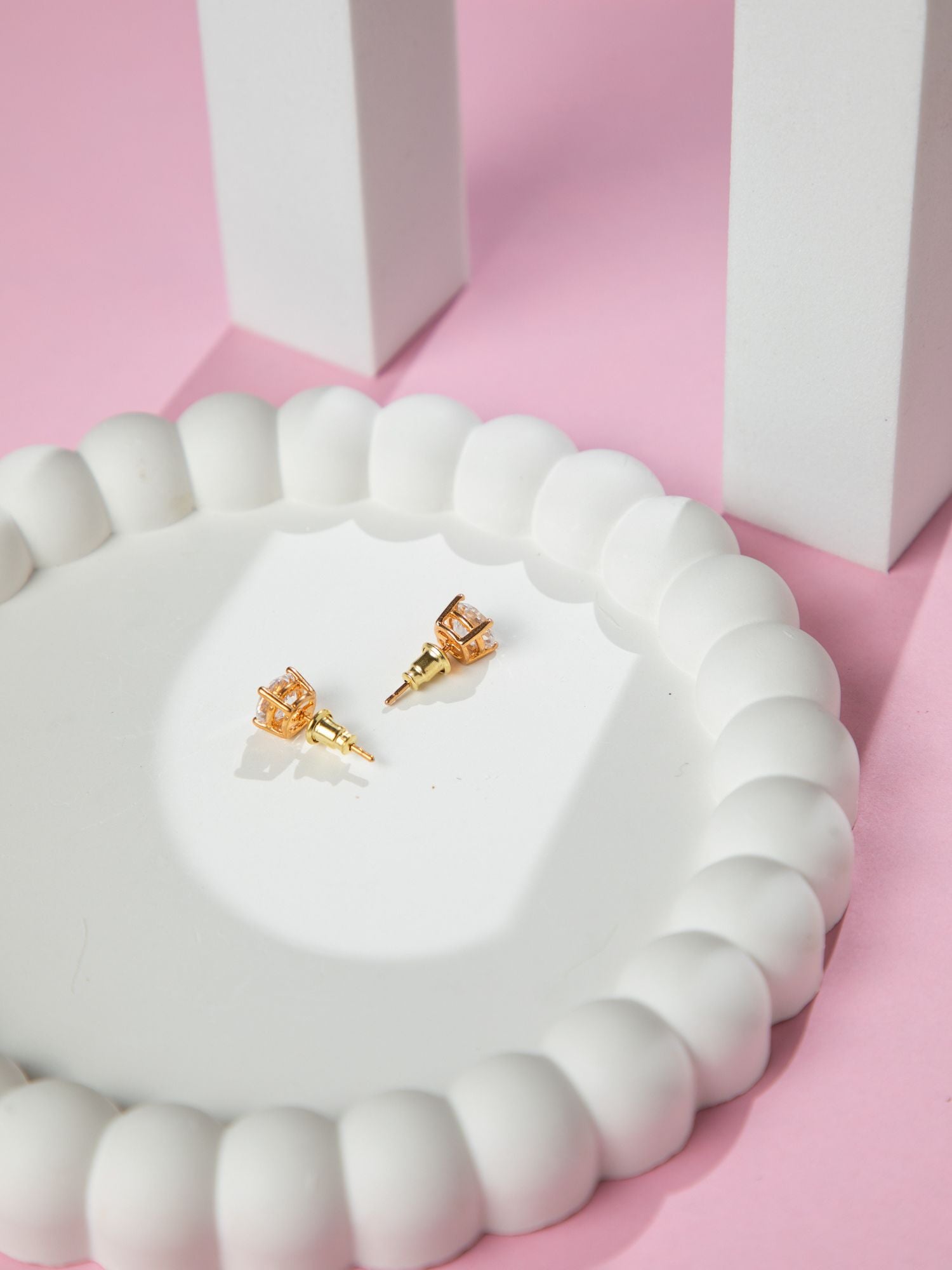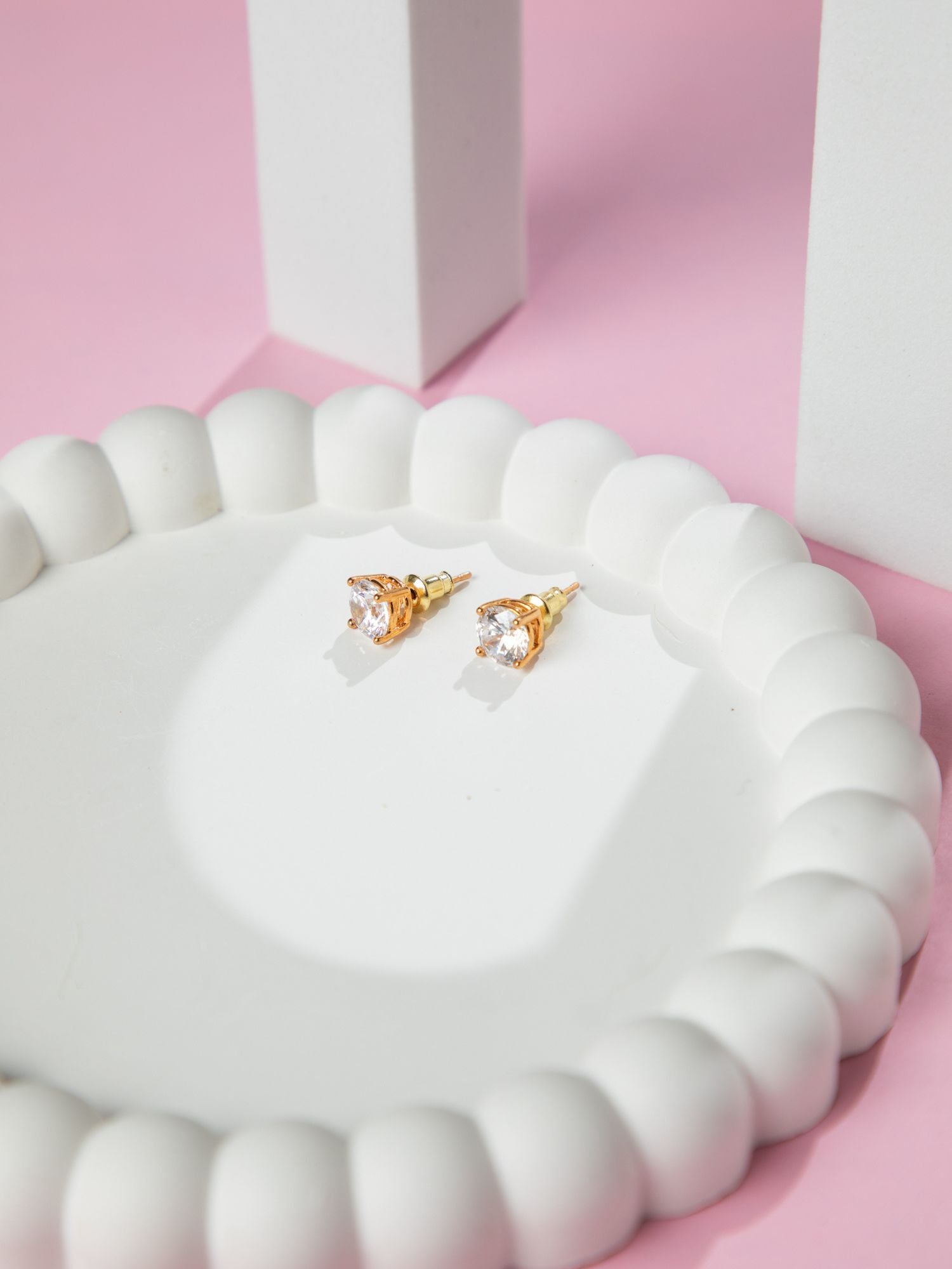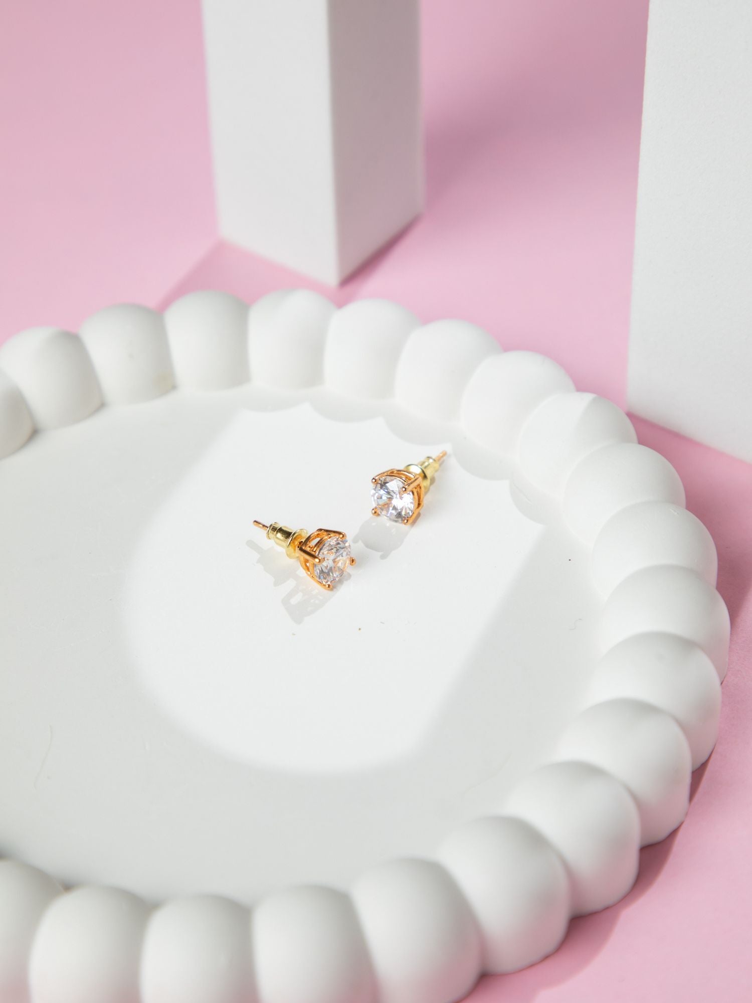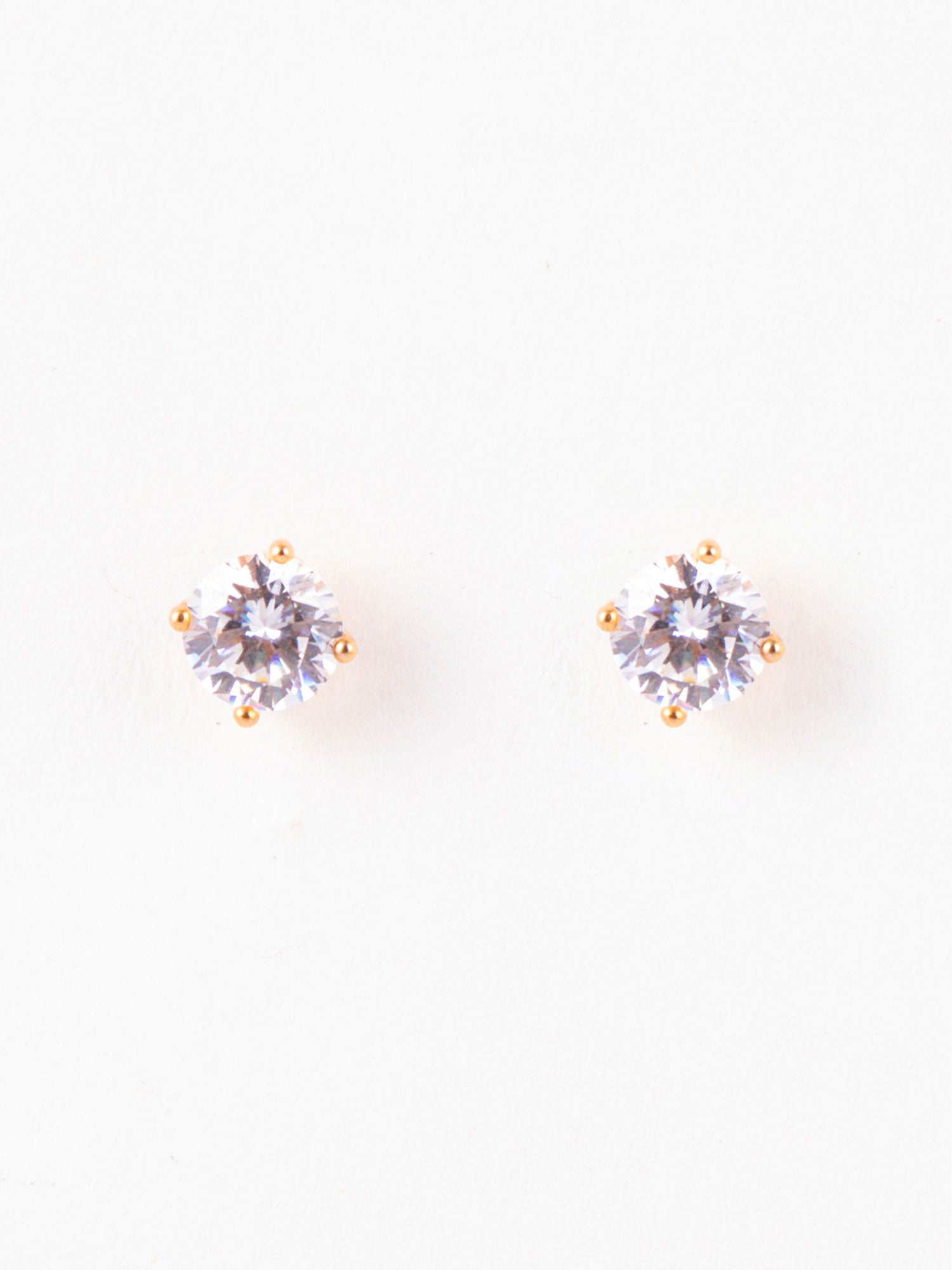 24K Gold Plated White American Diamond Stud Earrings