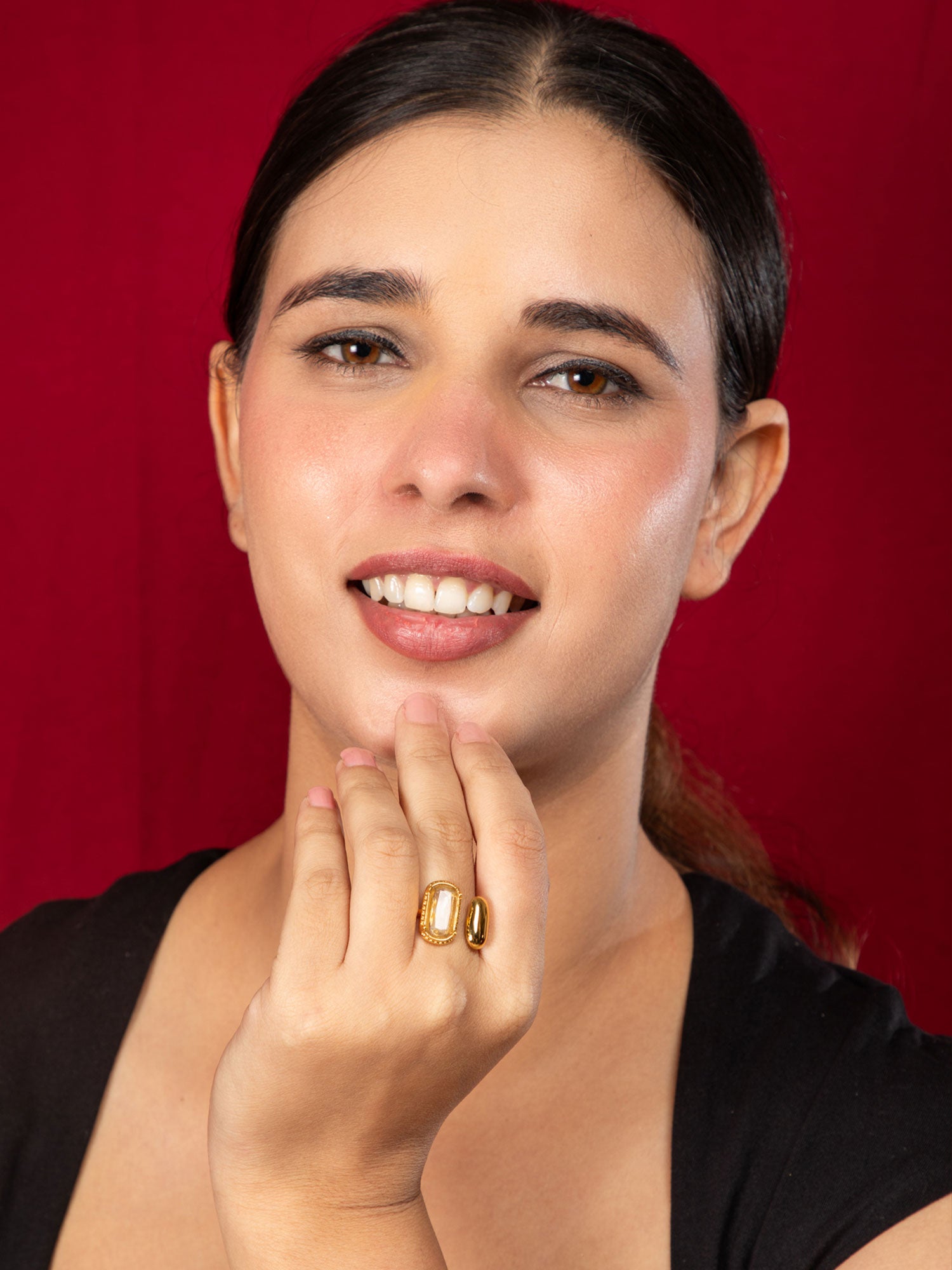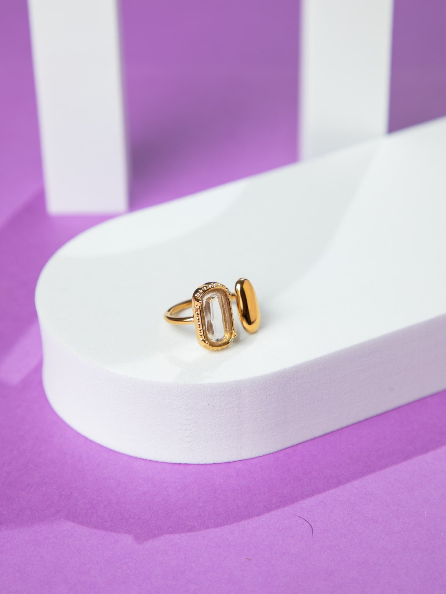 24K Gold Plated White Stone Studded Ring