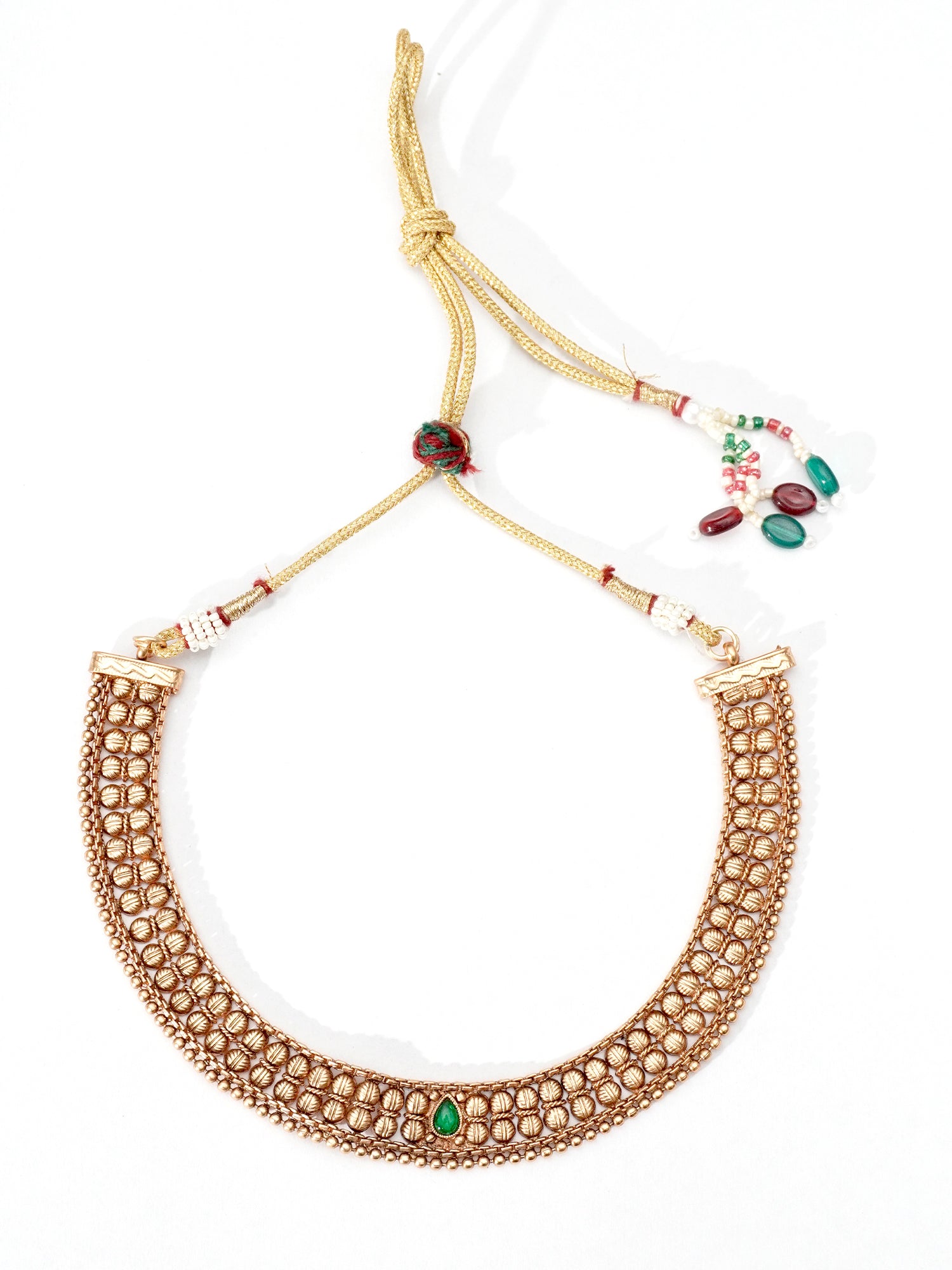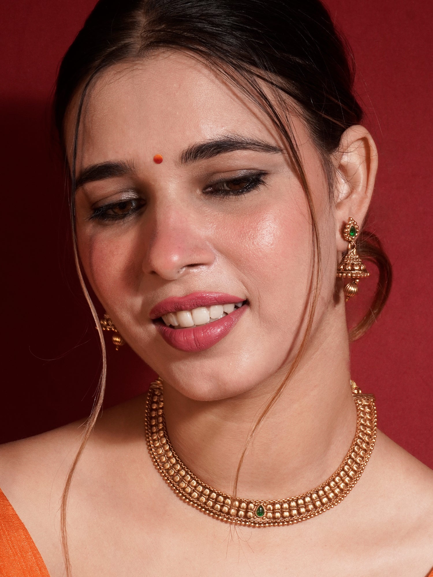 Discover timeless elegance with Niscka's antique 24K gold plated jewelry set, featuring exquisite emerald accents. This stunning set showcases a beautifully intricate design that reflects classic craftsmanship, making it a perfect choice for those who appreciate vintage charm. The rich 24K gold plating enhances the overall allure, ensuring a luxurious finish that lasts. The vibrant emeralds add a pop of color, bringing a sense of sophistication and elegance to any outfit. Ideal for weddings, formal events, or special occasions, this jewelry set is not just an accessory; it's a statement piece that embodies grace and style. Elevate your collection with this enchanting set that beautifully blends tradition with modern elegance.