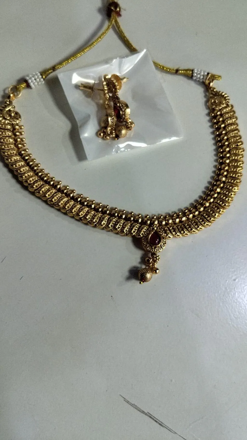Antique Gold Plated Pink Stone Choker Necklace Set