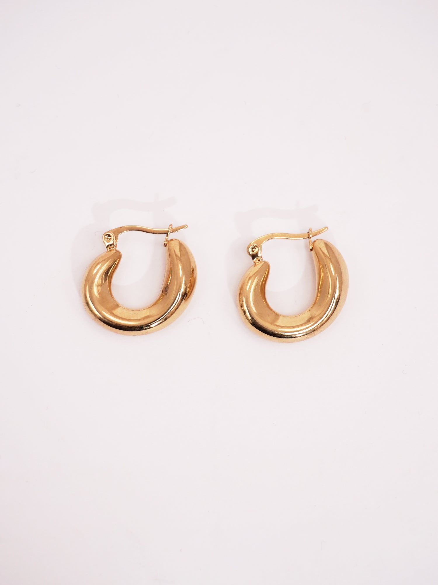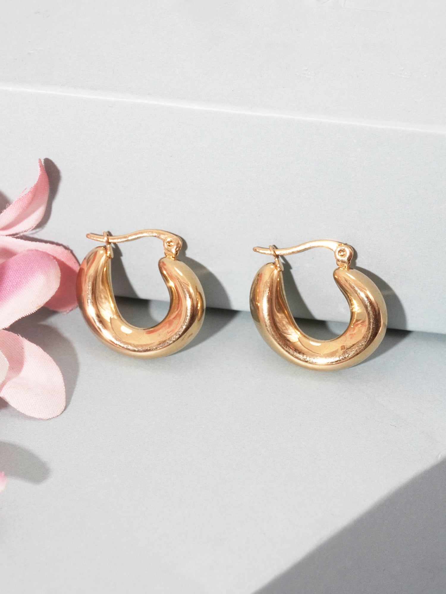 For a timeless look, pair the gold-plated hoops with a classic white button-down shirt and high-waisted jeans for a chic, casual outfit. For a night out, wear them with a sleek black dress and a bold lip color to add sophistication. You can also layer them with other earrings in a curated ear look to enhance their demi-fine charm. Keep your hair in a simple updo or loose waves to let the hoops shine as the statement piece of your ensemble.