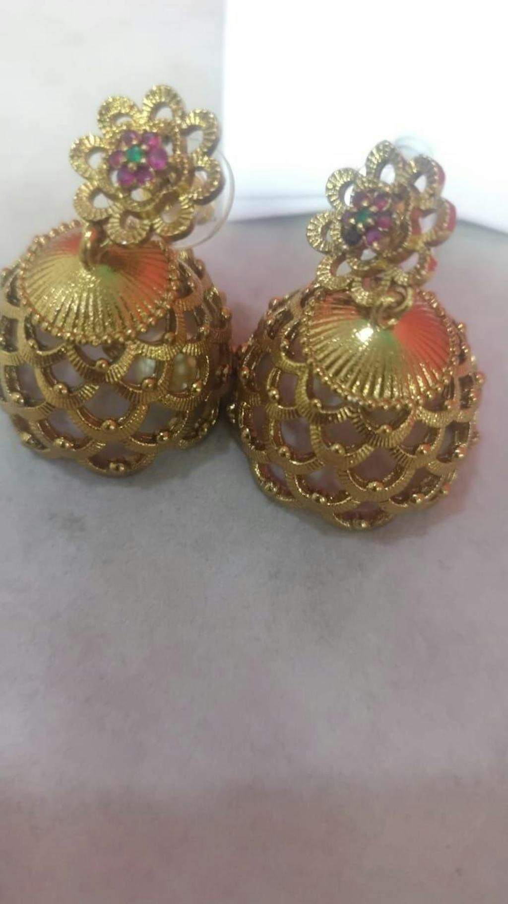 Wedding jewelry gold plated jhumka earrings with floral detailing