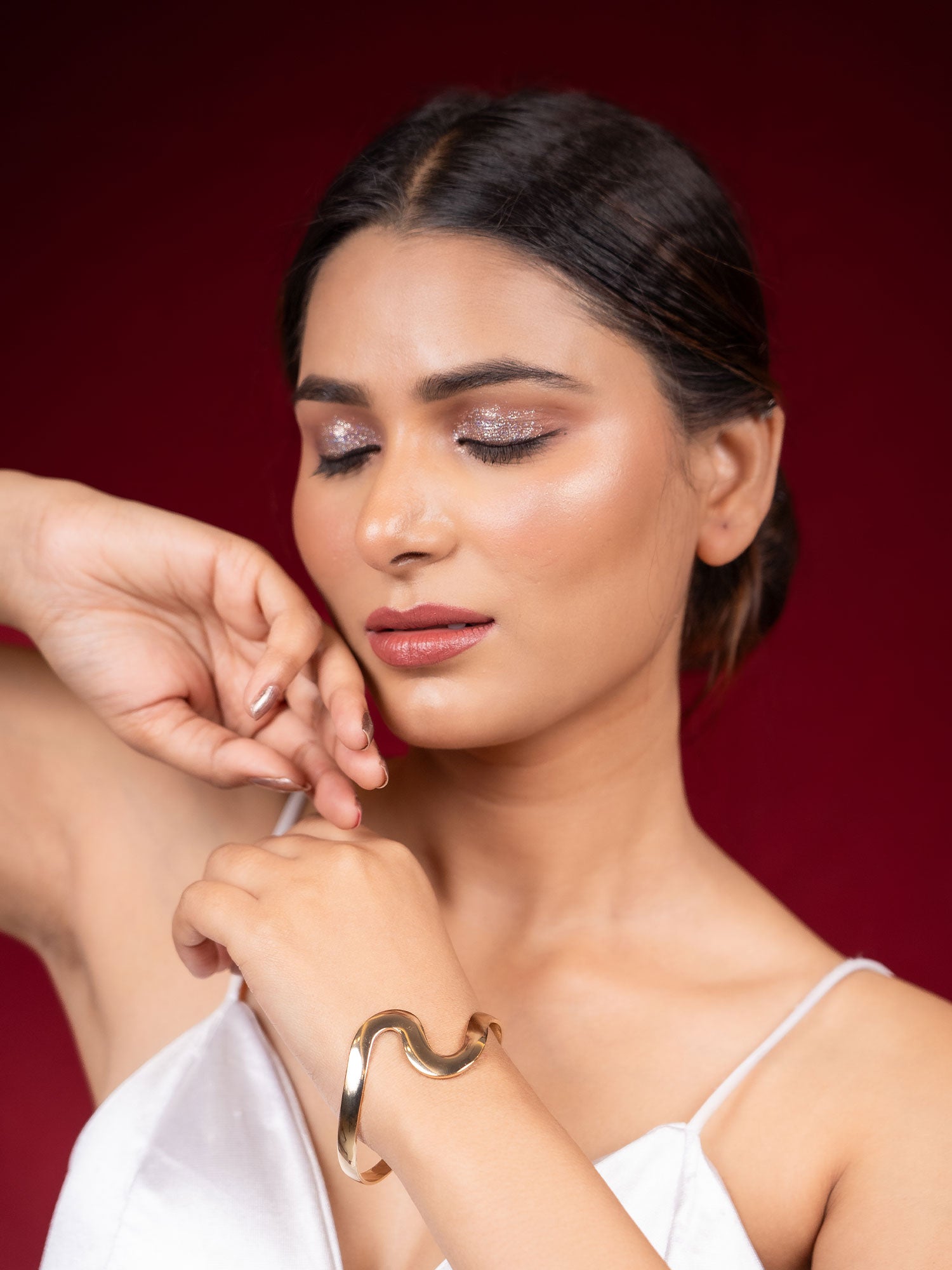 Let this 18K gold-plated statement bracelet shine by pairing it with a sleek black dress or a chic monochrome outfit. For a glamorous look, complement it with matching gold accessories and a bold red lip. If layering, mix it with delicate bangles for a balanced yet eye-catching stack.