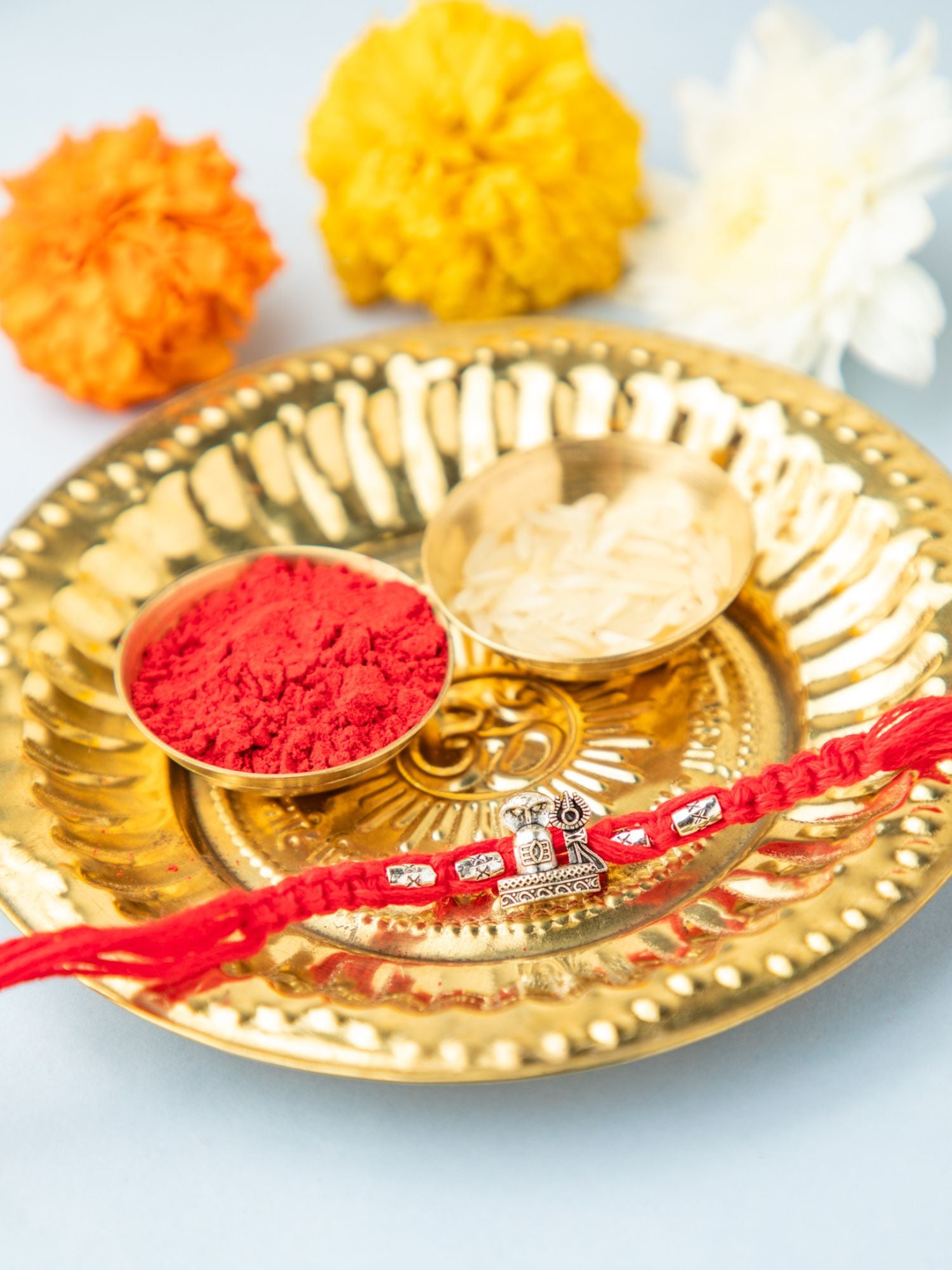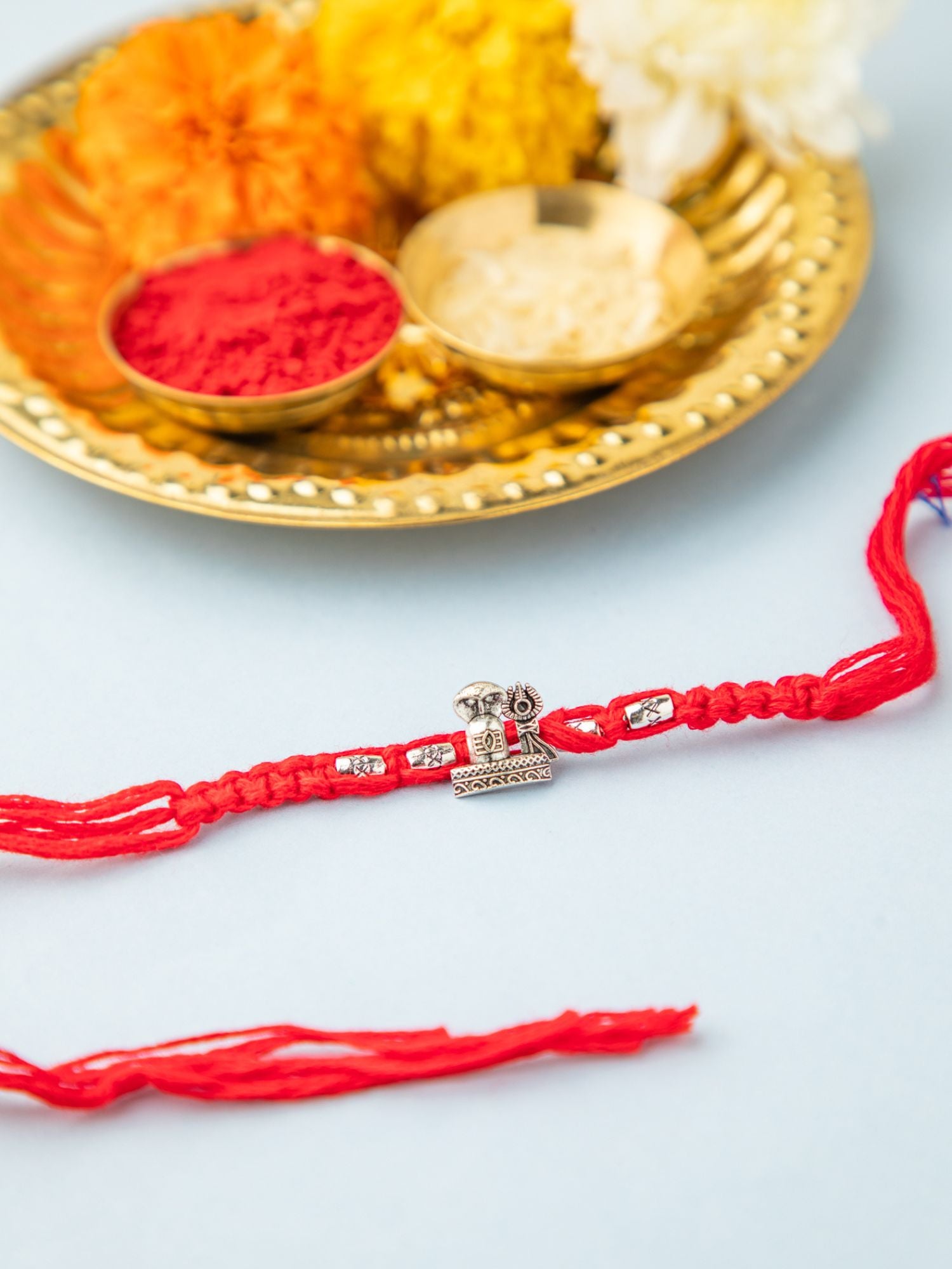 Divine Silver Shivling Rakhi with Red Thread & Silver Beads