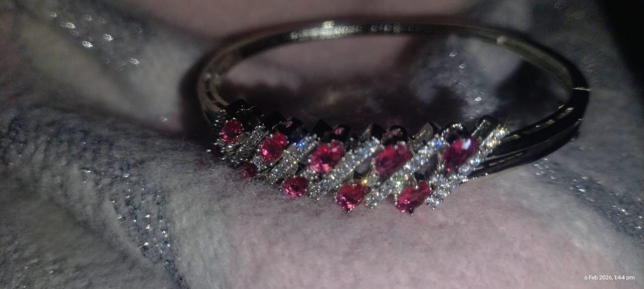 Let this silver-plated pink zircon bracelet shine by pairing it with pastel outfits or floral prints for a soft, feminine look. For a more elegant touch, complement it with American diamond earrings and a sleek clutch. It also pairs beautifully with traditional attire like a pink or silver-toned saree or lehenga, adding a refined sparkle to your ensemble. Keep other accessories minimal to let the bracelet be the focal point of your look.