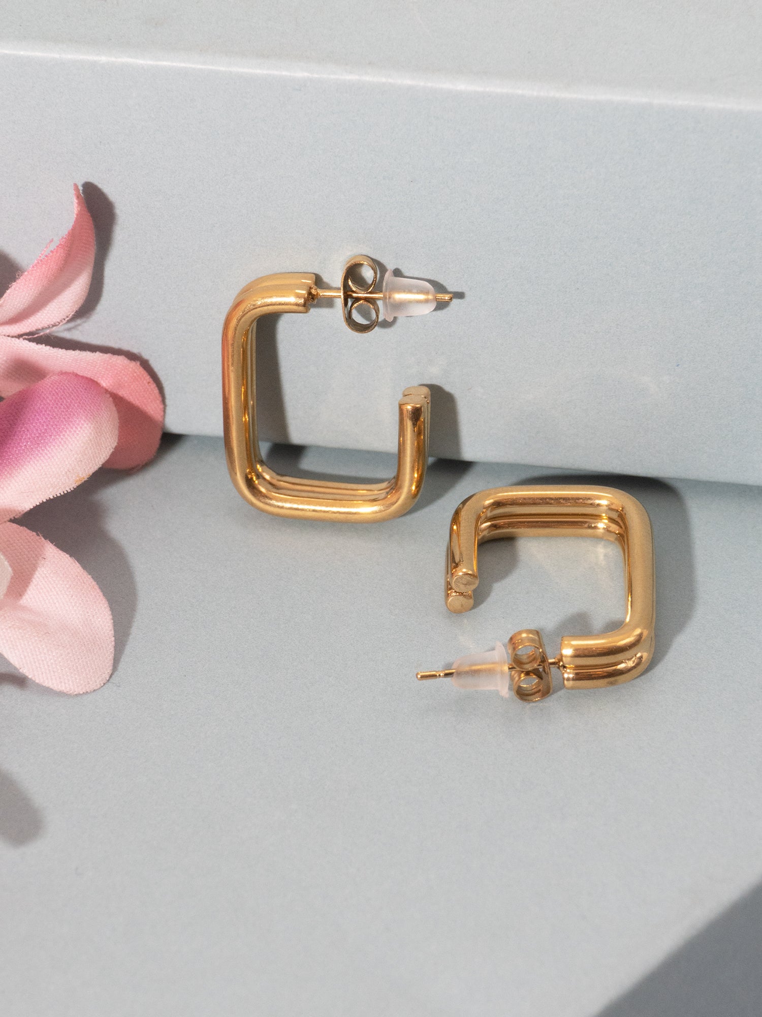 Elevate your jewelry collection with Niscka's stunning C-shaped earrings, beautifully crafted with a luxurious gold-plated finish. These unique earrings feature a modern C shape that adds a fresh and contemporary touch to any outfit. Lightweight and versatile, they are perfect for everyday wear or special occasions. The gold plating provides a warm, radiant glow, making these earrings a must-have accessory that effortlessly enhances your style, whether you're dressing up or keeping it casual.