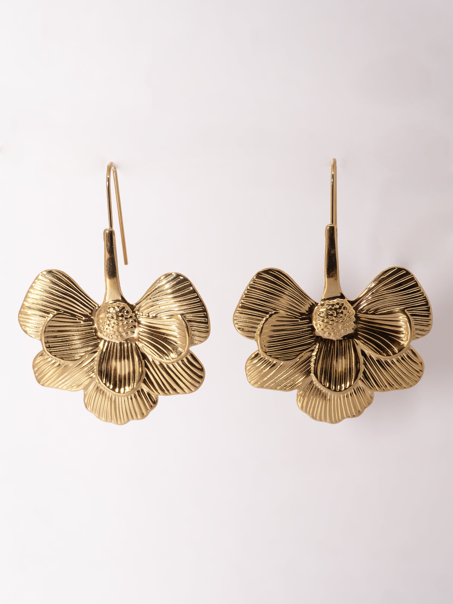 Embrace the beauty of nature with Niscka's floral earrings, elegantly crafted with a luxurious 24k gold-plated finish. These stunning earrings feature intricate floral designs that exude charm and sophistication, making them a perfect accessory for any occasion. The rich gold plating enhances the delicate details, ensuring a radiant glow that catches the light beautifully. Whether worn for a special event or to elevate your everyday look, these floral earrings add a touch of elegance and whimsy to your style.