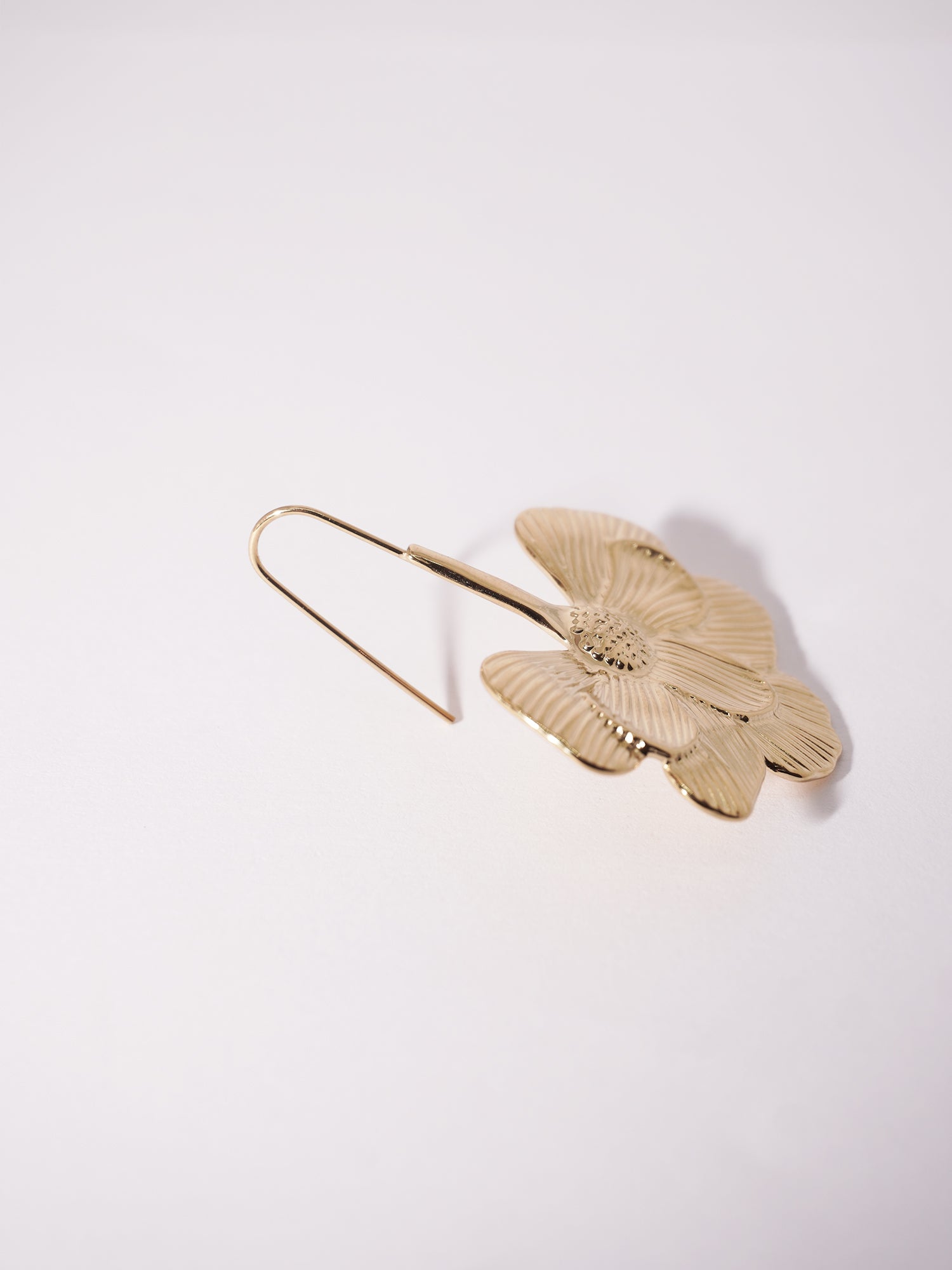 To showcase the beauty of these 24k gold-plated floral earrings, pair them with a simple, fitted dress in a solid color, allowing the earrings to stand out. For a more casual look, wear them with a flowing blouse and denim shorts or a skirt, adding a touch of elegance to your outfit. Opt for soft, natural makeup to complement the floral theme, and consider a loose updo or soft waves to keep the focus on the earrings.