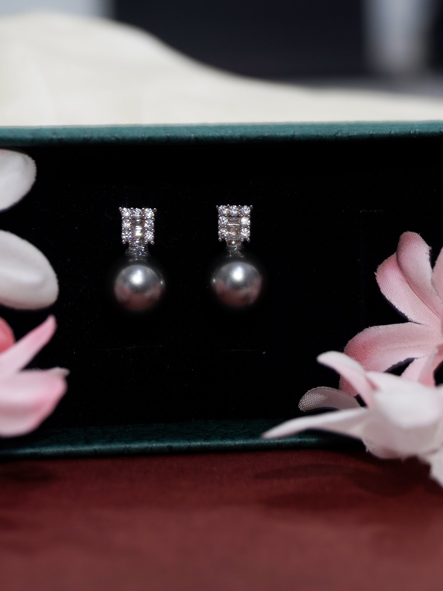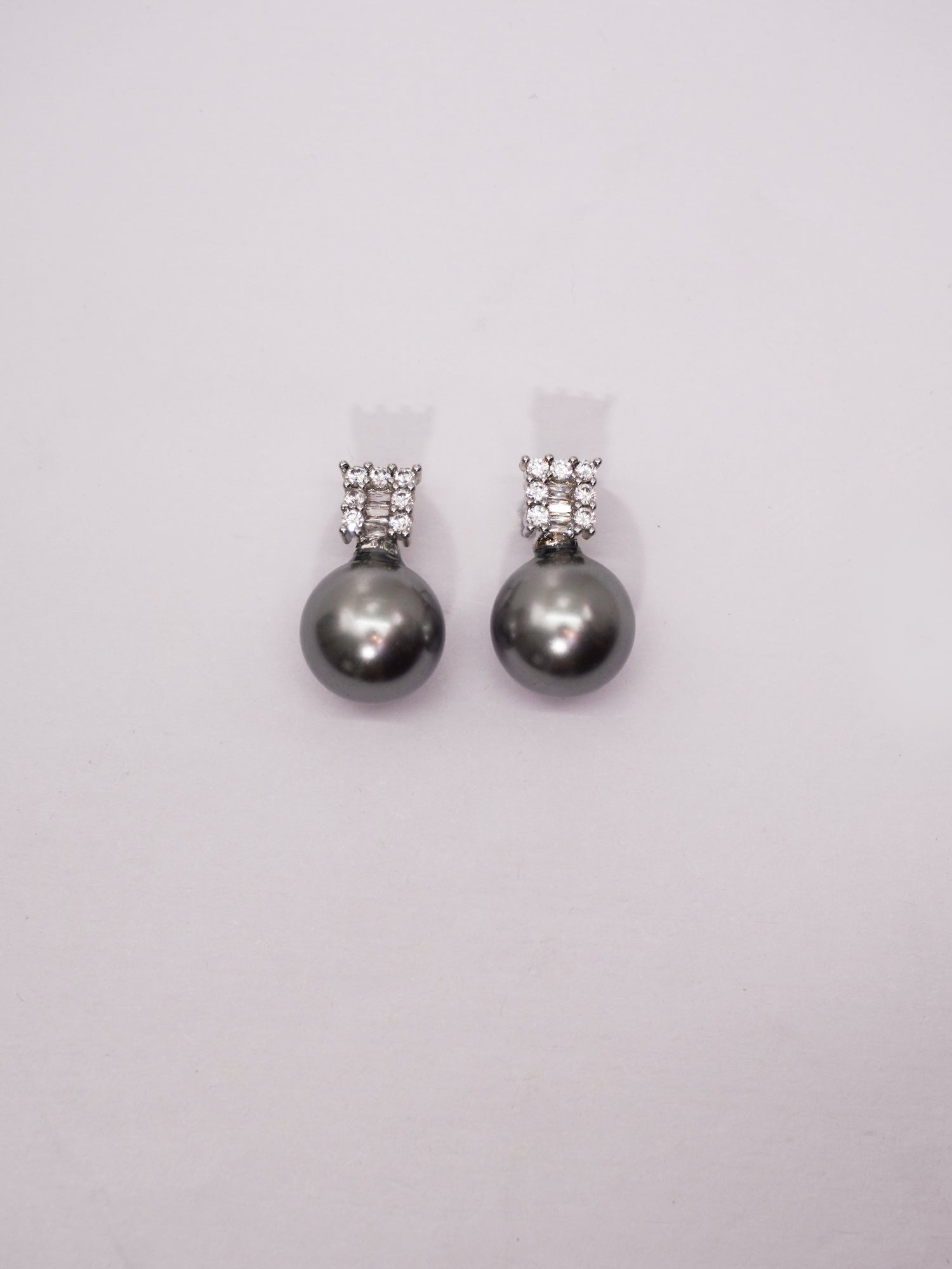 Elegant Grey Faux Pearl and American Diamond Stud Earrings