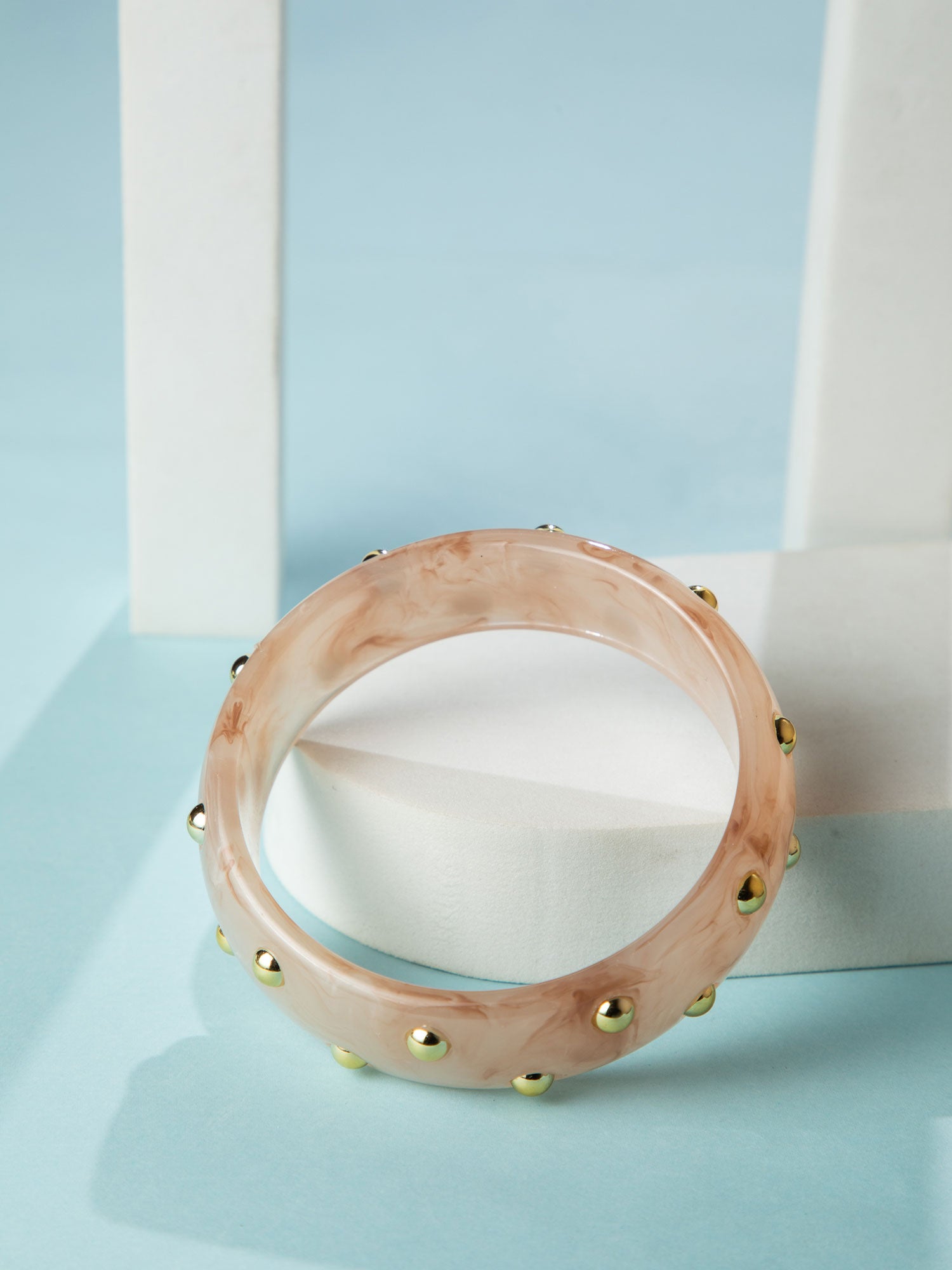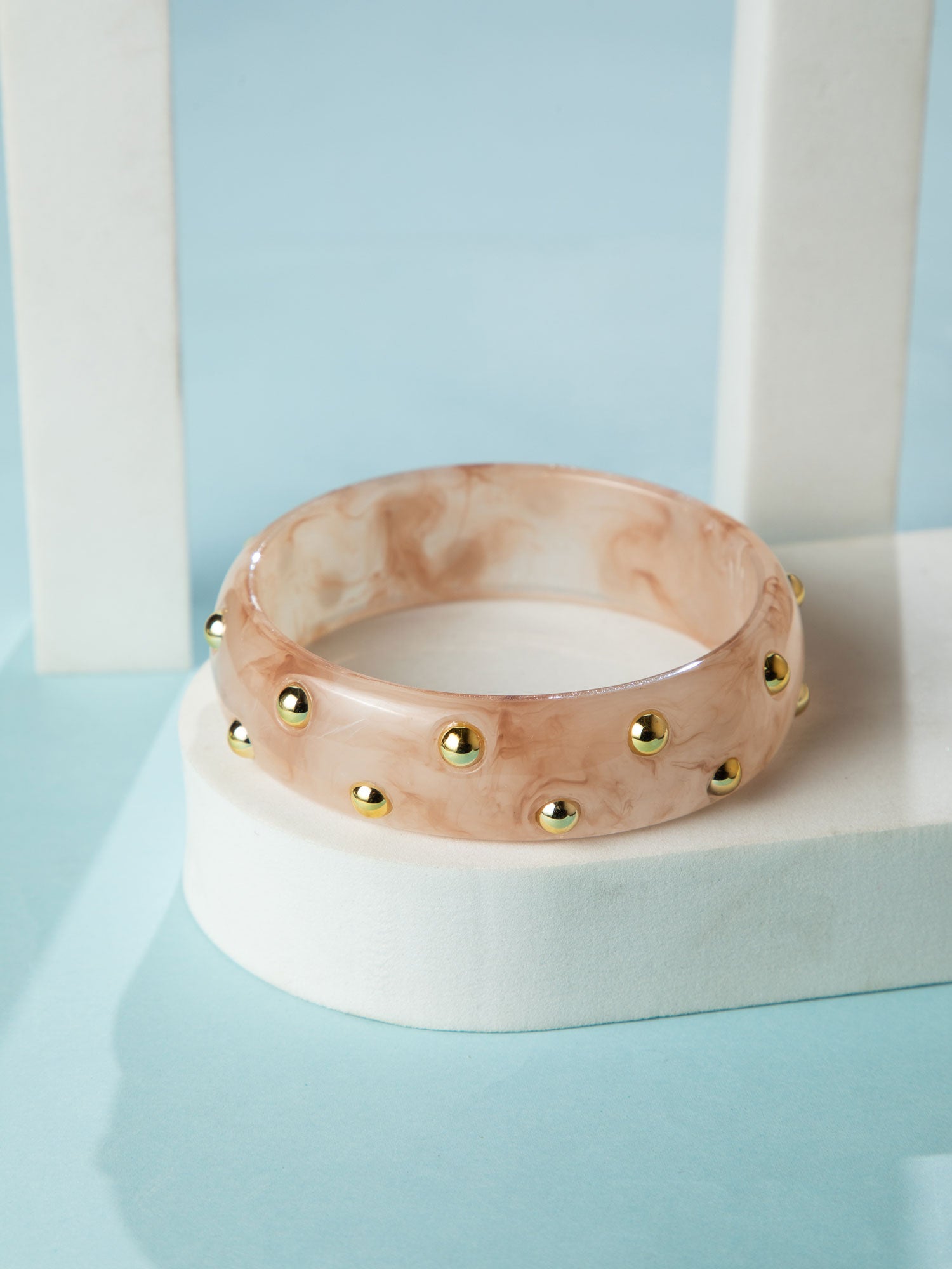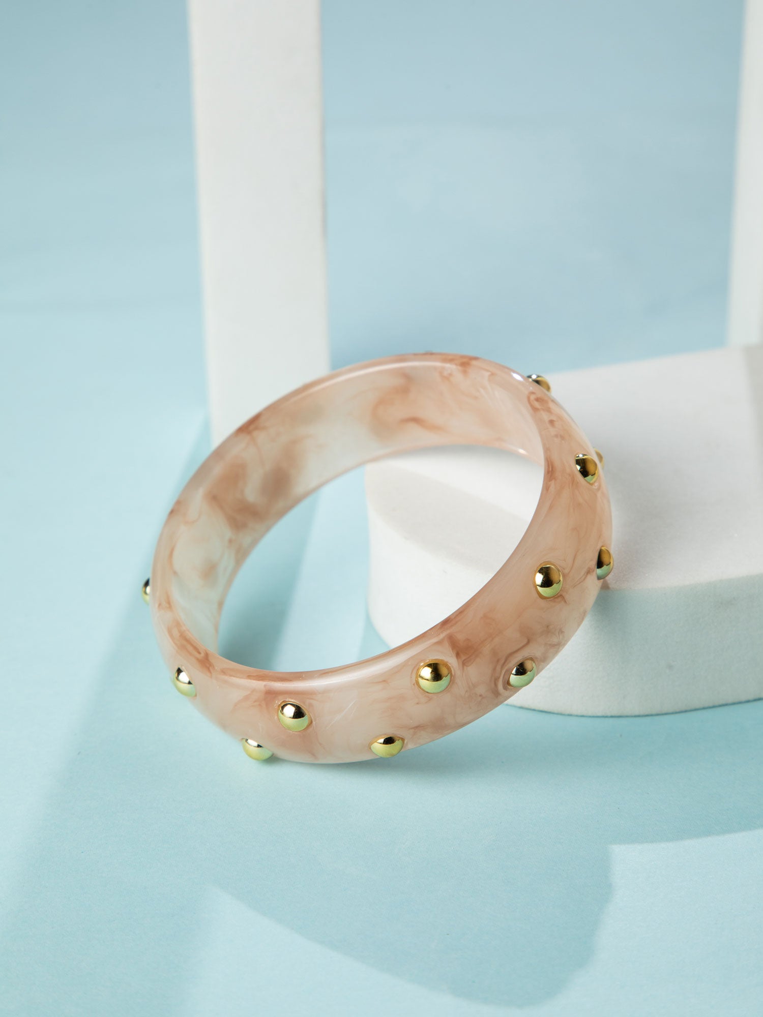 Elegant Peach Kada Bangle with Gold Beads