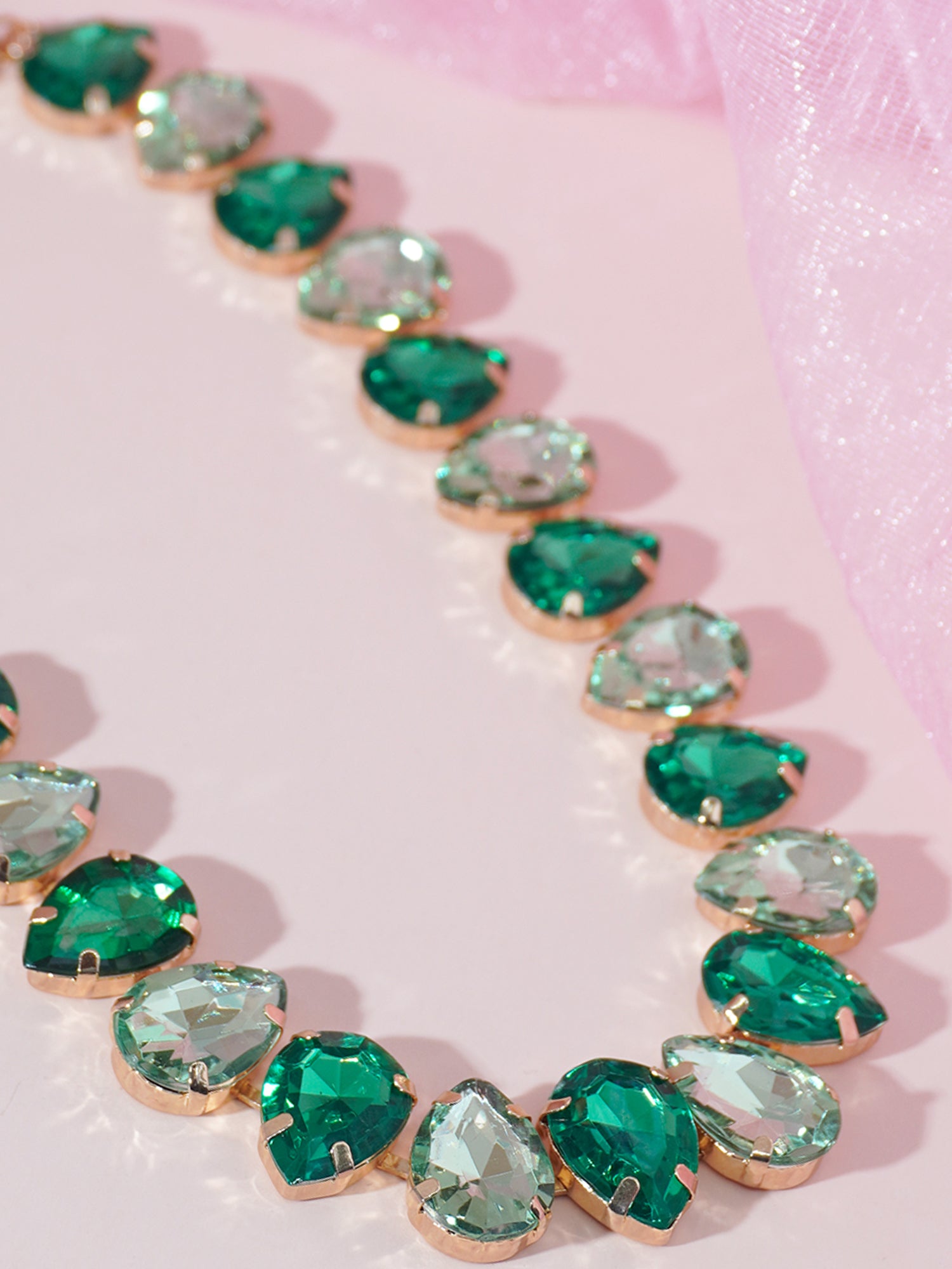 To create a stunning look with the emerald and white choker necklace, pair it with a sleek, fitted dress in a neutral tone like black or navy to allow the necklace to stand out. For a more casual outfit, wear it over a simple white blouse with a deep V-neck to highlight the choker's elegance. Consider a hairstyle that showcases the neck, such as a high ponytail or an elegant updo. Keep other accessories minimal—perhaps just delicate stud earrings—to let the choker be the statement piece of your ensemble.