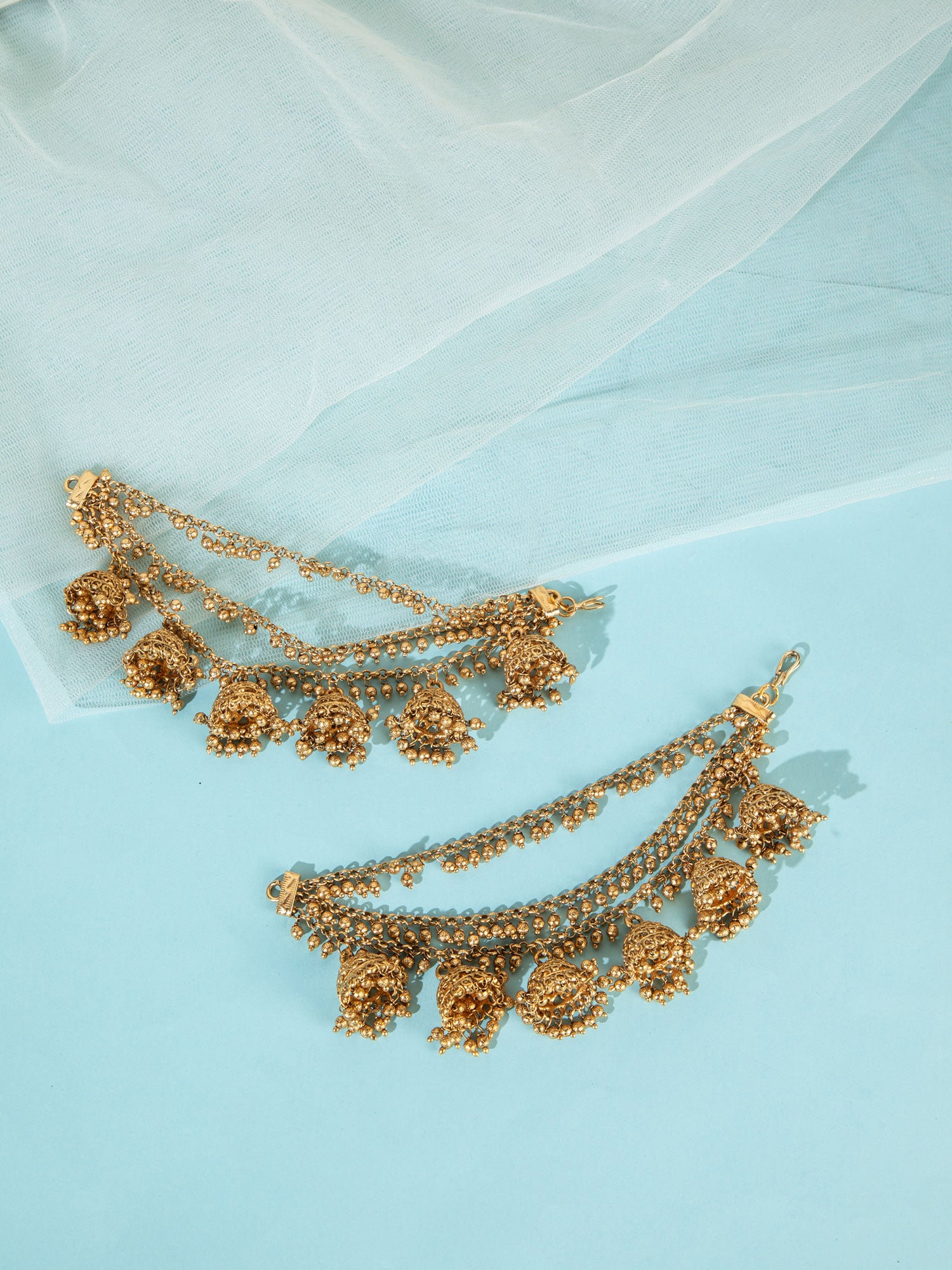 This gold-plated ear side chain is designed with a fine balance of simplicity and style. The delicate chain detail adds a graceful touch, connecting effortlessly to create a subtle yet distinctive look. Its lightweight design ensures comfortable wear, making it suitable for both casual outings and special occasions.