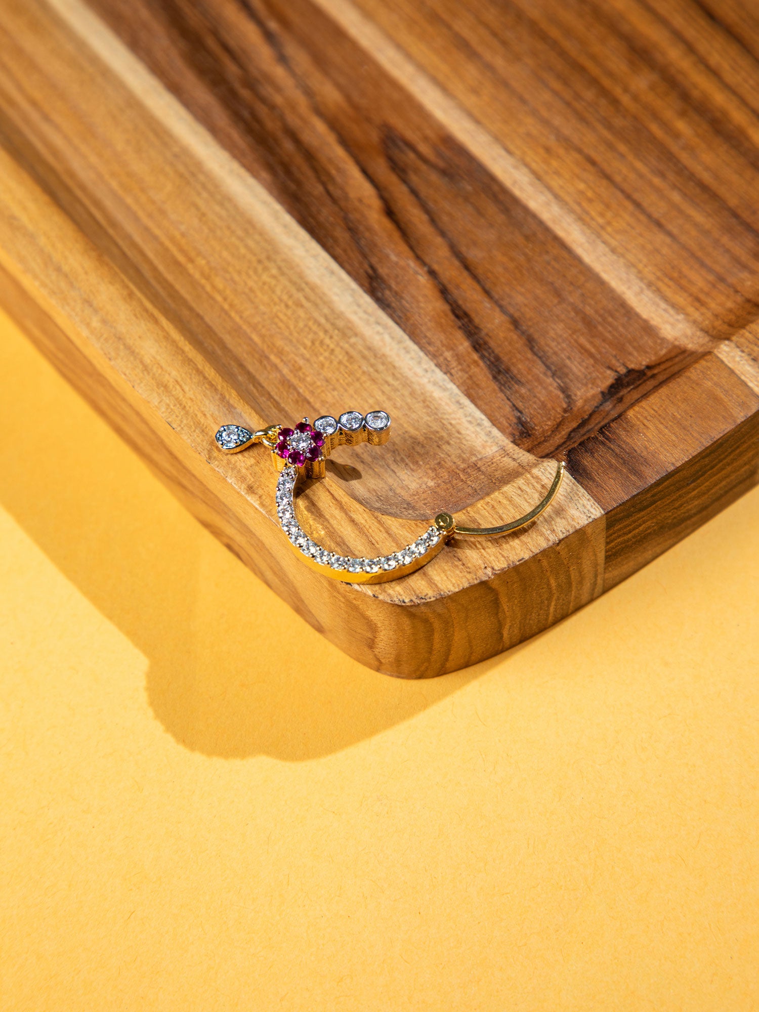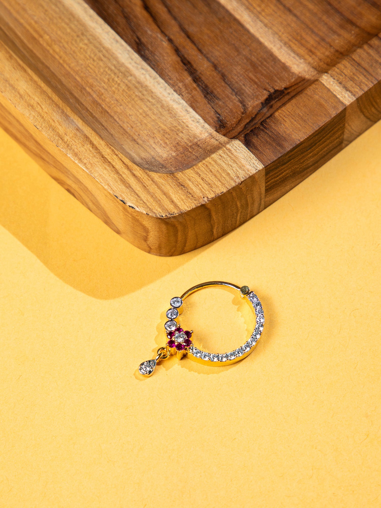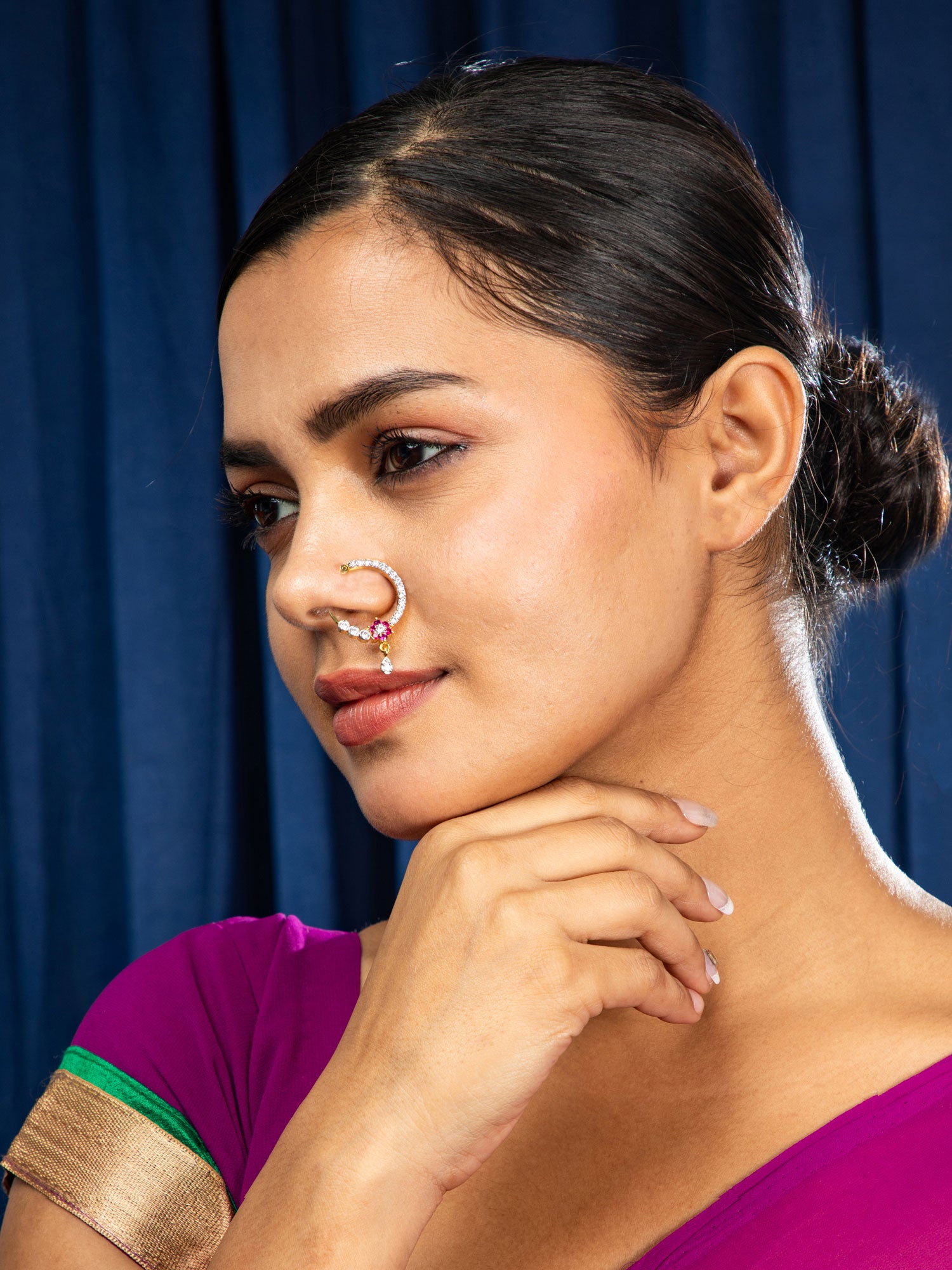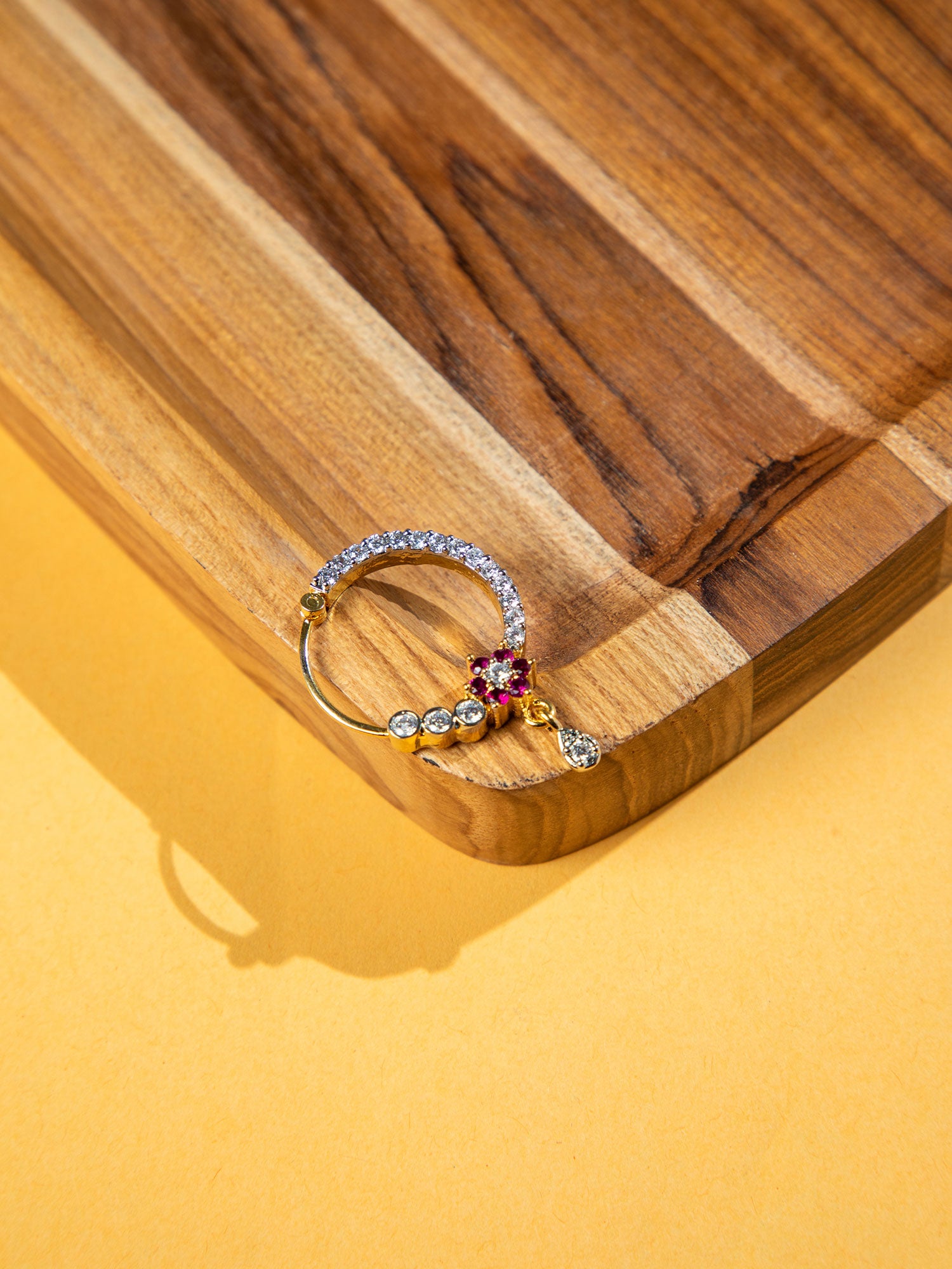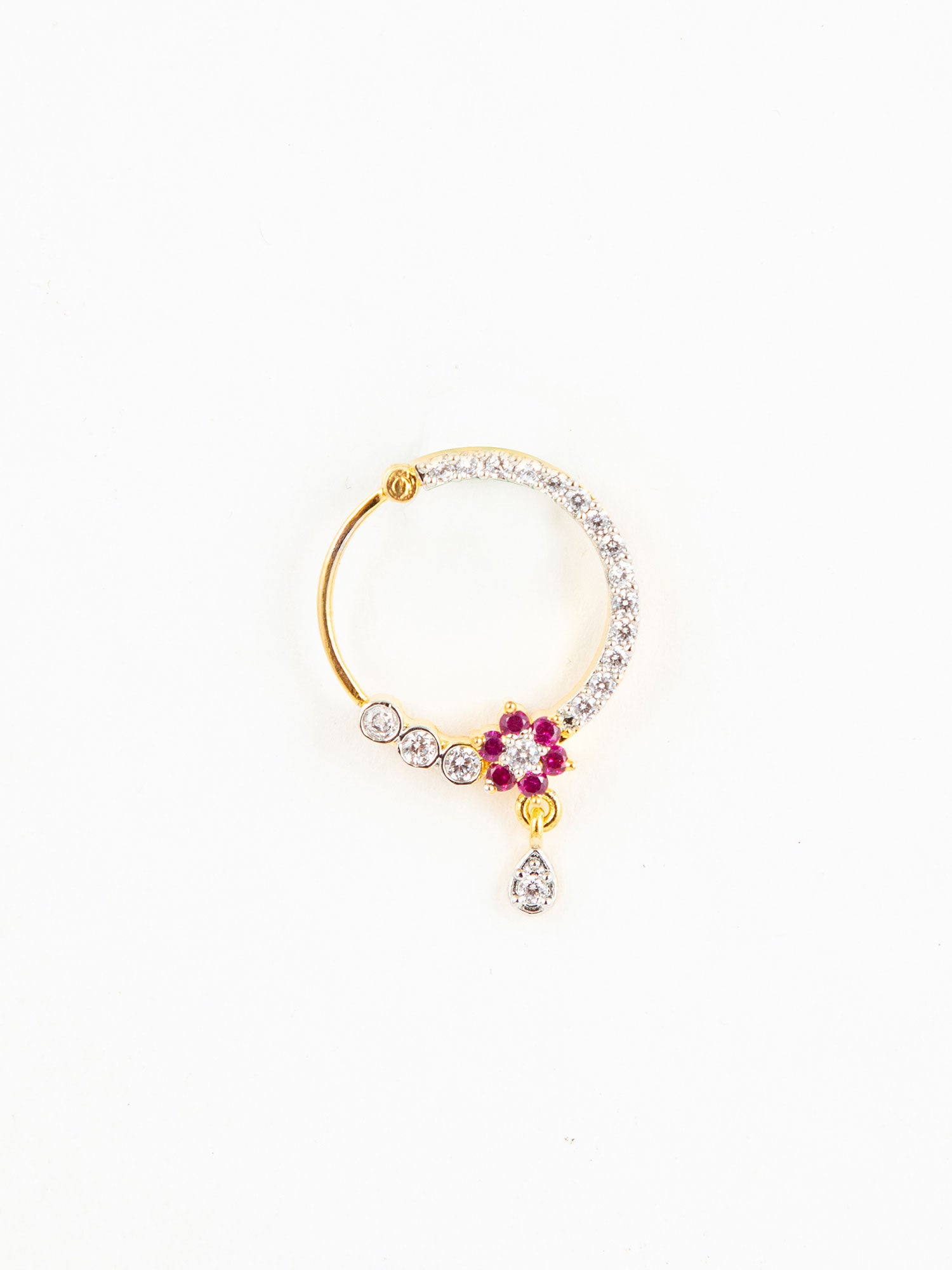 Ethnic Gold Plated White Pink Ad Nose Ring